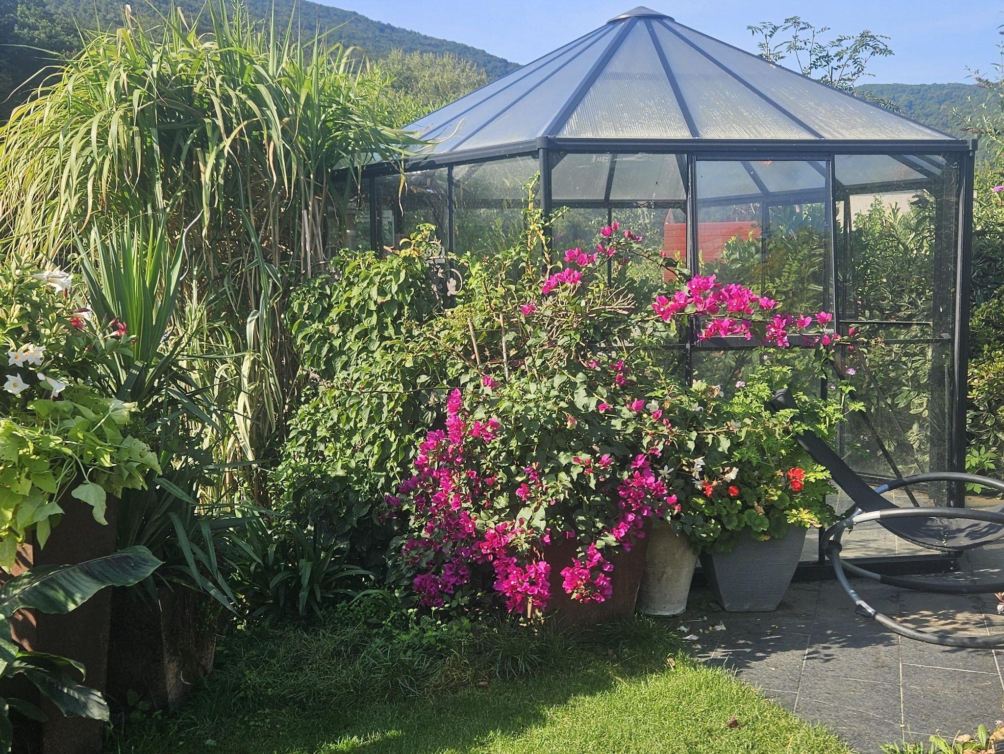 Die 5 Sterne- Ferienwohnung Ahrfair im Kräutergarten befindet sich in Bad Neuenahr-Ahrweiler, direkt an der Ahr und eingebettet in einen idyllischen Kräutergarten. Gäste sind eingeladen, die vielfältigen Kräuter für die Zubereitung ihrer Speisen zu nutzen oder aromatische Kräutertees daraus zu bereiten. Bei Sonnenschein erfüllt der Duft ätherischer Öle der Kräuter und Zitrusblüten die Luft.