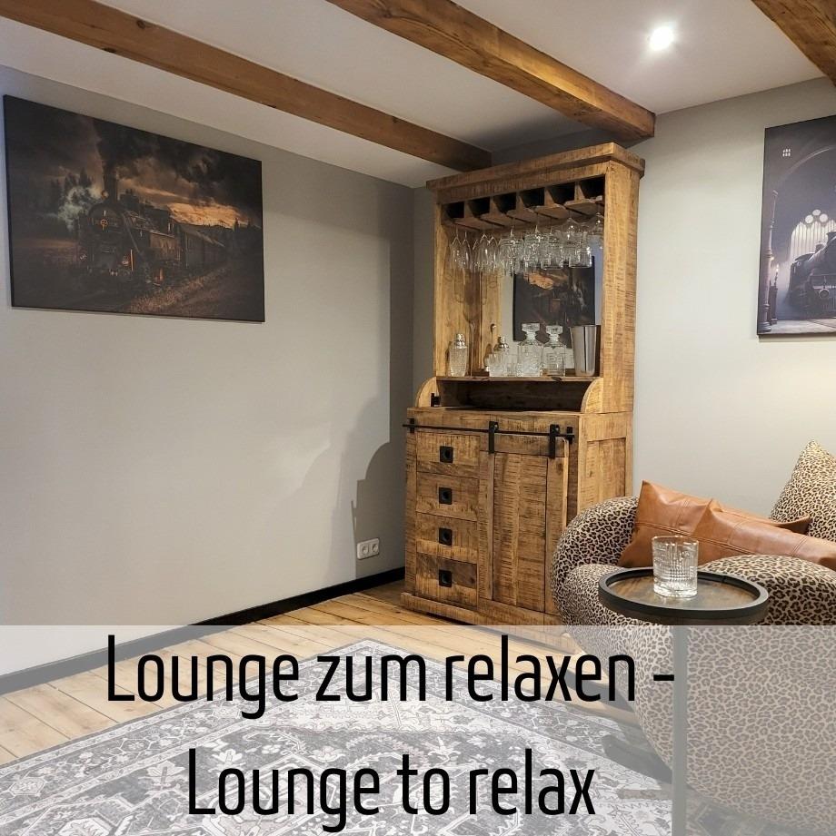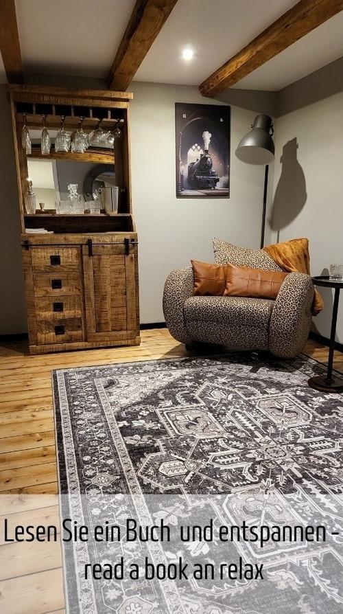 Chillen Sie gemütlichen Kinosesseln vor dem 40 Zoll Smart TV oder lesen Sie ein Buch in der Hausbar.