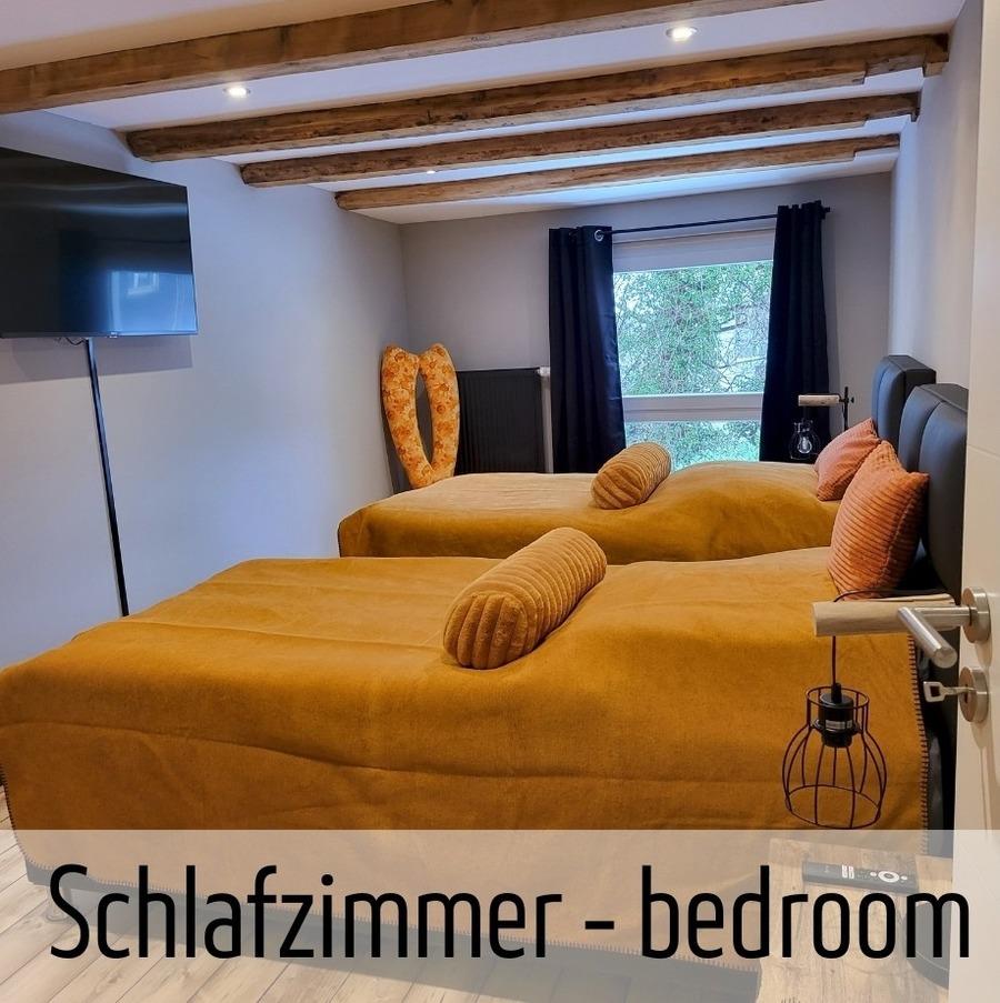 In den beiden Schlafzimmer in der 1.Etage sorgen komfortable Boxspringbetten, für erholsamen Schlaf.