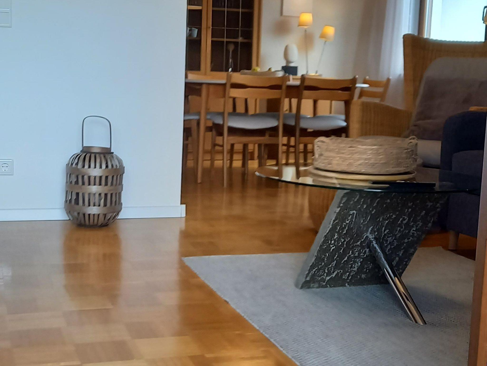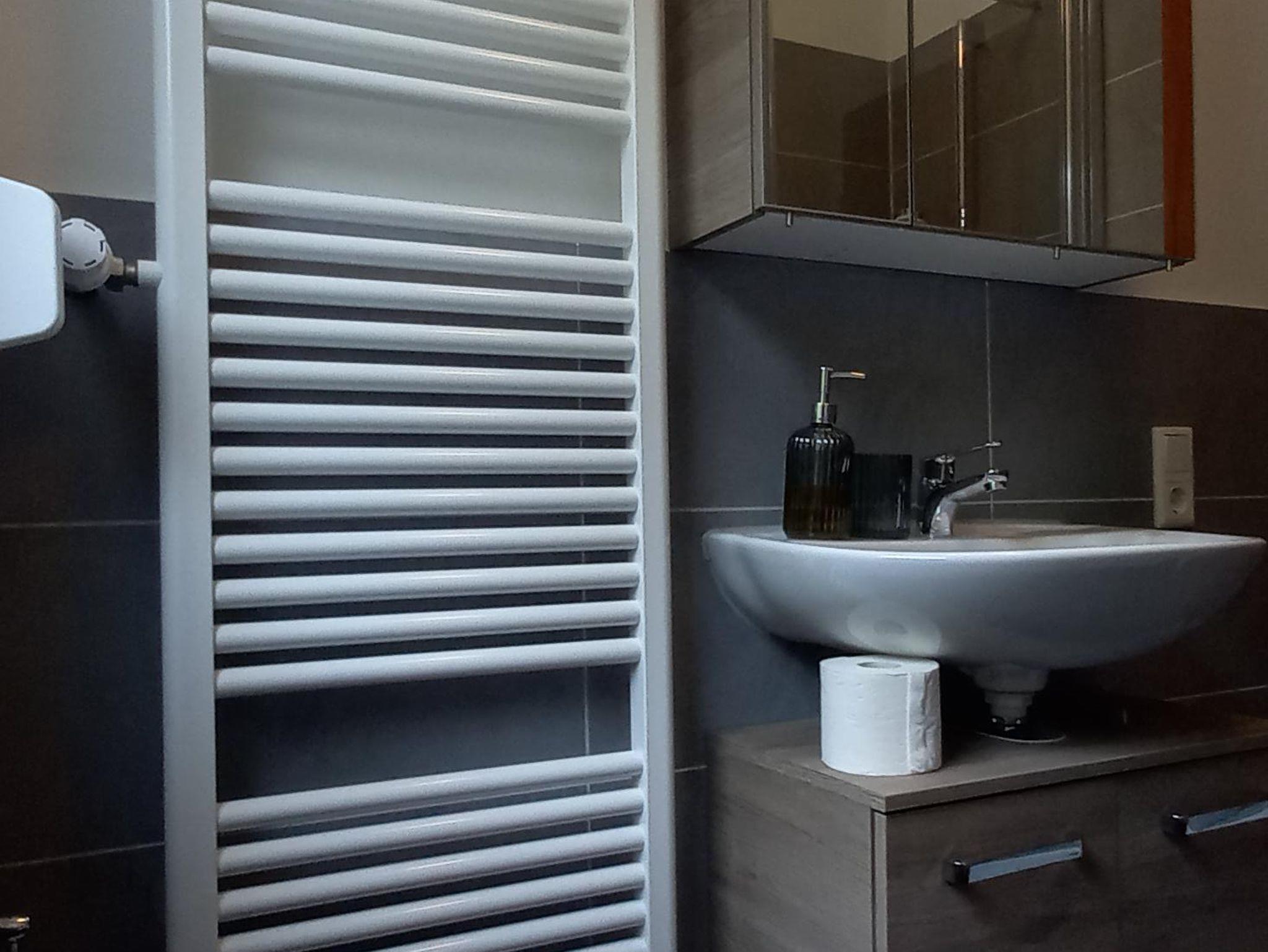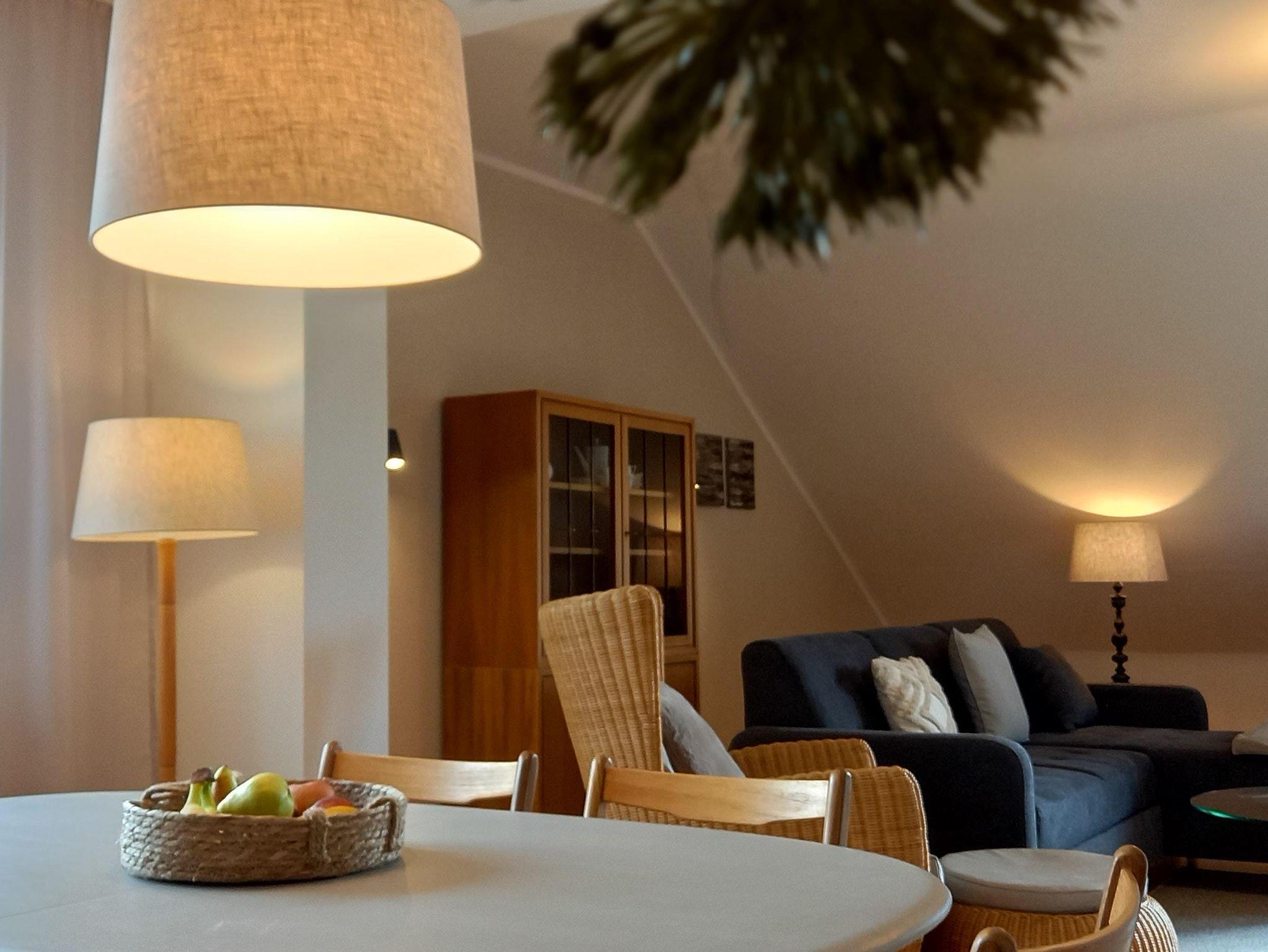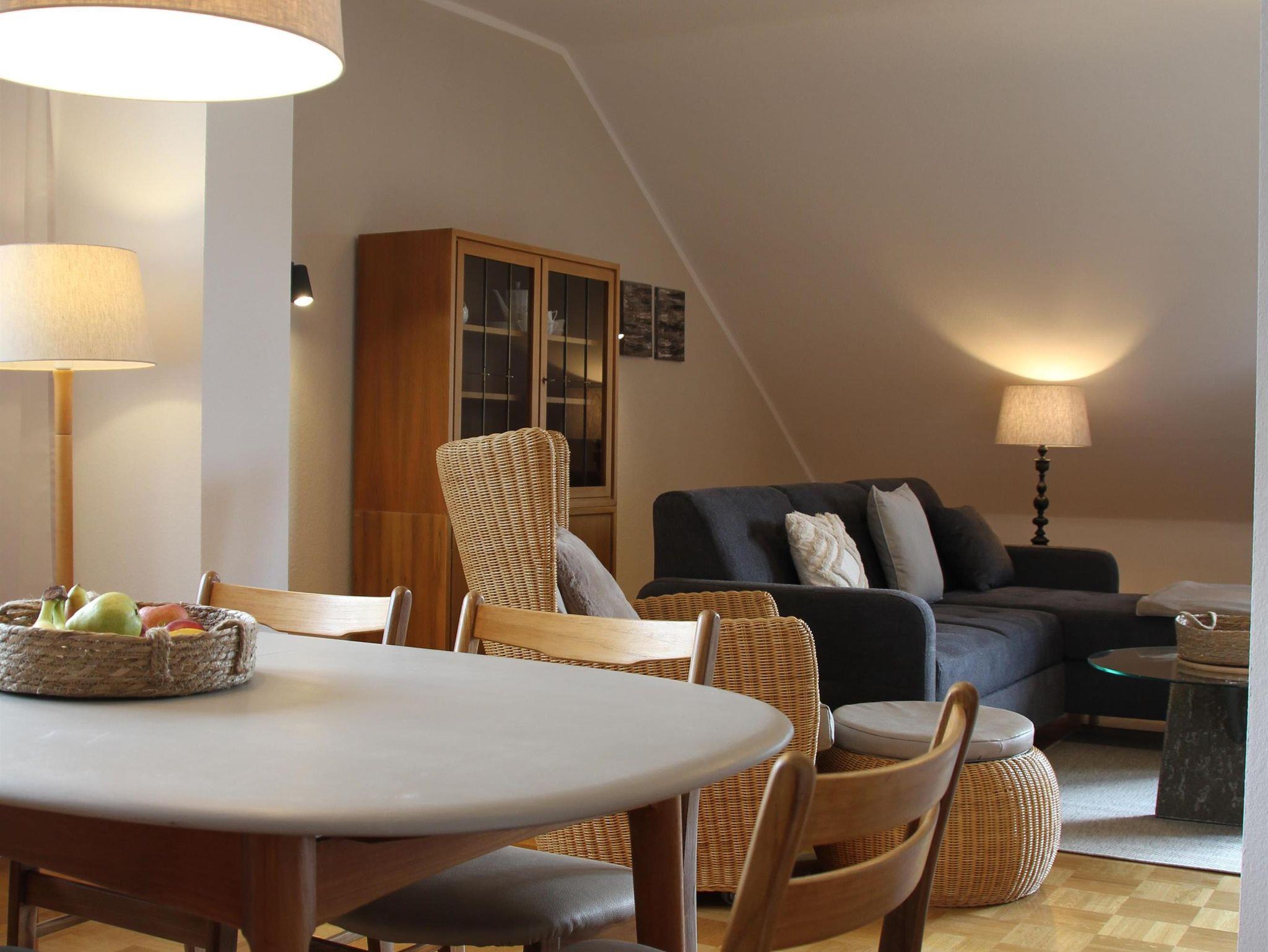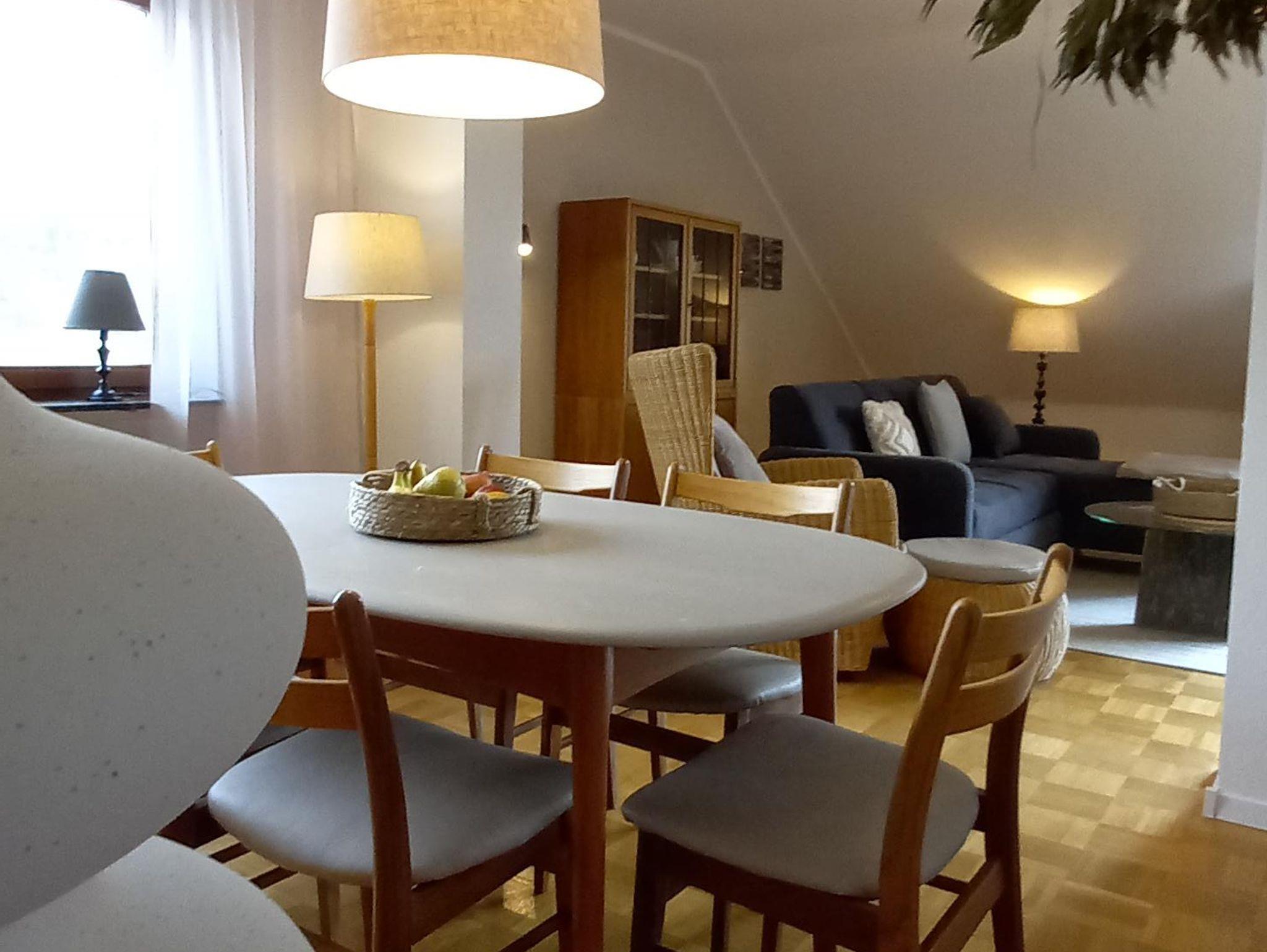 Die Ferienwohnung besteht aus einer vollständig eingerichteten Küche mit Cerankochfeld (4 Platten), Backofen, Dunstabzugshaube, Mikrowelle, Geschirrspüler, Kaffeemaschine (Senseo), Wasserkocher, Toaster sowie Kühlschrank mit Gefrierfach u.v.m, ein Esszimmer mit Durchbruch zum Wohnzimmer, einem separaten Schlafzimmer mit einem Doppelbett (180x200 cm) und Kleiderschrank, einem geräumigen Flur sowie Balkon mit herrlichem Ausblick. Tee, einige Kaffeepats, Dosenmilch und eine Flasche Wasser stehen für Sie bereit. Die Wohnung ist 66 qm groß und bietet viel Platz für max. 3 Erwachsene oder 2 Erwachsene mit max. 2 Kindern. Im Wohnzimmer befindet sich eine ausziehbare Couch (130x200 cm). Ein Kinderreisebett kann bei Bedarf ebenfalls aufgestellt werden. Im Preis enthalten sind Bettwäsche, Handtücher, 2 Bademäntel sowie Wäsche für die Küche. Kostenfreies Wlan ist ebenfalls vorhanden. Ihr Fahrzeug kann im Hof (je nach Größe, bei Buchung bitte nachfragen) kostenfrei geparkt werden. Das Badezimmer besteht aus Dusche, WC und Waschtisch inklusive Fön. Das Rauchen in der Wohnung ist nicht gestattet.