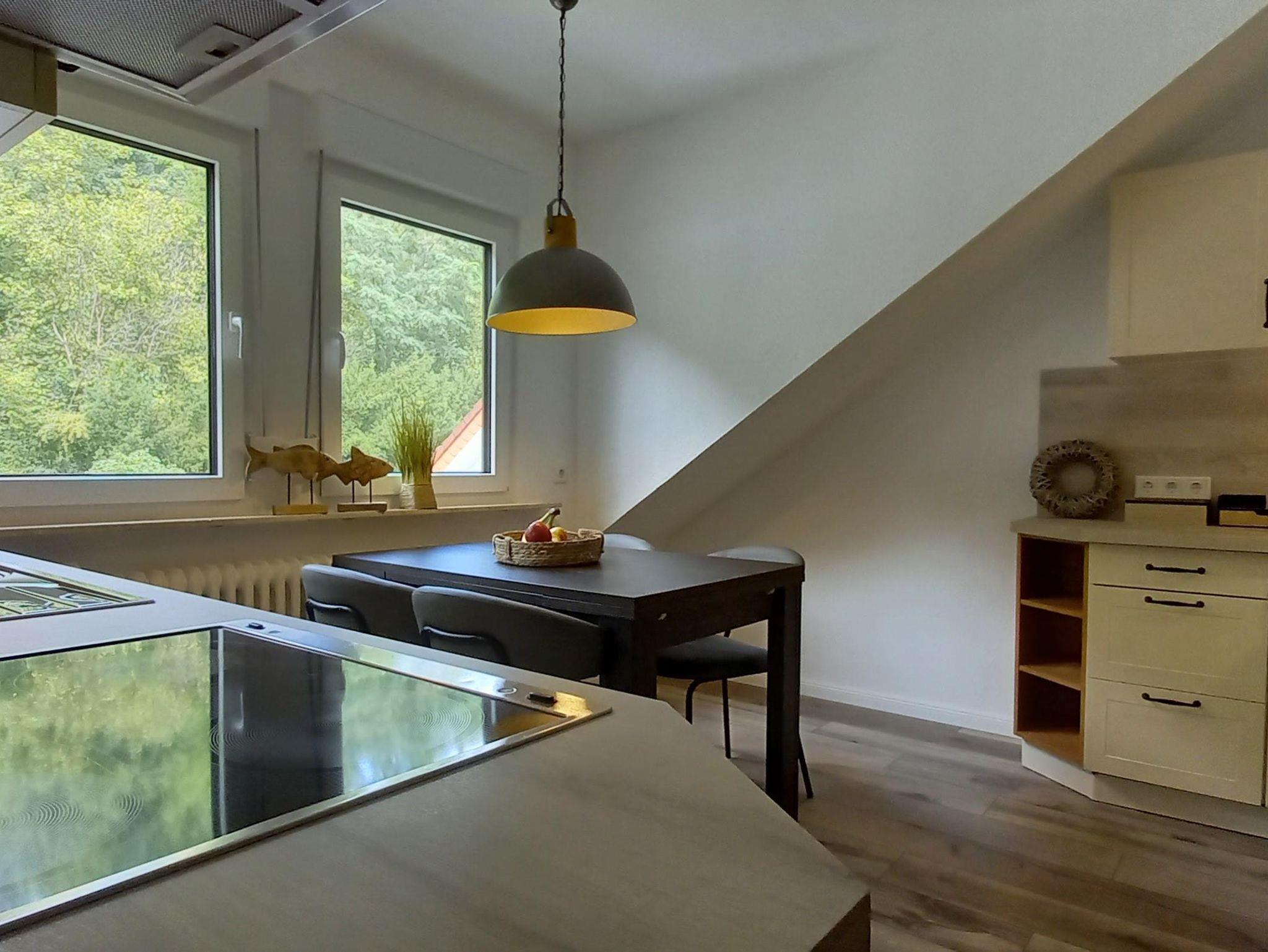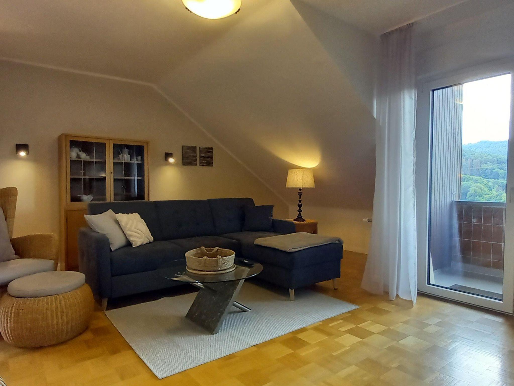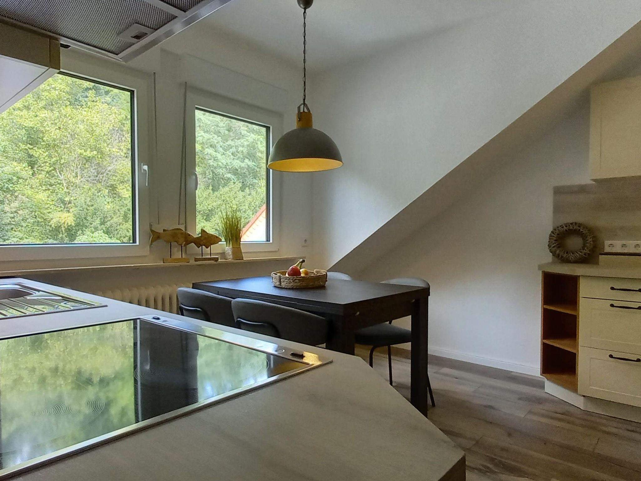 Die Ferienwohnung liegt im Dachgeschoss des 3-Familien-Hauses direkt am Waldrand von Bad Orb.