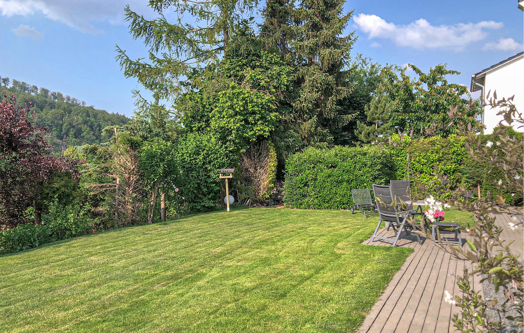 Nyd mange dejlige timer udendørs i den velplejede have, hvor I både har komfortable havemøbler og en grill.