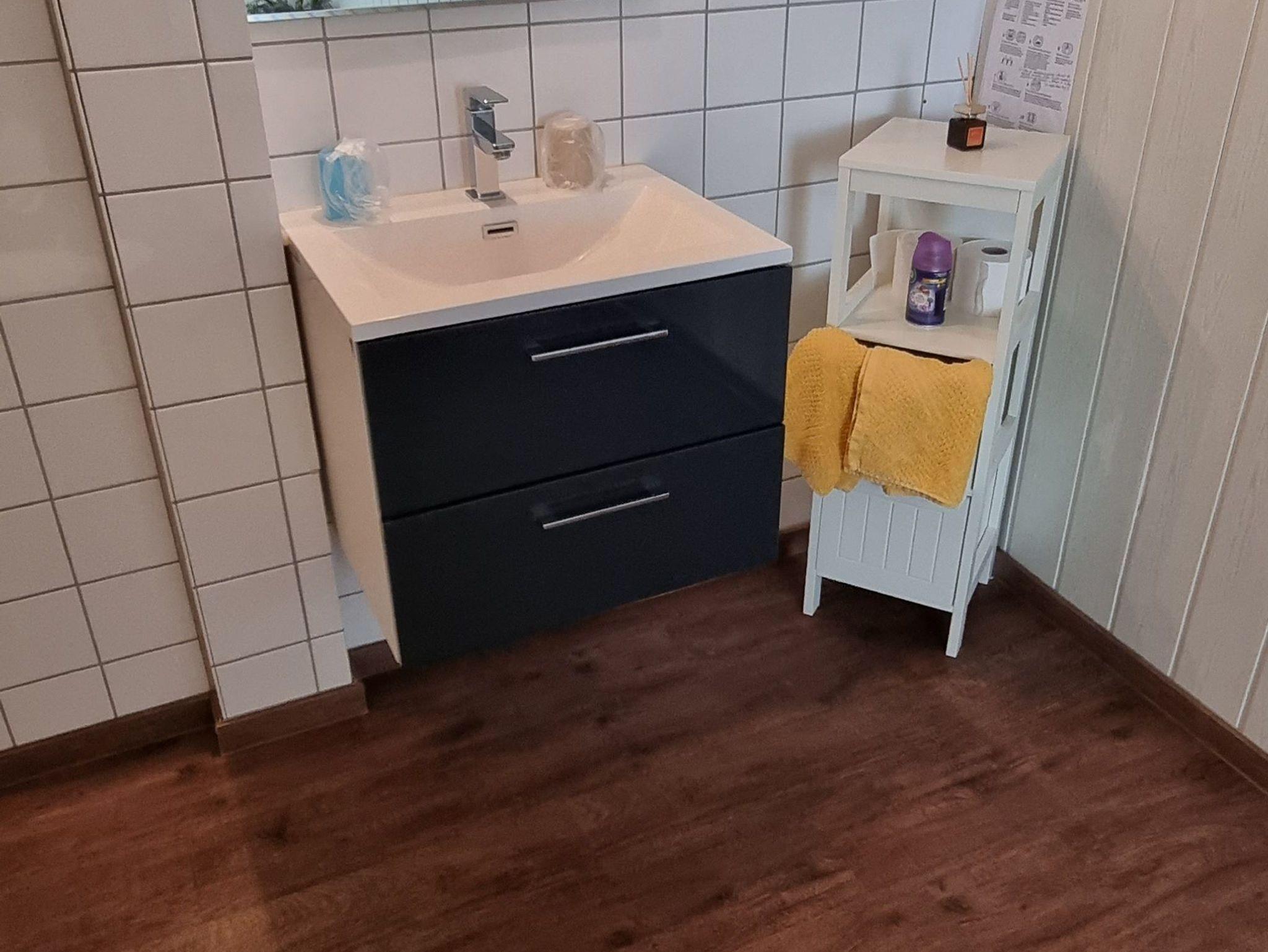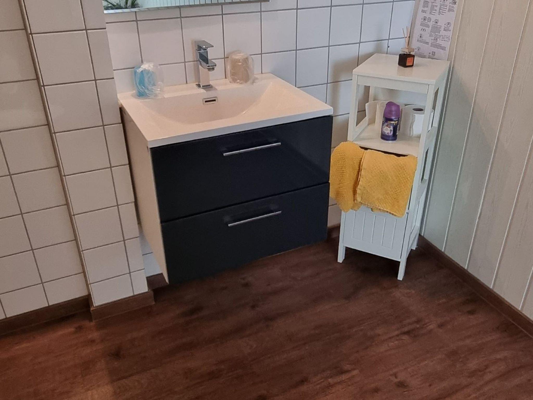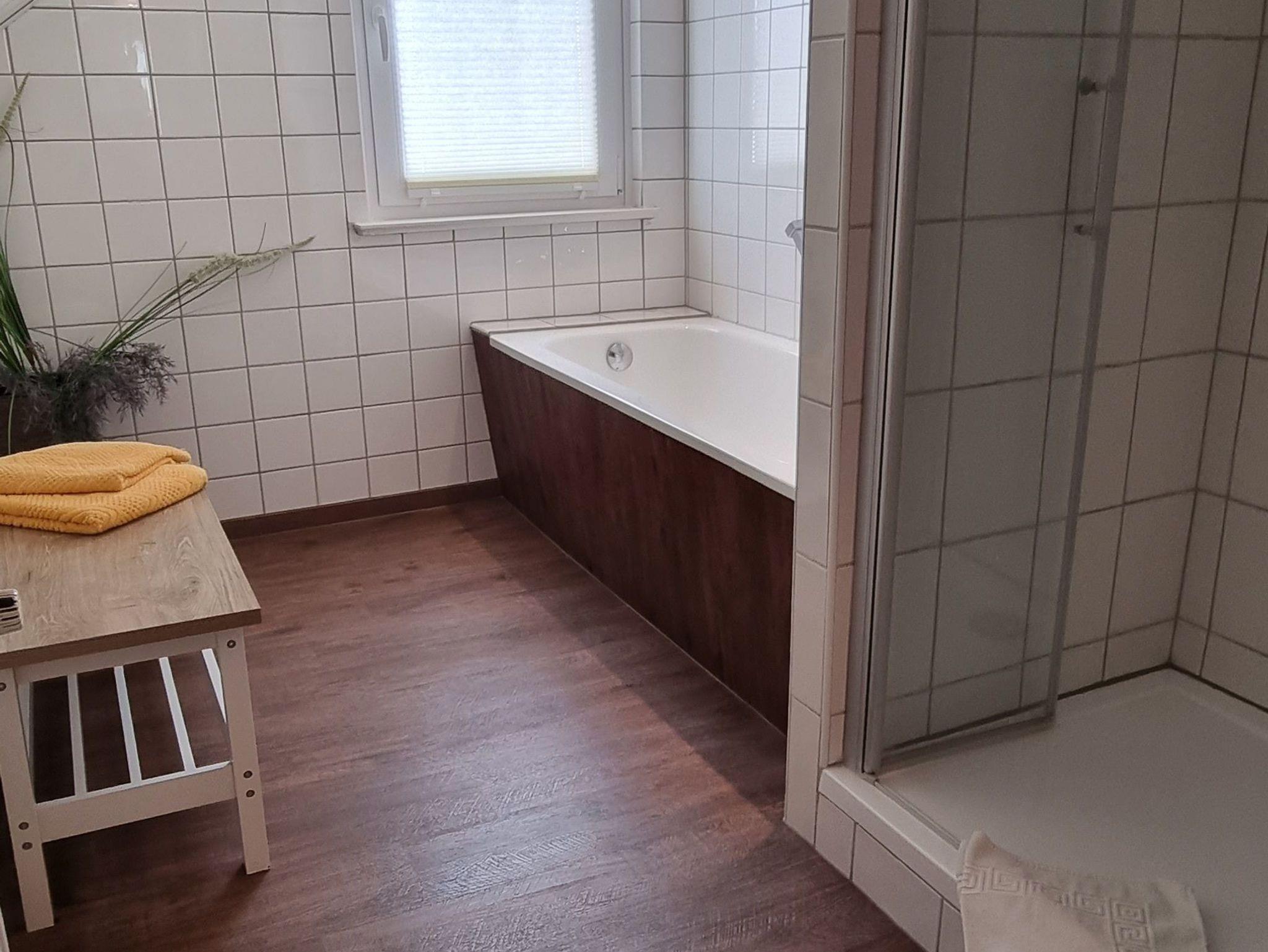 Das Badezimmer ist mit ebenerdiger Dusche, Badewanne und WC ausgestattet ( mit Aussenfenster).