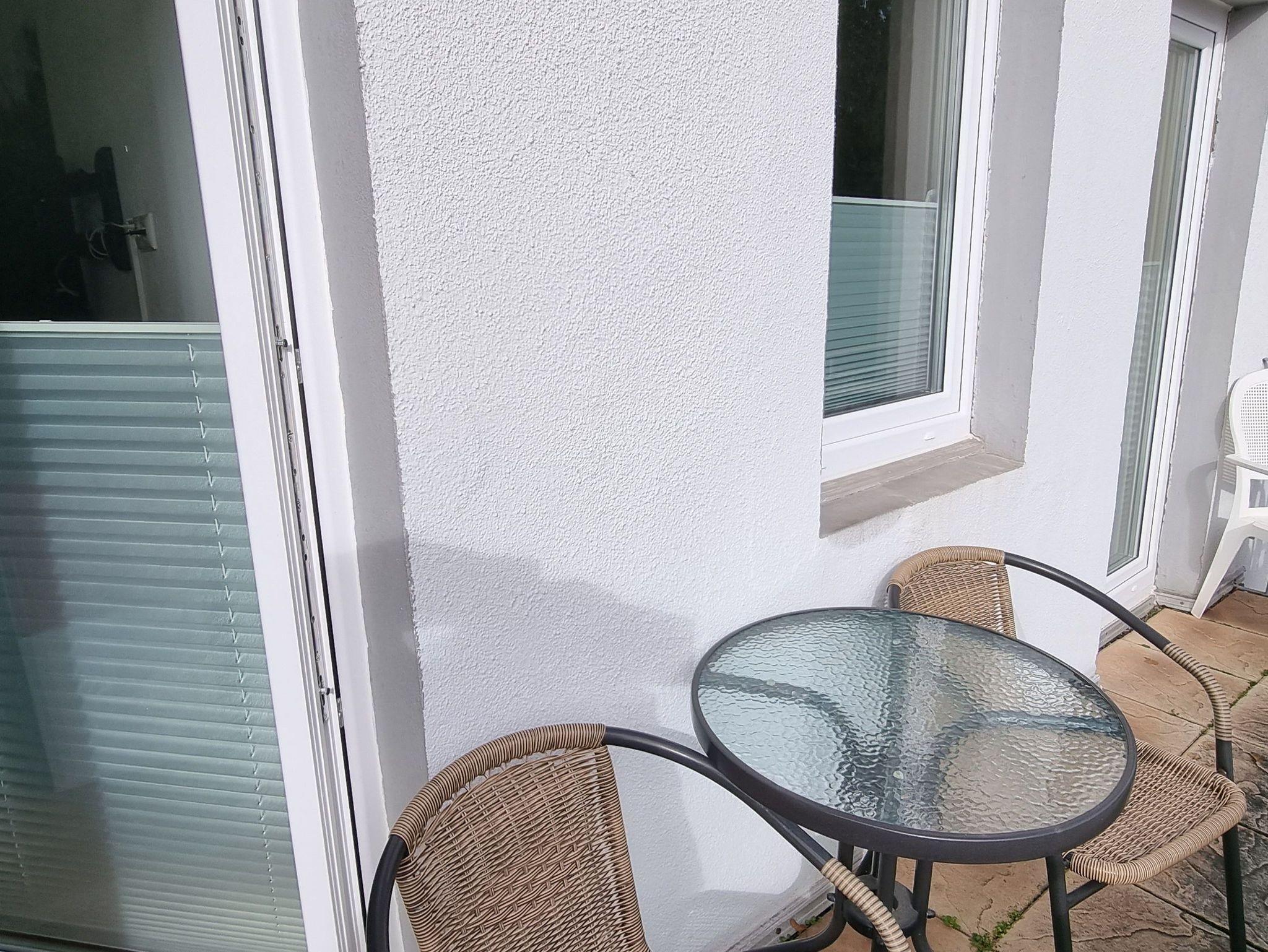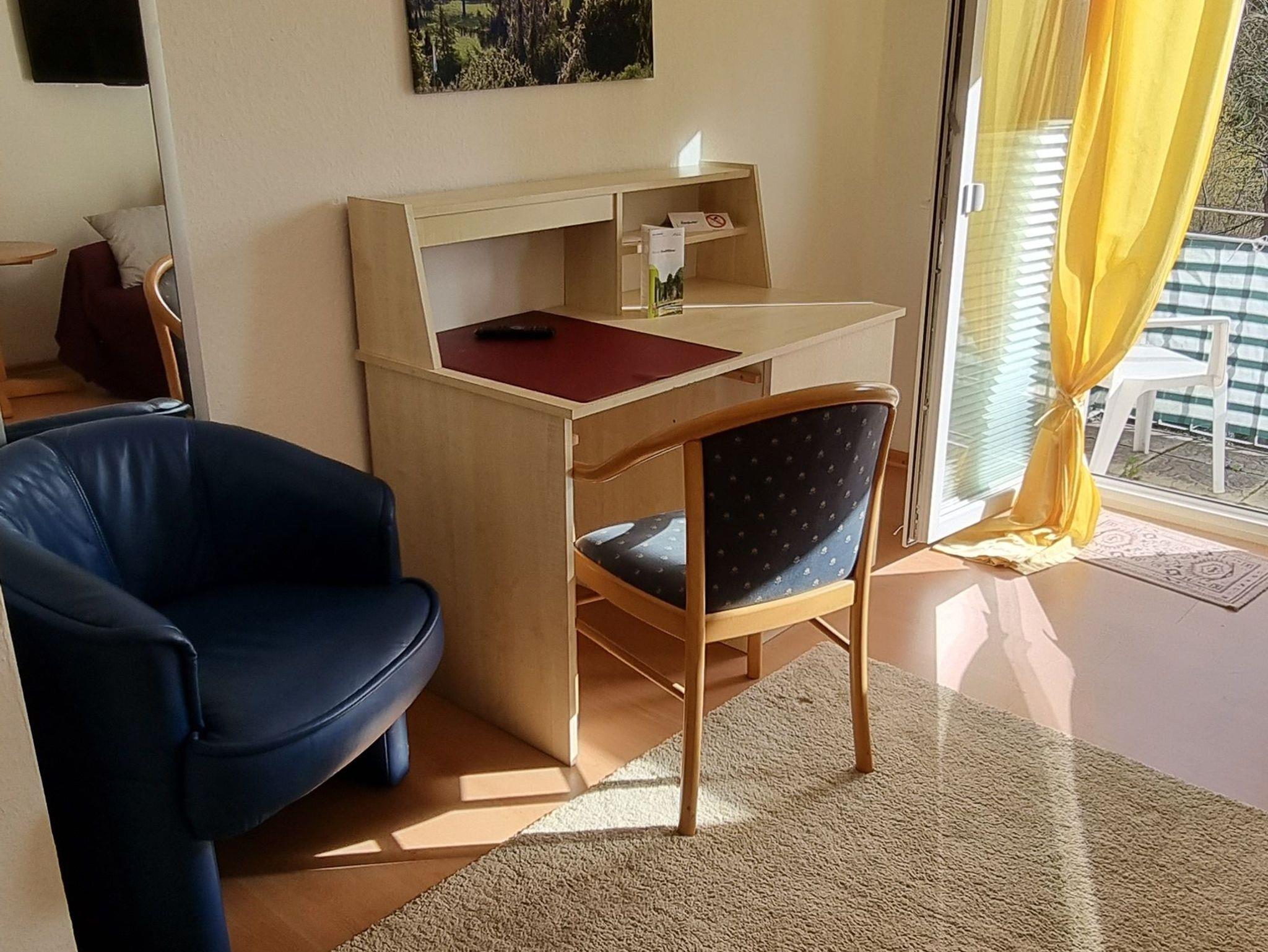 Ausgestattet ist dieses Gäste-Appartment mit zwei Schlafräumen- einem Einzelzimmer und einem Doppelzimmer (Doppelbett auch trennbar als TWIN-Bett), voll ausgestattet wie Hotelzimmer, mit Schreibtisch, Sitzgruppe, TV, Zugang zum gemeinsamen kleinem Balkon.