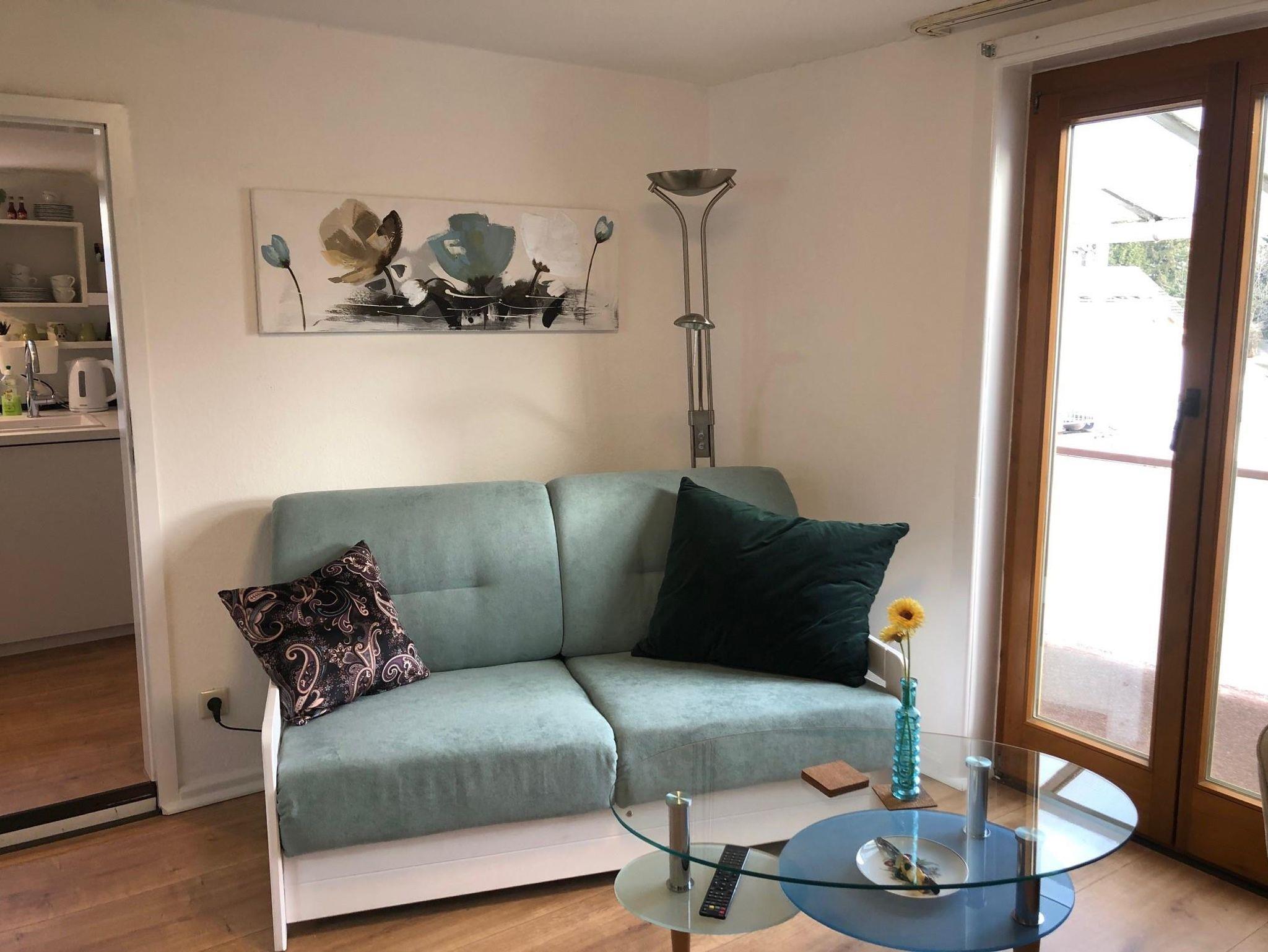 Das 2-Raum Appartement Nr. 12 liegt in der 2. Etage und verfügt über ein Schlafzimmer mit Doppelbett, einen Wohnraum, einen Essplatz, eine kleine Küche mit Geschirrspüler, ein Badezimmer mit Du/WC, Badewanne und einen Balkon mit Gartenmöbeln. TV im Wohnzimmer und auch im Schlafzimmer bieten Abwechslung. Das Appartement wurde Anfang 2022 fertiggestellt und ist komplett neu eingerichtet. Es besticht durch seine behagliche Atmospähre und der mit sehr viel Liebe zum Detail gewählten Einrichtung. Der Balkon ist überdacht und kann daher auch bei einem leichten Sommerabend genutzt werden. Ideal für einen Kur- oder Urlaubsaufenthalt oder auch für eine längere Geschäftsreise gibt es im Appartementhaus Blume eine Waschmaschine sowie einen Trockner zur eigenen Benutzung gegen eine kleine Gebühr. Ihr Auto steht auf den hauseigenen Parkplätzen entweder direkt am oder hinter dem Haus.