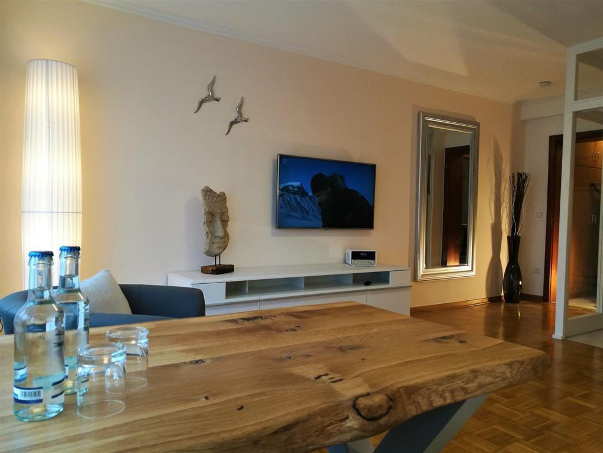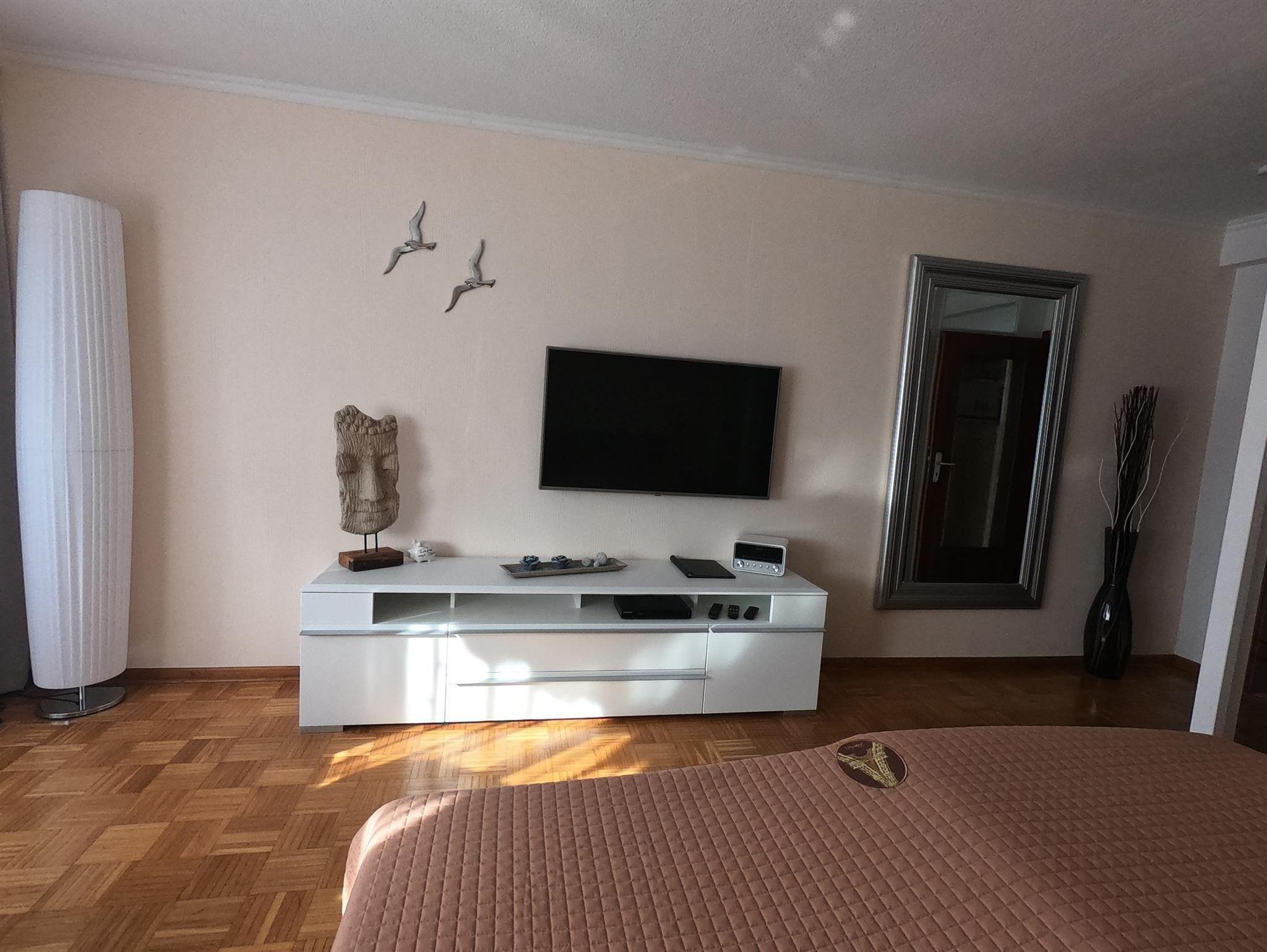 Natürlich sind die Betten für Sie bereits bezogen! Auf dem großen LED-Bildschirm in gemütlicher Sitzecke genießen Sie Ihre Filme und Sendungen.