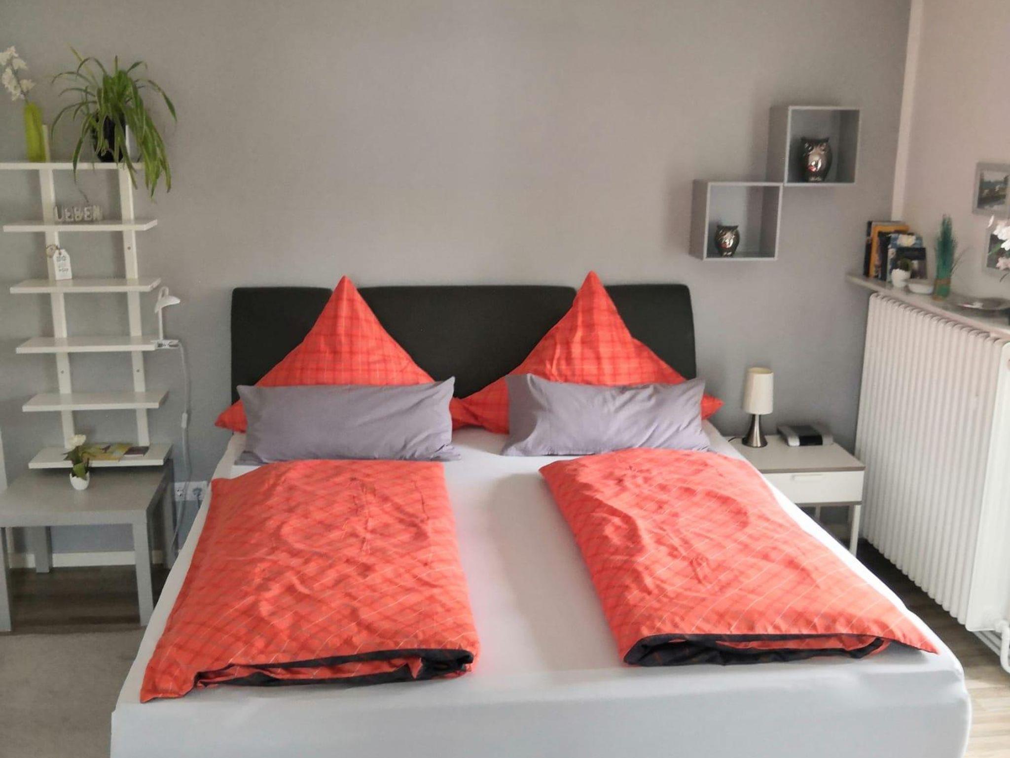 Betten für 2 Personen: ein Doppelbett/Boxspringbett (180x200) im Schlafzimmer. Beim Bedarf kann auf Nachfrage 1 Babyreisebett mit Decke, Kissen und Bettwäsche (0-3 Jahre) mit einmaligem Aufpreis von 15€ zur Verfügung gestellt werden.