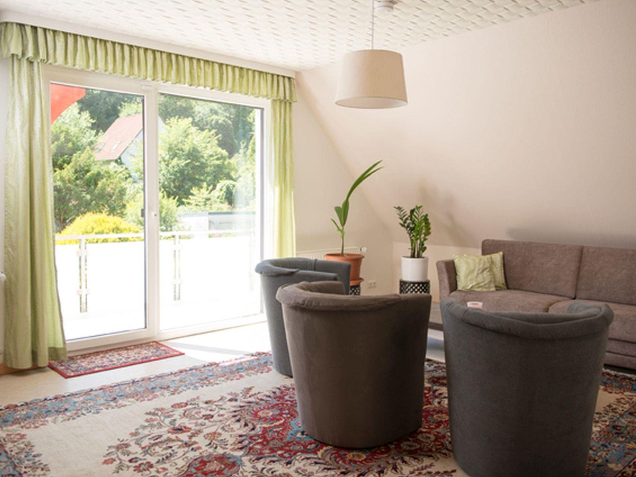 Die Ferienwohnung liegt im 1. OG unseres Hauses. Ganz in der Nähe beginnt der Wald, also gut geeignet für Wanderungen und Radtouren. Parkplatz vor dem Haus vorhanden. Ausserdem befindet sich ein Reitstall in der Nähe.