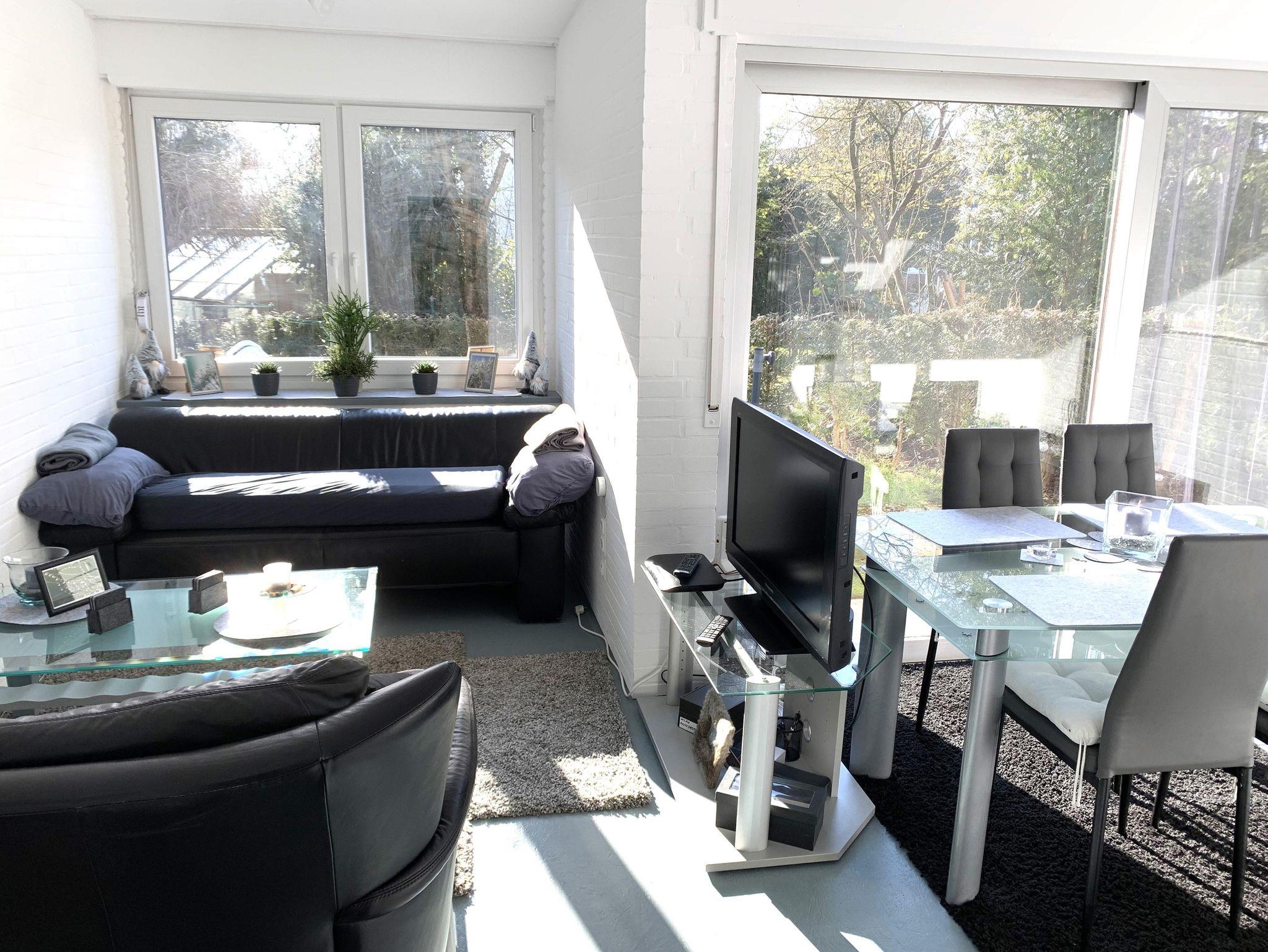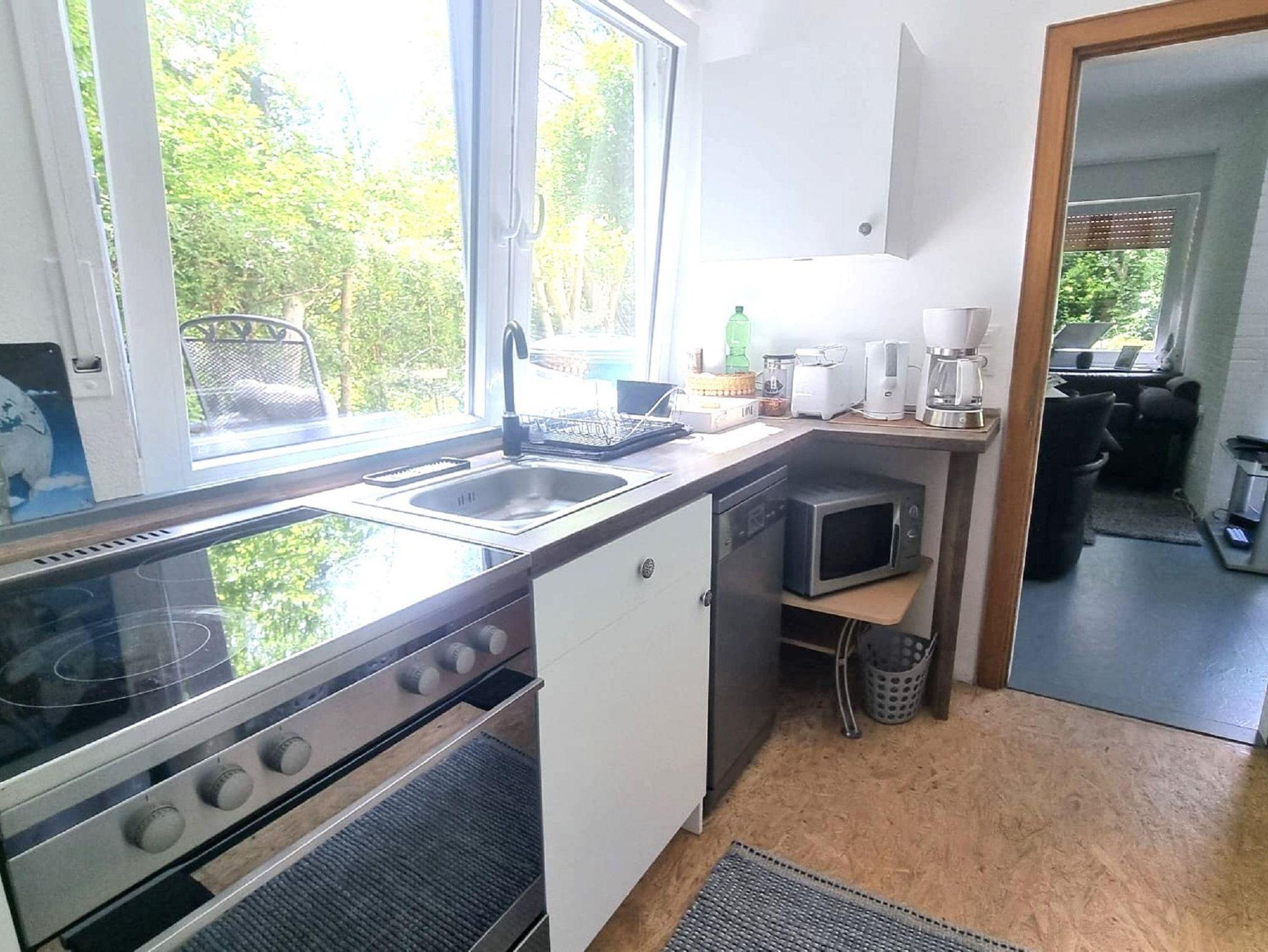 Die liebevoll und modern eingerichtete Parterrewohnung empfängt Sie mit einem separaten Eingang, den Sie über einige Treppenstufen erreichen. Beim Betreten gelangen Sie in den Eingangsbereich mit Garderobe, wo auch Reinigungsmittel, ein LAN-Anschluss für Ihren Laptop, ein Kinderhochstuhl sowie zwei mobile Zustellbetten für den 3. und 4. Gast bereitstehen. Direkt anschließend befindet sich das Badezimmer mit Dusche. Über eine Treppenstufe führt der Weg in das helle Schlafzimmer mit großem Fenster. Hier sorgt ein hochwertiges 1,40 x 2 m Boxspringbett für erholsamen Schlaf. Die Betten sind frisch bezogen, Hand- und Geschirrtücher liegen für Sie bereit. Vom Schlafzimmer aus gelangen Sie entweder in die maßgefertigte, voll ausgestattete Küche mit großem Fenster oder in das lichtdurchflutete Wohn-/Esszimmer.Die Küche bietet alles, was Sie zum Kochen brauchen: Spülmaschine, Herd, Mikrowelle, Kühl-Gefrier-Kombi, zahlreiche Küchenutensilien sowie Kaffeemaschine, Wasserkocher, Standmixer und Toaster. Ein Mülltrennungssystem, Handstaubsauger und Feuerlöscher sind ebenfalls vorhanden. Das großzügige Wohn-/Esszimmer ist der hellste Raum der Wohnung. Ein doppelflügeliges Fenster und eine bodentiefe Glasschiebetür zur Sonnenseite lassen viel Licht herein. Die mobilen Zustellbetten können flexibel platziert werden – im Esszimmer, im Vorraum oder zusätzlich im Schlafzimmer. Im Wohnzimmer laden zwei bequeme Ledersofas mit weichen Auflagen zum Entspannen ein. Ein Couchtisch, ein TV , ein Radio, sowie ein Standventilator sorgen für zusätzlichen Komfort. Ein Essbereich mit großem Glastisch für alle Gäste ist auch vorhanden. Dank des ebenerdigen Zugangs zur eigenen Terrasse und dem angrenzenden Garten fühlt sich die Wohnung wie ein kleines Ferienhaus an. Von etwa 10:00 bis 17:00 Uhr genießen Sie hier auf den Gartenliegen entspannte Sonnenstunden. Die ruhige, nach hinten gelegene Lage garantiert Erholung inmitten der Natur.