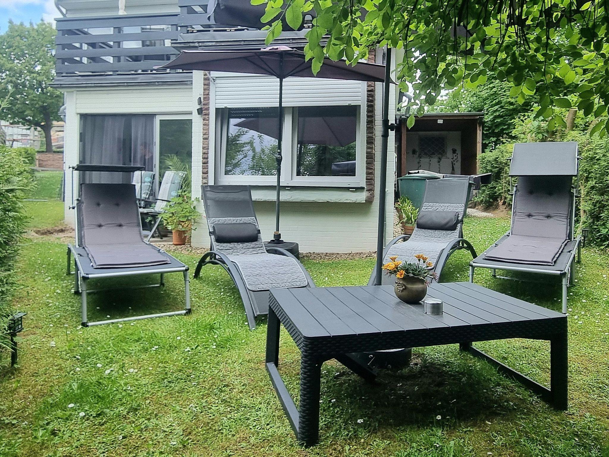 Ferienwohnung Morgentau, FeWo mit Grillbereich, Terrasse und Sonnenliegen