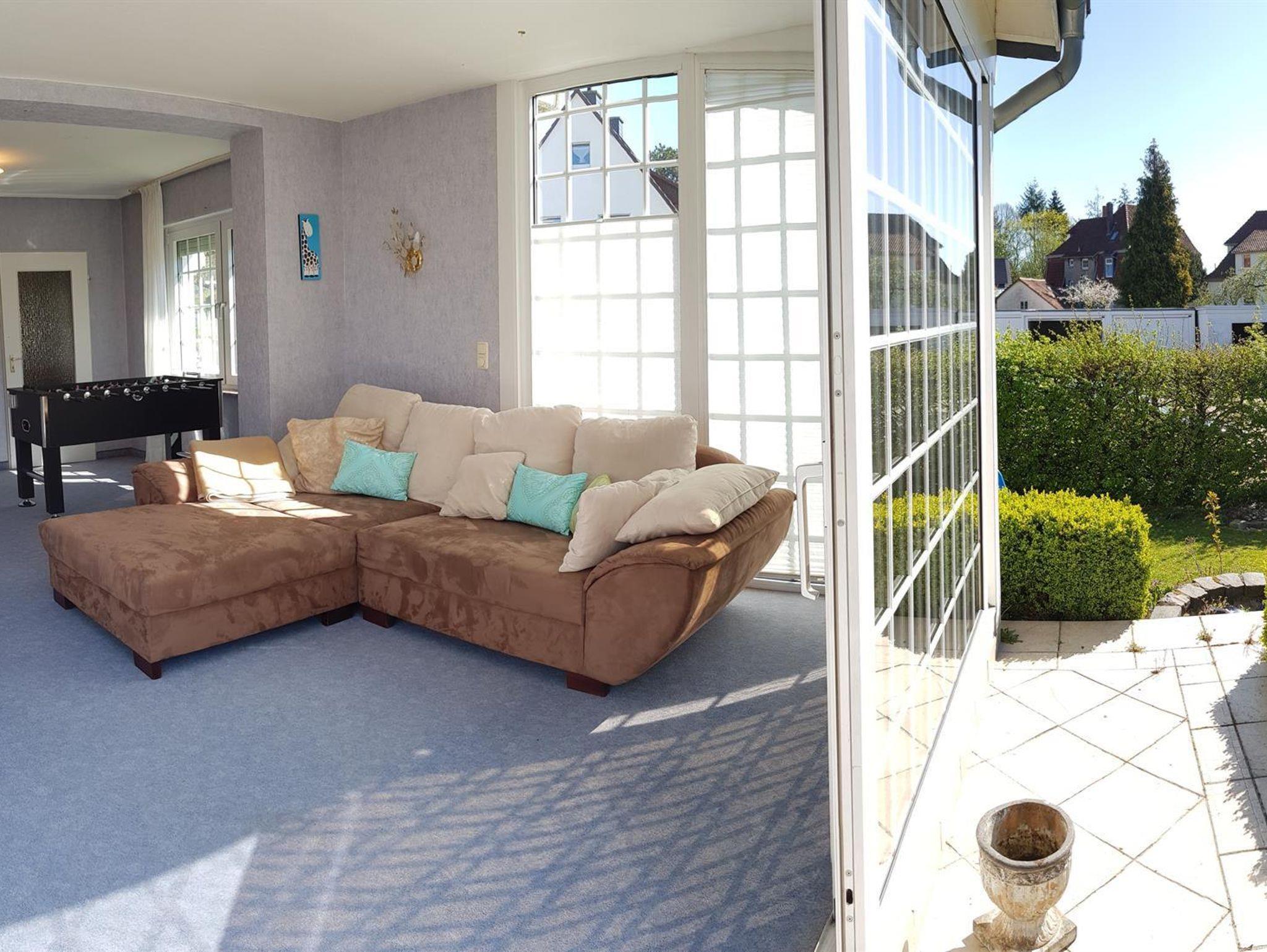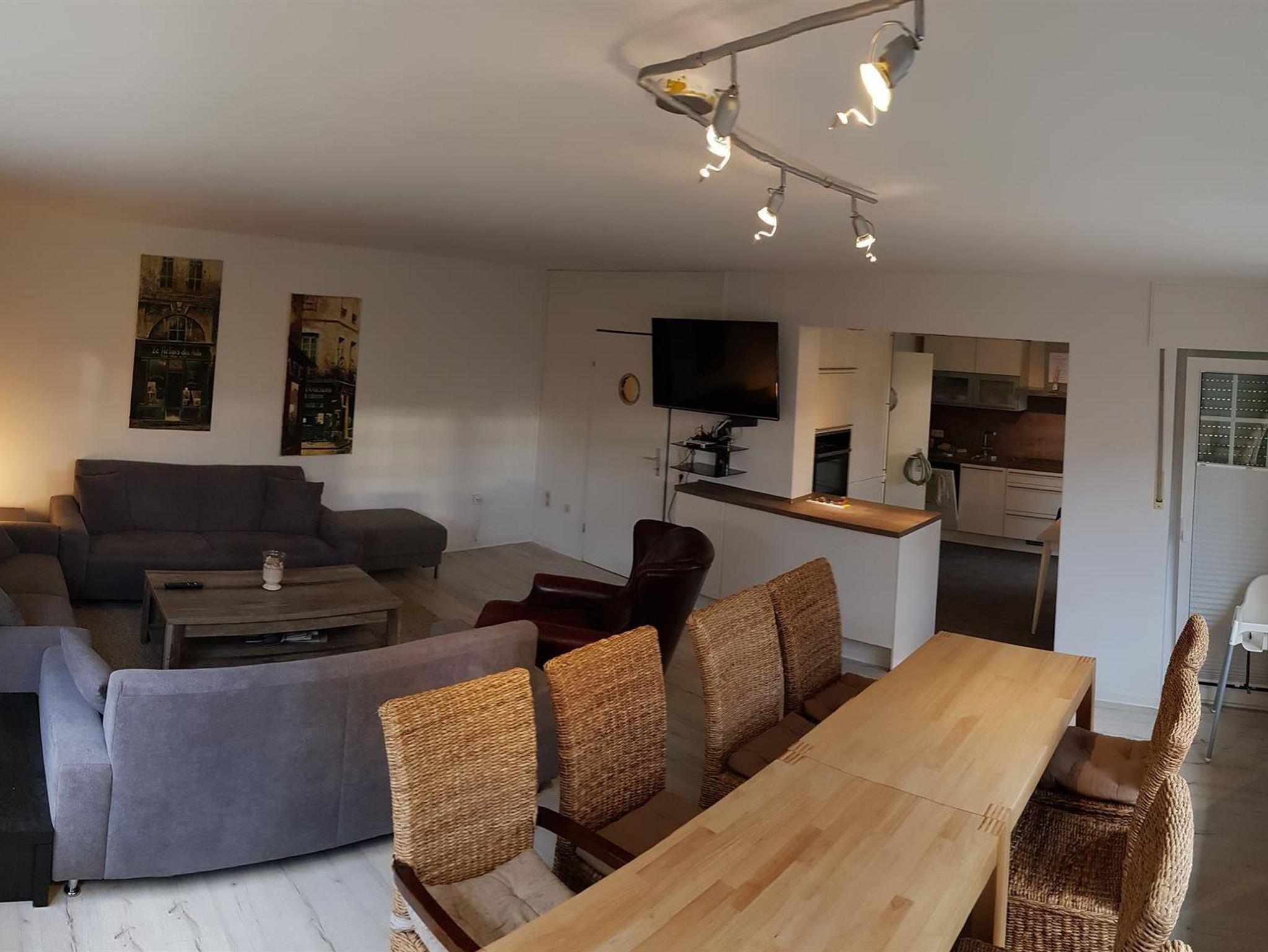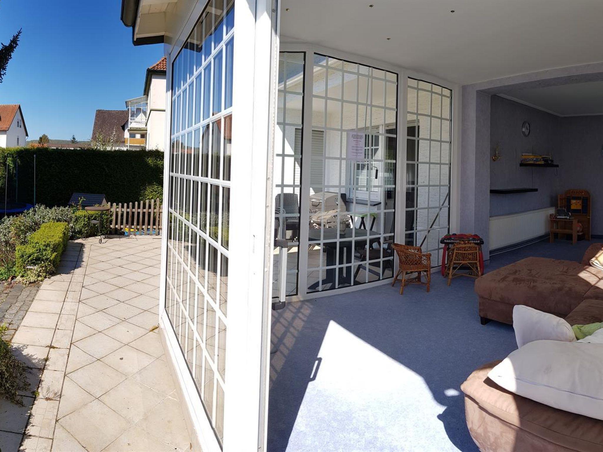 Weiterhin gibt es einen Wohn-/Essbereich mit Kabel-TV, eine moderne, voll ausgestattete Küche mit Spülmaschine, Backofen, Mikrowelle und Herd sowie eine Terrasse mit Grillmöglichkeit (erreichbar aus Küche, Wintergarten und Wohnzimmer). Weiterhin steht ein großer Wintergarten mit Kickertisch, Dartscheibe und Kindereinkaufsladen zur Verfügung. W-Lan kostenlos. 5 kostenlose Parkplätze am Haus.