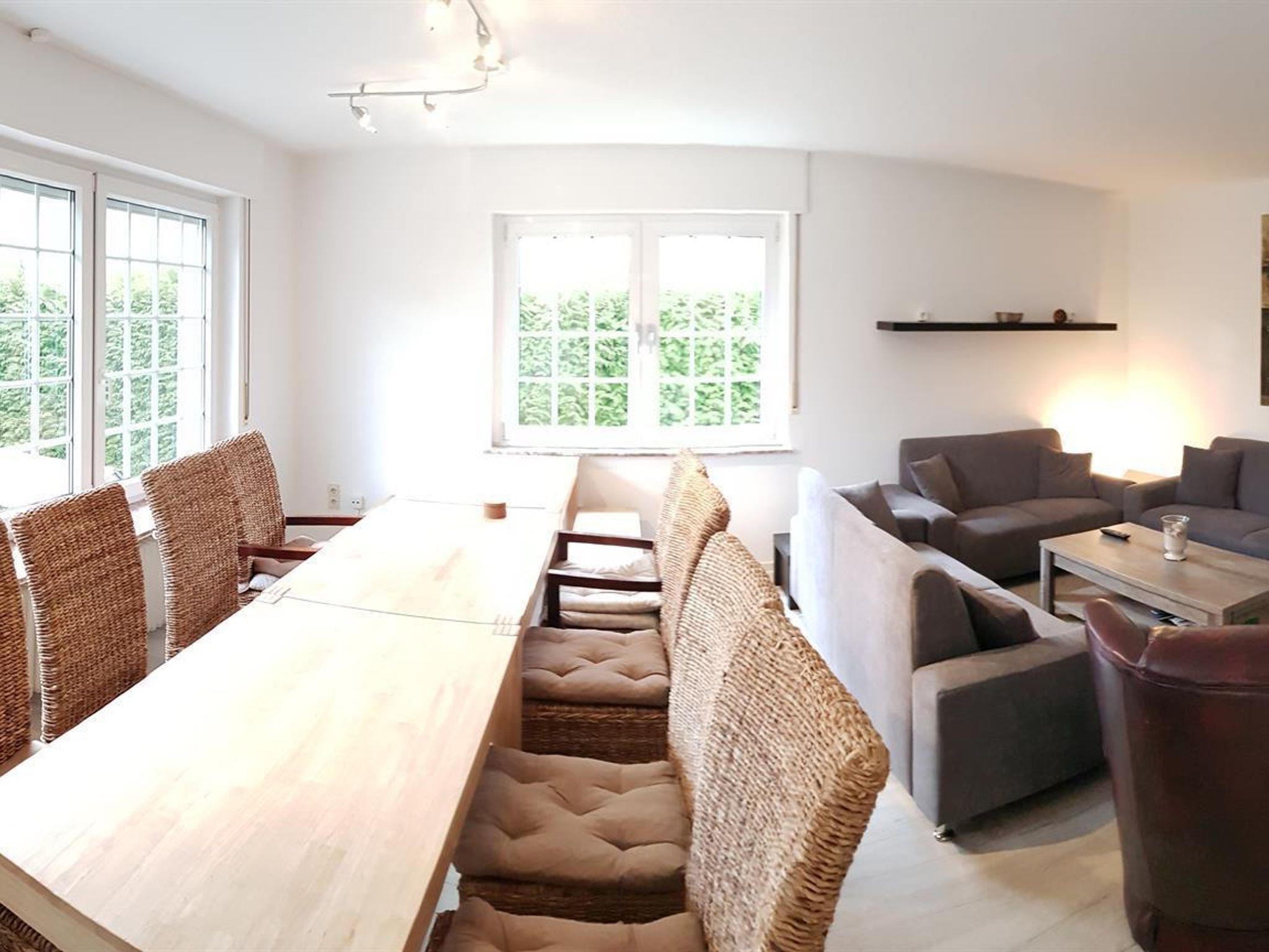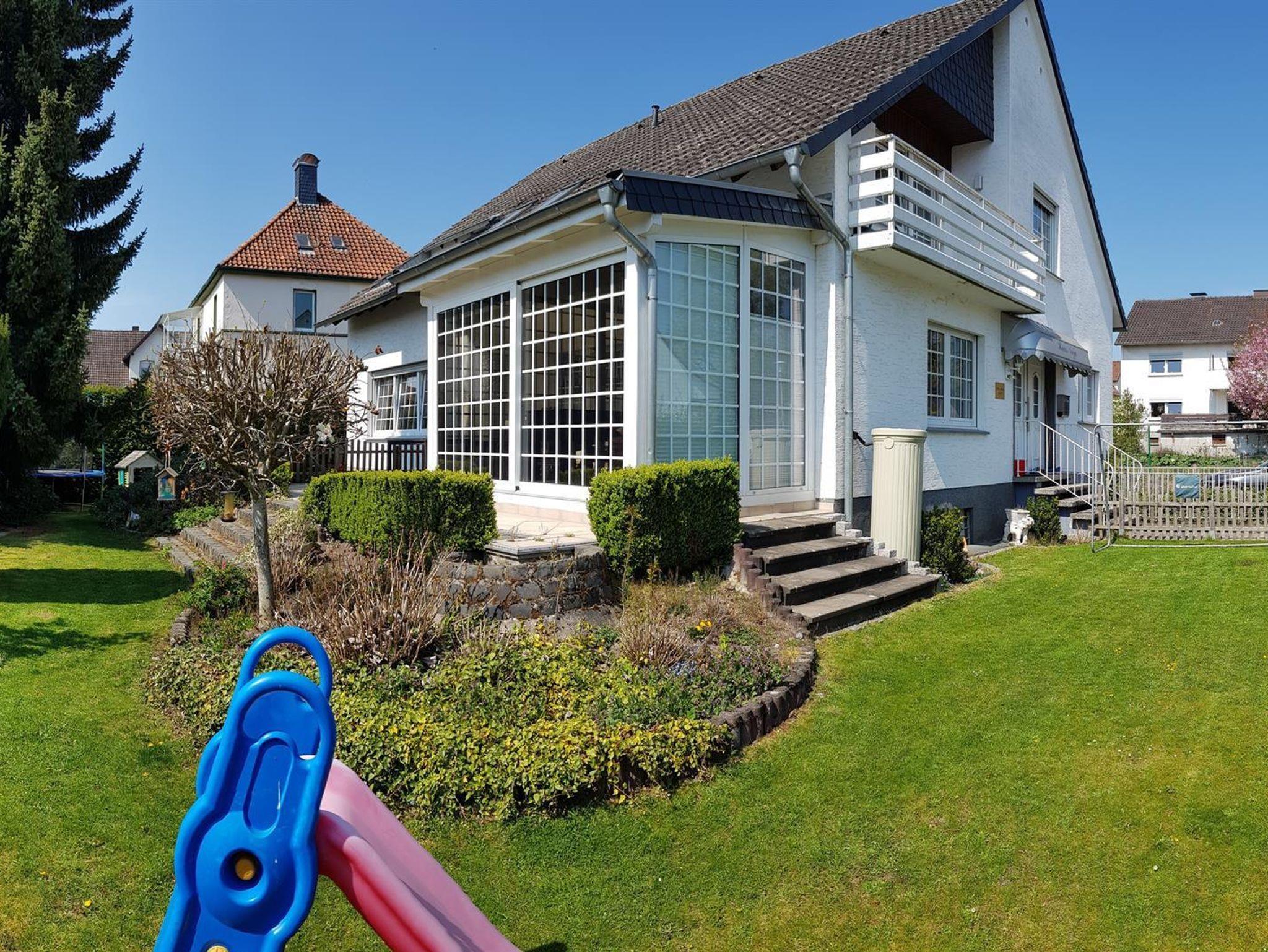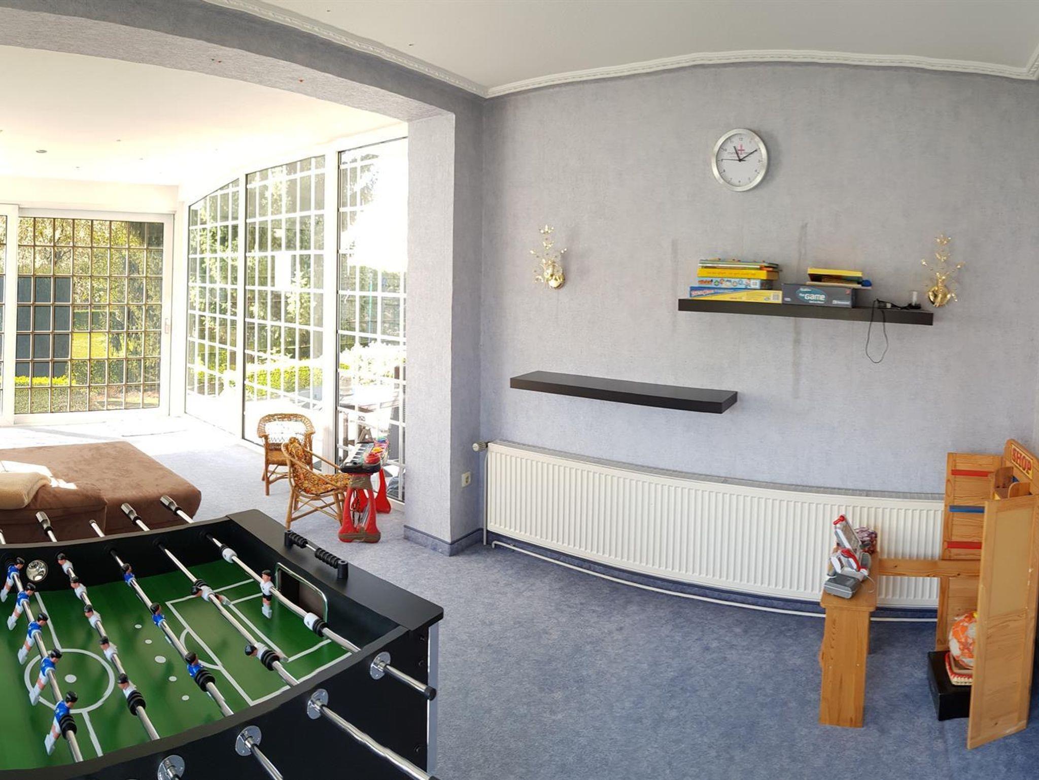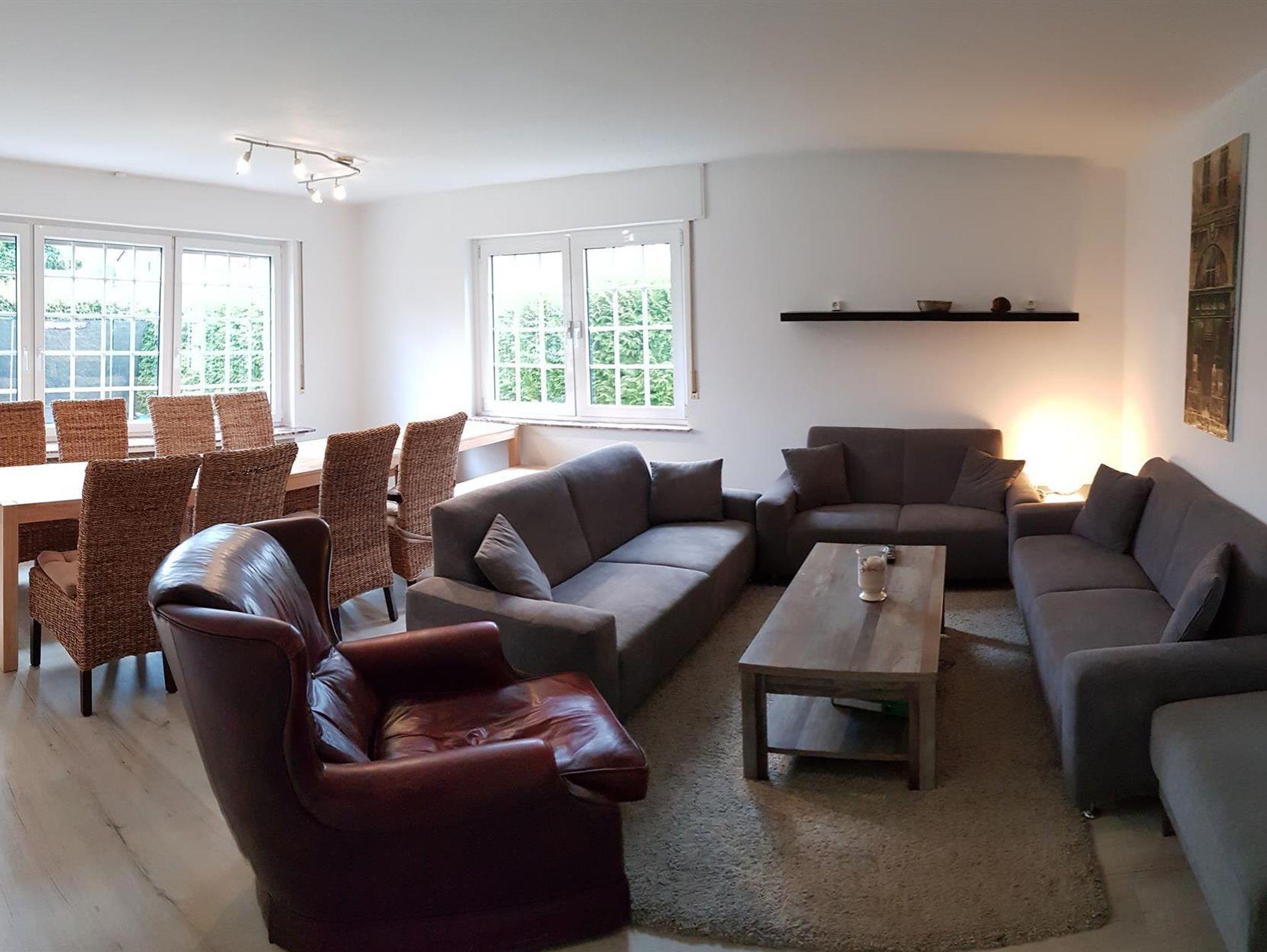 Weiterhin gibt es einen Wohn-/Essbereich mit Kabel-TV, eine moderne, voll ausgestattete Küche mit Spülmaschine, Backofen, Mikrowelle und Herd sowie eine Terrasse mit Grillmöglichkeit (erreichbar aus Küche, Wintergarten und Wohnzimmer). Weiterhin steht ein großer Wintergarten mit Kickertisch, Dartscheibe und Kindereinkaufsladen zur Verfügung. W-Lan kostenlos. 5 kostenlose Parkplätze am Haus.