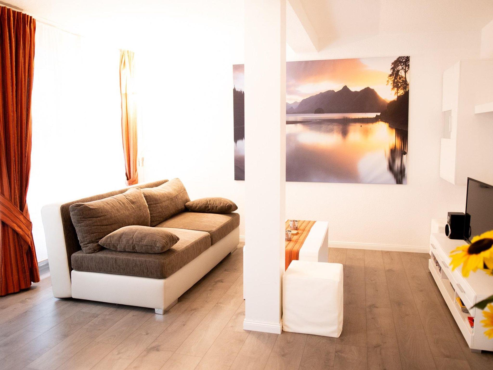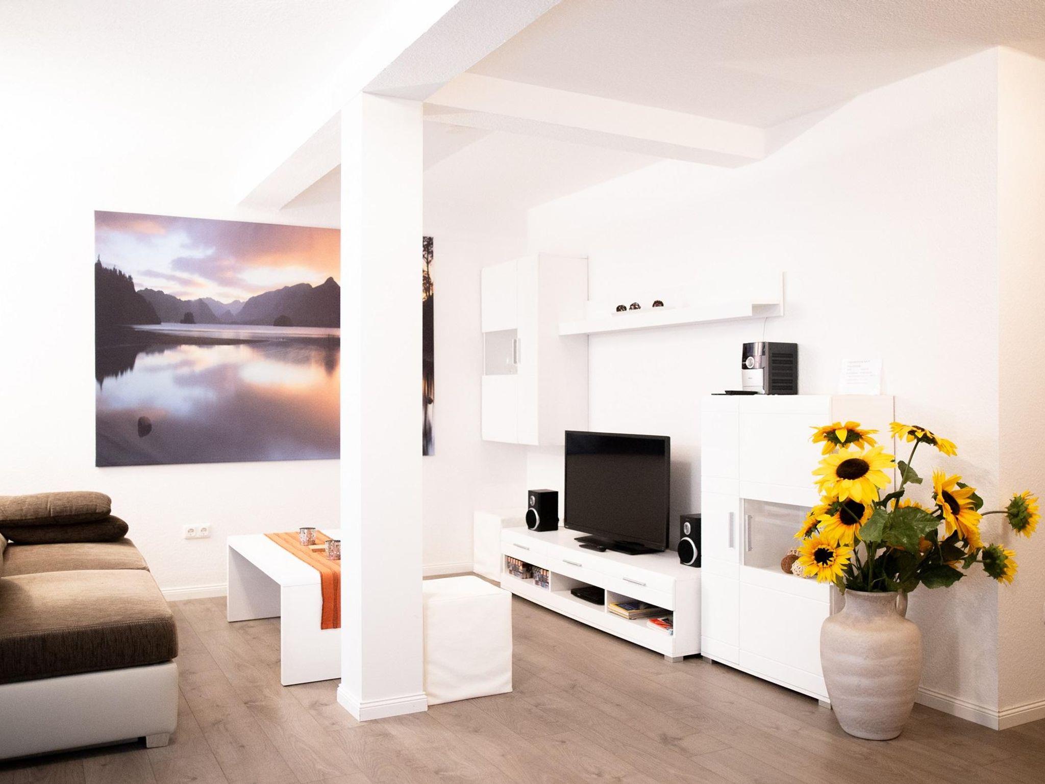 An einem großen LED-Fernseher, können Sie auf der gemütlichen Couch, Ihren Abend genießen.