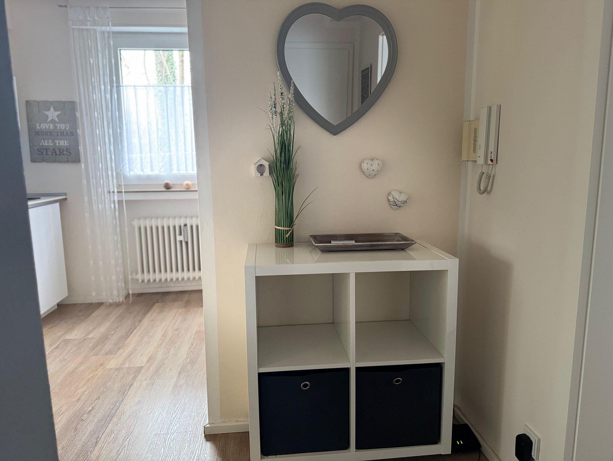 Die moderne Ferienwohnung lädt mit seinem modernen und komfortablen Charme zur Erholung ein. Vergessen Sie in der gemütlichen und mit Liebe zum Detail eingerichteten Wohnung den Alltag oder erholen Sie sich von Ihren Aktivitäten in und um Bad Pyrmont. Ein Komfort-Boxspringbett lädt zum Träumen ein und in dem großen Kleiderschrank und einer Kommode haben Sie viel Platz zum Verstauen Ihrer Garderobe. Zwei große Smart TVs befinden sich im Wohnbereich und im Schlafzimmer. Kostenloses Internet / WLAN rundet das Angebot ab. In der geräumigen Küche befinden sich ein Kühlschrank, Geschirrspüler, Ceranherd mit Backofen, Wasserkocher, Kaffeemaschine, hochwertiges Porzellan, Besteck, Gläser, Töpfe und Pfannen, sowie Grundgewürze, Kaffee und Tee. Im hochmodernen Dusche/WC-Bad befinden sich eine bodenebene Rain-Shower-Dusche mit separater Handbrause, Seife und Shampoo, ein Fön und ein Verbandsset sowie eine moderne Kunstinstallation für Ihre Handtücher. Wir stellen Ihnen Hand- und Badetücher, Geschirrtücher, sowie sämtliche Hygienepapiere zur Verfügung. Der Wohn- und Essbereich bietet genügend Platz zur Entspannung und besticht durch sein sonnendurchflutetes Flair. Eine gemütliche Sitzgruppe und ein robuster Esstisch aus Eiche laden dazu ein, Mahlzeiten in entspannter Atmosphäre zu genießen. Geschmackvolle Ölbilder und Accessoires komplettieren den Gesamteindruck und unterstreichen das gemütliche Ambiente. Genießen Sie die Natur mitten in der Stadt und trotzdem im Grünen, auf der ruhigen und überdachten Terrasse auf bequemen Teakholzmöbeln. Sie finden bei uns Bettwäsche, Handtücher, Badetücher, Hygienepapiere, Seife, Shampo, Duschgel und noch vieles mehr vor. Das 62 qm große Apartment zeichnet sich durch seine zentrale Lage innerhalb von Bad Pyrmont aus. Durch die Hanglange bedingt, geht es erst einmal „abwärts“ für Sie, da sich das Apartment im zweiten Hausbereich im Parterre befindet. Sie gelangen über den Fahrstuhl oder eine Treppe hinab. Nun trennen Sie lediglich noch drei gut begehbare Treppenstufen von Ihrem Feriendomizil.