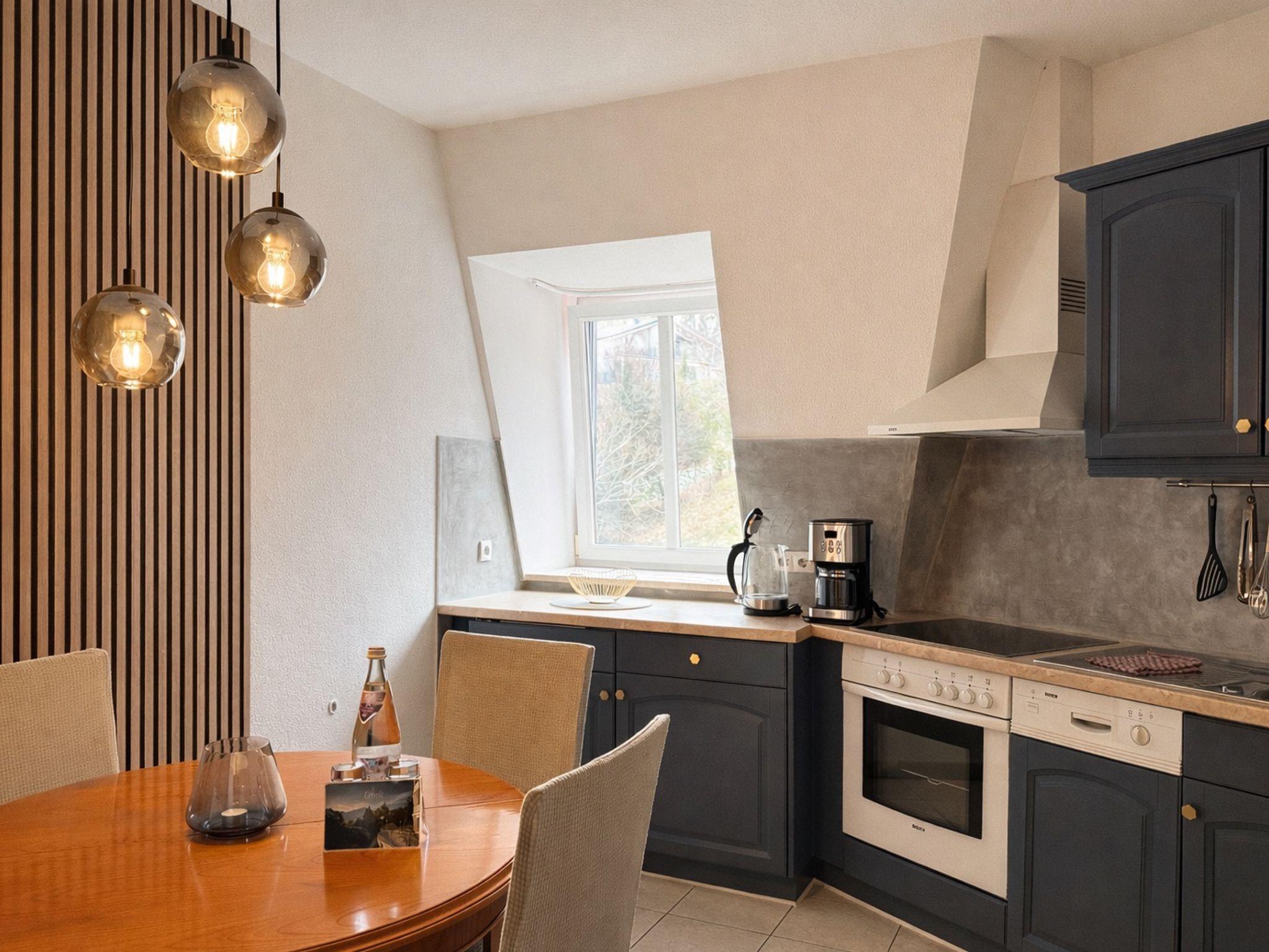Unser schönes, gemütliches Apartment befindet sich im 3. OG und ist im klassisch- eleganten Stil eingerichtet. Sie verfügt über ein separates Schlafzimmer mit einem Doppelbett (Boxspringmatratzen - 1,80 x 2,00), ein Wohnzimmer mit Schlafsofa, eine gut ausgestattete Küche mit Essecke, sowie ein Bad mit Badewanne/WC. Auf dem Balkon können Sie den Blick auf die Alpenstadt mit Bergpanorama genießen!