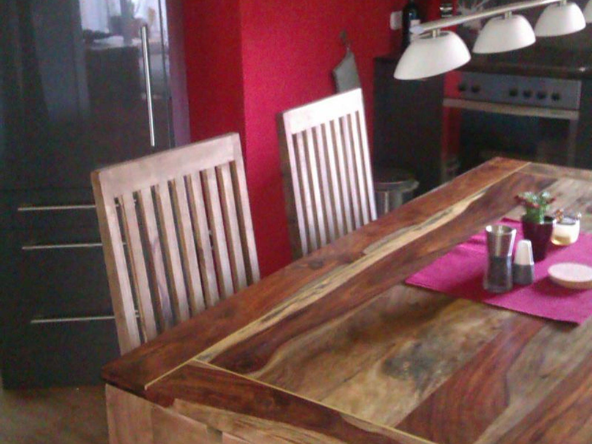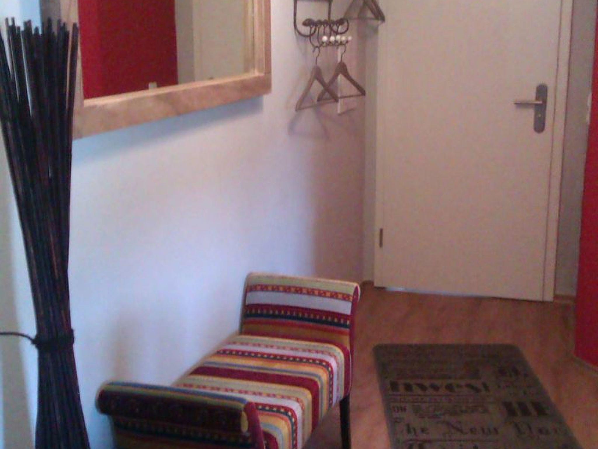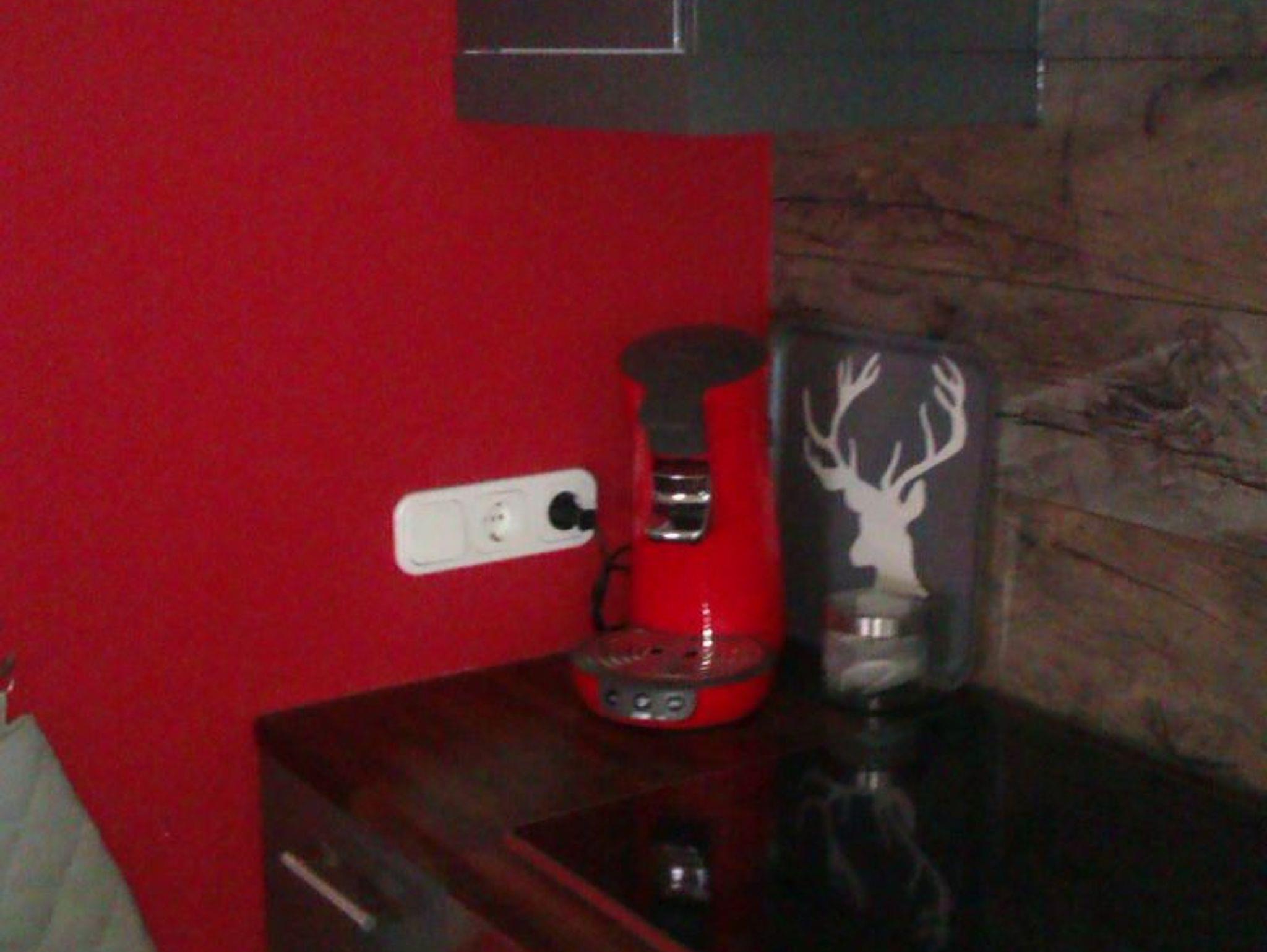 Das Appartement hat eine Wohnküche in modernstem Hochglanzgrau, mit Spülmaschine, Kühlschrank, Wasserkocher, Ceranfeld und Backrohr. Die Möbel in der Küche (Esstisch, Spiegel und vier Stühle) sind aus feinstem Palisanderholz. Küche und Wohnzimmer sind offen, können aber durch eine drei Meter breite Klapptüre auch geschlossen werden. Im Wohnzimmer befindet sich ein ausziehbares Eckledersofa und noch ein weiteres Schlafsofa. Auch da sind die Möbel aus Palisanderholz. Es ist mit einem modernen Flachbildfernseher und DVD-Player ausgestattet. Auf dem Balkon befindet sich ein Kunstrattanesstisch mit vier Stühlen. Sämtliche Utensilien wie Tischsets, Besteck, Teller usw. sind vorhanden. Die Veranda (der Balkon ist 2, 80 Meter breit) hat einen großzügigen Sonnenschirm. Das dritte Zimmer ist das Schlafzimmer. Es hat ein Doppelbett und einen Schrank, geschmackvoll eingerichtet, mit schönen Bildern ausgestattet. Man schläft sehr ruhig und bequem in Satinbettwäsche. Im Badezimmer befindet sich eine große, komfortable Regendusche, ein extra breites Waschbecken, ein Designerspiegel und die Toilette.