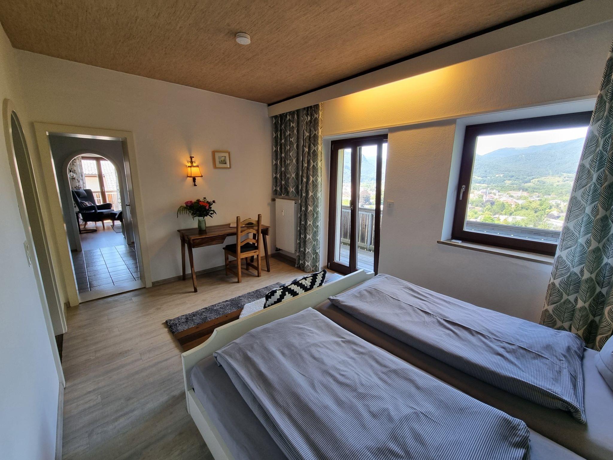 Entdecken Sie unsere gemütliche Ferienwohnung Panorama. Die Wohnung besteht aus einem komfortablen Wohnzimmer mit einem bequemen Schlafsofa und einer seperaten voll ausgestatteten Wohnküche mit einer Spülmaschine. In dem Schlafzimmer mit einem gemütlichen Doppelbett und einem angrenzenden Badezimmer mit Dusche und WC. Ein besonderes Highlight der Wohnung ist der umlaufende Balkon, der Ihnen einen atemberaubenden Blick auf Bad Reichenhall und die umliegenden Berge bietet. Hier können Sie Ihre Mahlzeiten im Freien genießen und einfach die herrliche Aussicht auf sich wirken lassen.