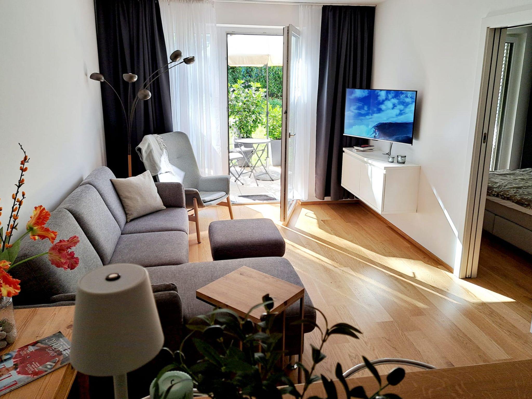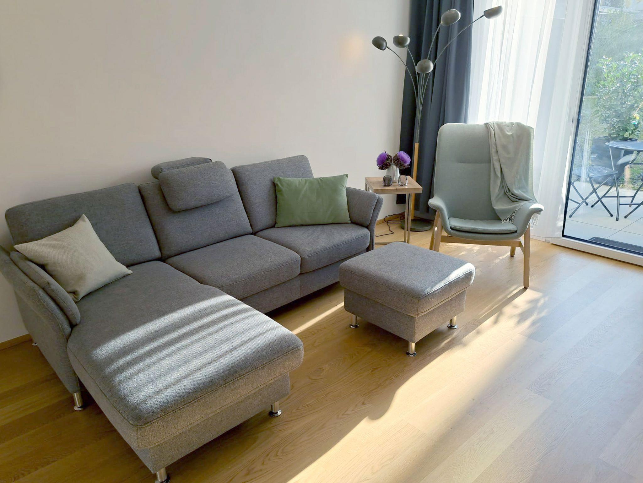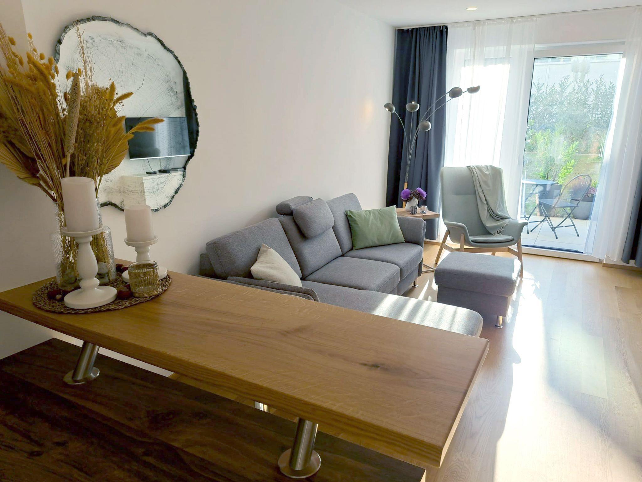 Die Ferienwohnung Schwan bietet außergewöhnlichen Komfort und eine gemütliche Atmosphäre. Unsere Ferienwohnung mit Terrasse ist 60qm groß. Der offene Wohn- Essbereich verfügt über eine Eckcouch sowie einer Essecke mit einer Sitzbank und Stühlen. Die Küche ist mit einem Cerankochfeld, Backofen, Geschirrspüler, Kühlschrank und einem Kaffeeautomaten ausgestattet. Die Wohnung verfügt über 2 Bäder. Davon ist das Gästebad mit einer Dusche und das zweite Bad mit einem Wannenbad mit Waschmaschine und Trockner ausgestattet. Das Schlafzimmer verfügt über ein Boxspringbett, einen Bauernschrank und einen TV. Unterputzradio mit Lautsprechern sind in allen Räumen vorhanden. Die Terrasse lädt zum verweilen ein. Hier gibt es außerdem eine abschließbare Abstellbox. Ihr Auto parkt in der Tiefgarage mit Duplex-Parkplatz. Das Rauchen ist ausschließlich auf der Terrasse erlaubt.