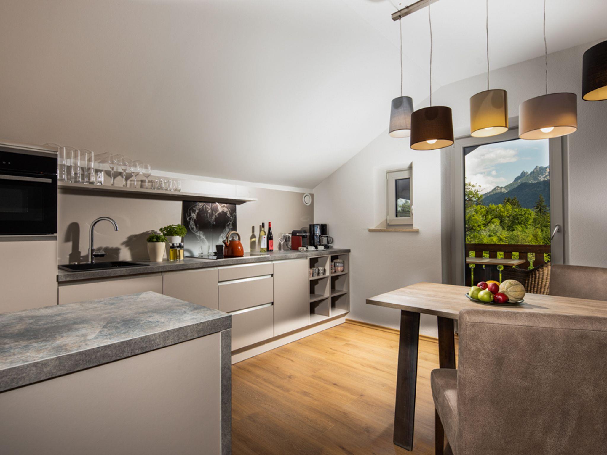 Großzügige, exklusive Wohnung mit lichtdurchflutetem, offenem Wohnraum im Obergeschoss (nicht mit dem Lift erreichbar), dafür aber mit dem besonderen Blick auf den Gablerweiher und den Predigtstuhl.