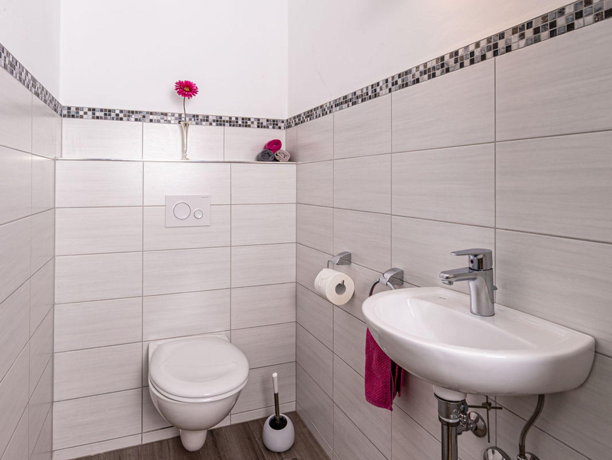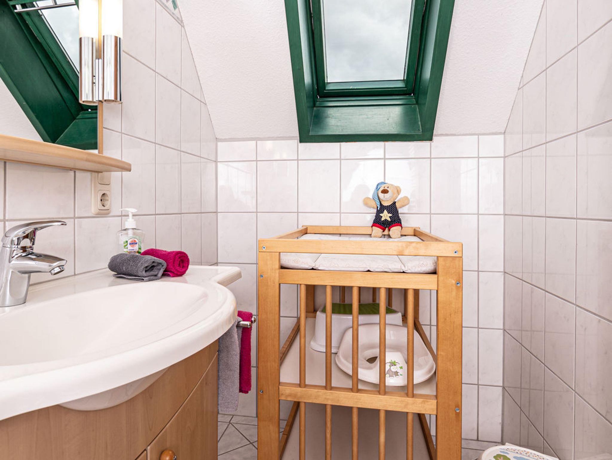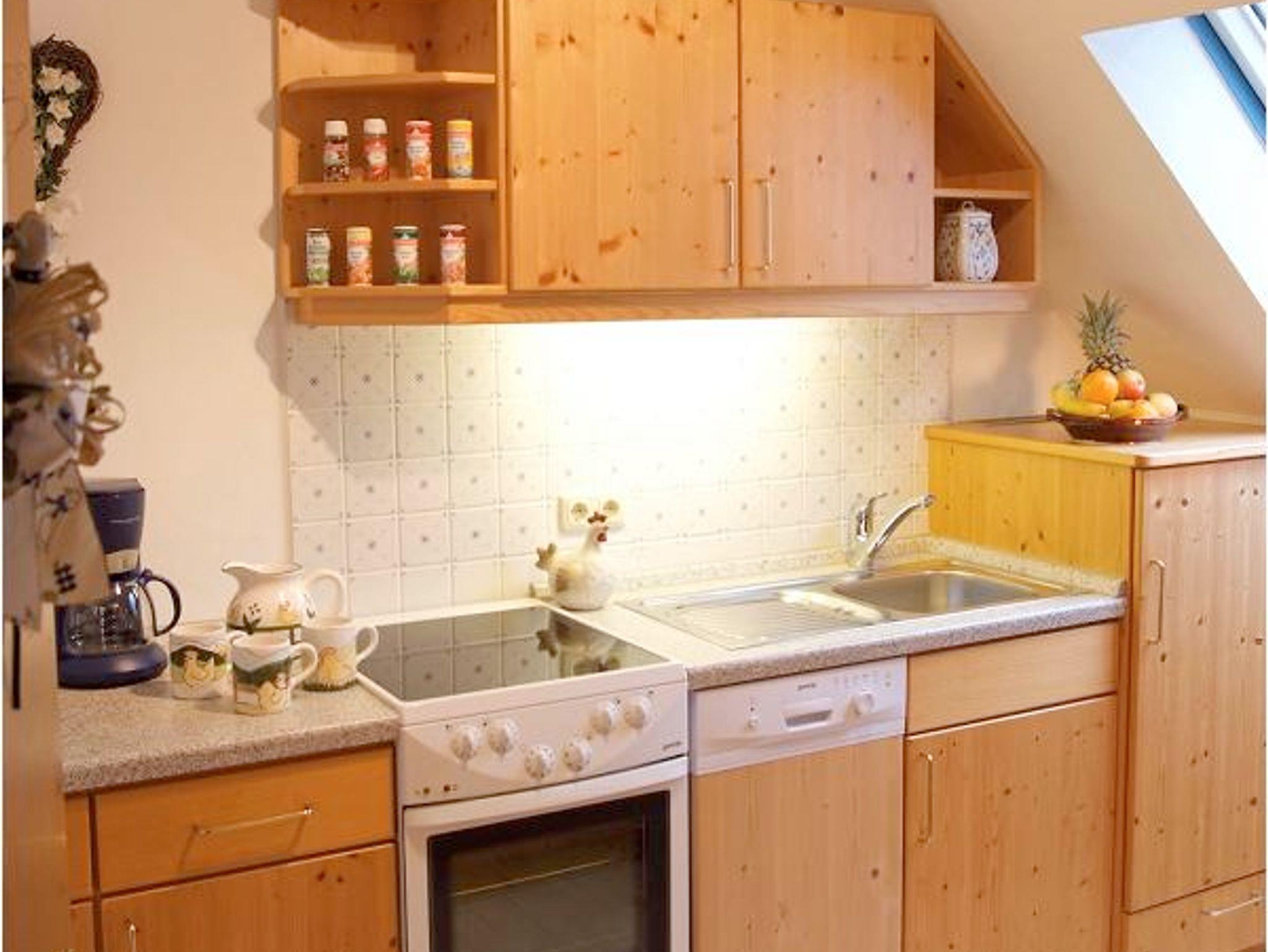Die gemütliche Nichtraucher-Ferienwohnung bietet Platz für 5 Personen. Zu jedem der drei Schlafzimmer gehört ein eigenes Bad - ideal für Familien. In 2 Schlafzimmern befindet sich jeweils ein Doppelbett, im dritten ein Einzelbett. Das Wohnzimmer ist großzügig und gemütlich im ländlichen Stil eingerichtet und hat einen SAT-Flachbildschirm und Stereoanlage. Die Küche ist sehr gut ausgestattet mit Mikrowelle, Ceranfeld, Backofen und Geschirrspüler.