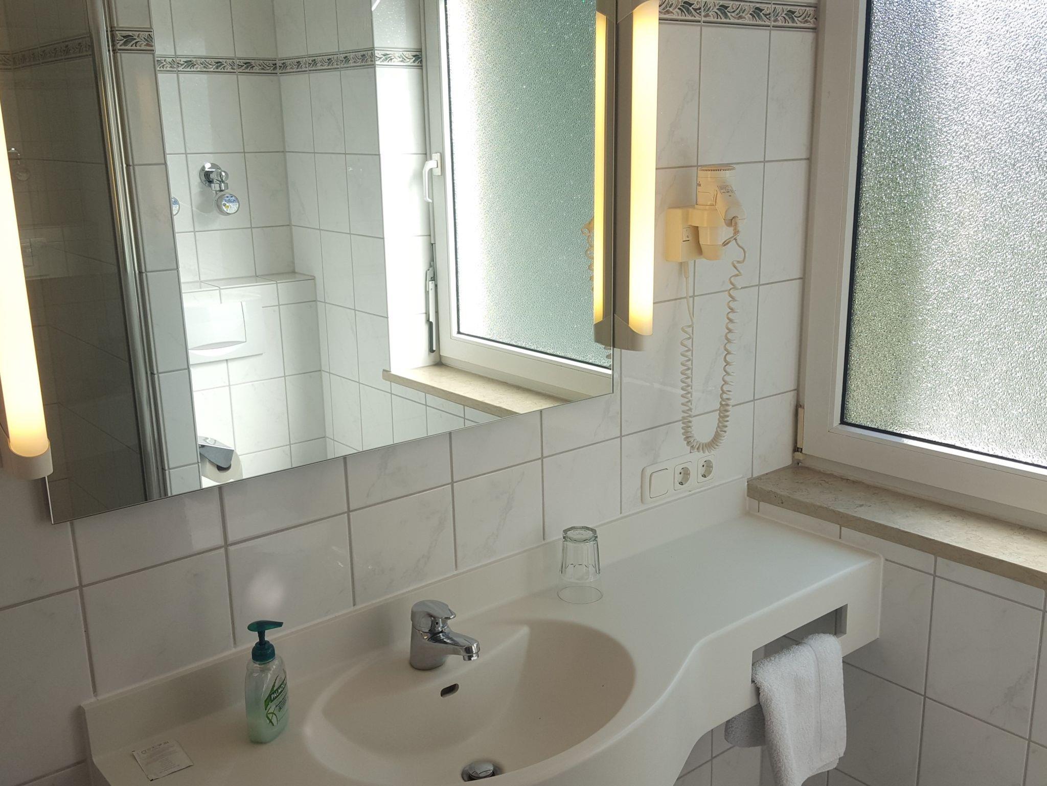 DAS EINZELZIMMER HAT KEINE KÜCHE! Gerne können wir Ihnen bei Bedarf einen kleinen Getränkekühlschrank und einen Wasserkocher hineinstellen. Das Bad verfügt über ein WC, Dusche, Haartrockner und ein Fenster.