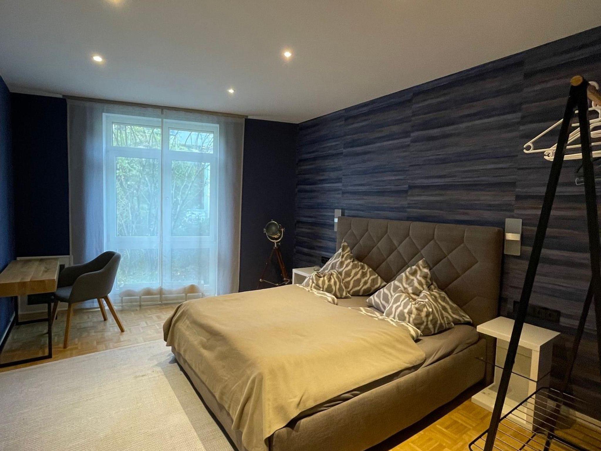 Die geräumige 70 qm große Ferienwohnung ist zentral und dennoch ruhig gelegen und befindet sich in der im Erdgeschoss. Sie ist mit Sorgfalt und Liebe zum Detail eingerichtet, um Ihnen einen Aufenthalt voller Komfort zu bieten. Sie verfügt über ein geräumiges Wohnzimmer mit einer Couch, einem Flachbild-TV und einem separaten Schlafzimmer mit Doppelbett. Die voll ausgestattete Küche mit einem Geschirrspüler, einem Backofen, einer Waschmaschine, einem Toaster und einem Kühlschrank lässt keine Wünsche offen. Von der Terrasse mit Möbeln genießen Sie Gartenblick und können den Abend gemütlich ausklingen lassen. Wir freuen uns, sie bei uns verwöhnen zu dürfen.
