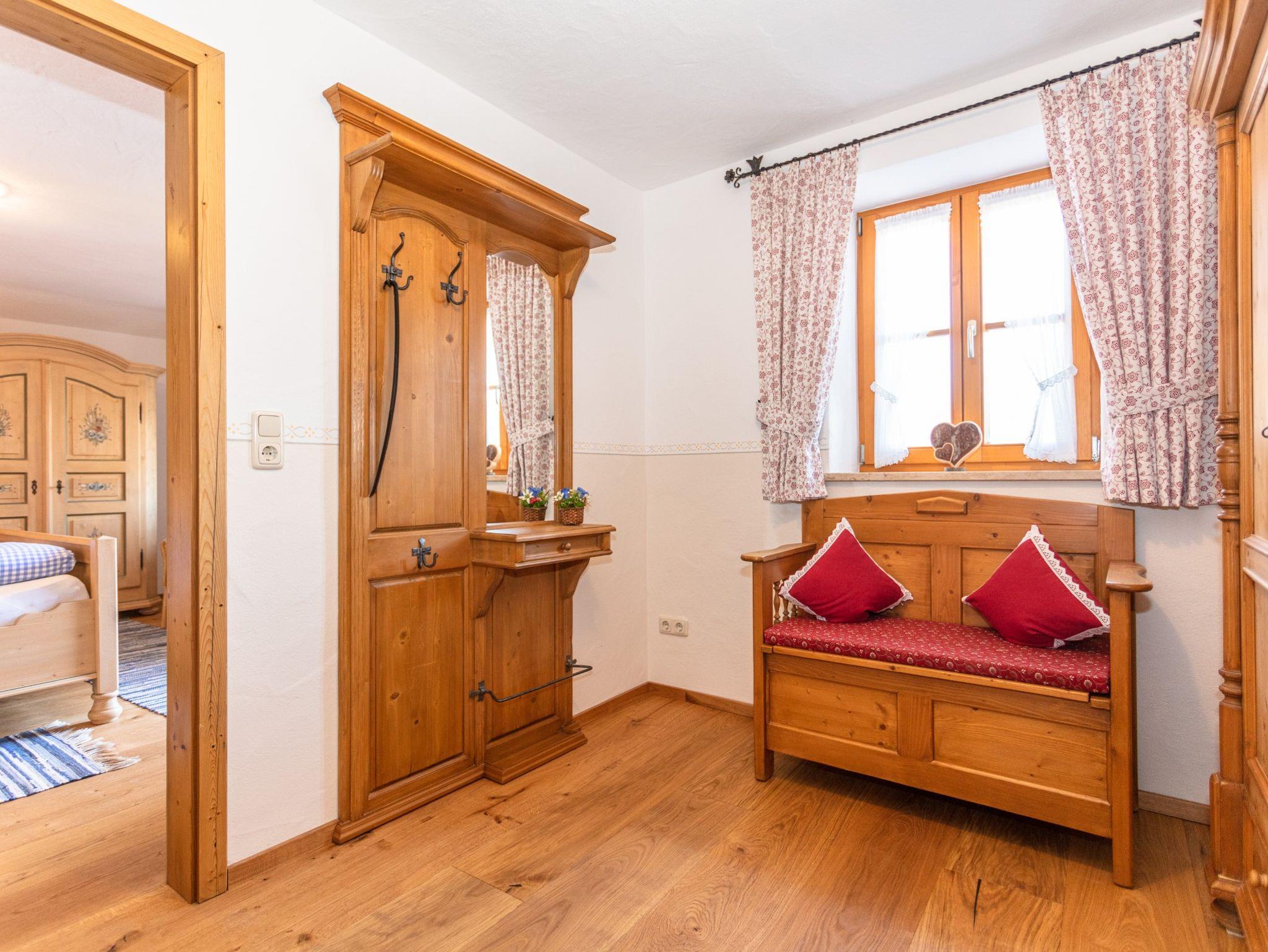 Diese Wohnung wurde komplett neu erstellt und ist sehr exklusiv ausgestattet. Die Ferienwohnung Hochthron befindet sich im 2. Stock (ohne Aufzug) des Haupthauses und verfügt über einen eigenen großen Balkon mit Sitzmöbeln und einen Tisch. Die Wohnung ist sehr ruhig, da sie in der obersten Etage liegt und sich dort keine weiteren Gäste befinden. Die Ferienunterkunft, mit einer Wohnfläche von 50 m², ist wie folgt aufgeteilt: Ein Schlafzimmer, ein Badezimmer, Wohn-Esszimmer mit Küche und Essecke, einen Eingangsbereich mit Garderobe. Hochwertigste Ausstattung: Vom Schreiner aus der Umgebung gefertigte massive Altholztüren und massive handbemalte Schlafzimmermöbel. Echtholzboden aus Eichendielen. Teilweise Wandvertäfelung aus Altholz. Komplett neues Badezimmer mit Regenschauerdusche. Komplett eingerichtete Küchenzeile mit Kühlschrank inklusive Gefrierfach, Geschirrspüler, Backofen, Ceranfeld, Mikrowelle, Kaffeemaschine, Wasserkocher, Toaster, Geschirr in ansprechenden Design, Töpfe, Pfannen und Kleinutensilien, Essecke, ausziehbares Ecksofa, Fernseher im Wohnbereich ( 50 Zoll) und im Schlafzimmer, Kostenloses W-LAN.