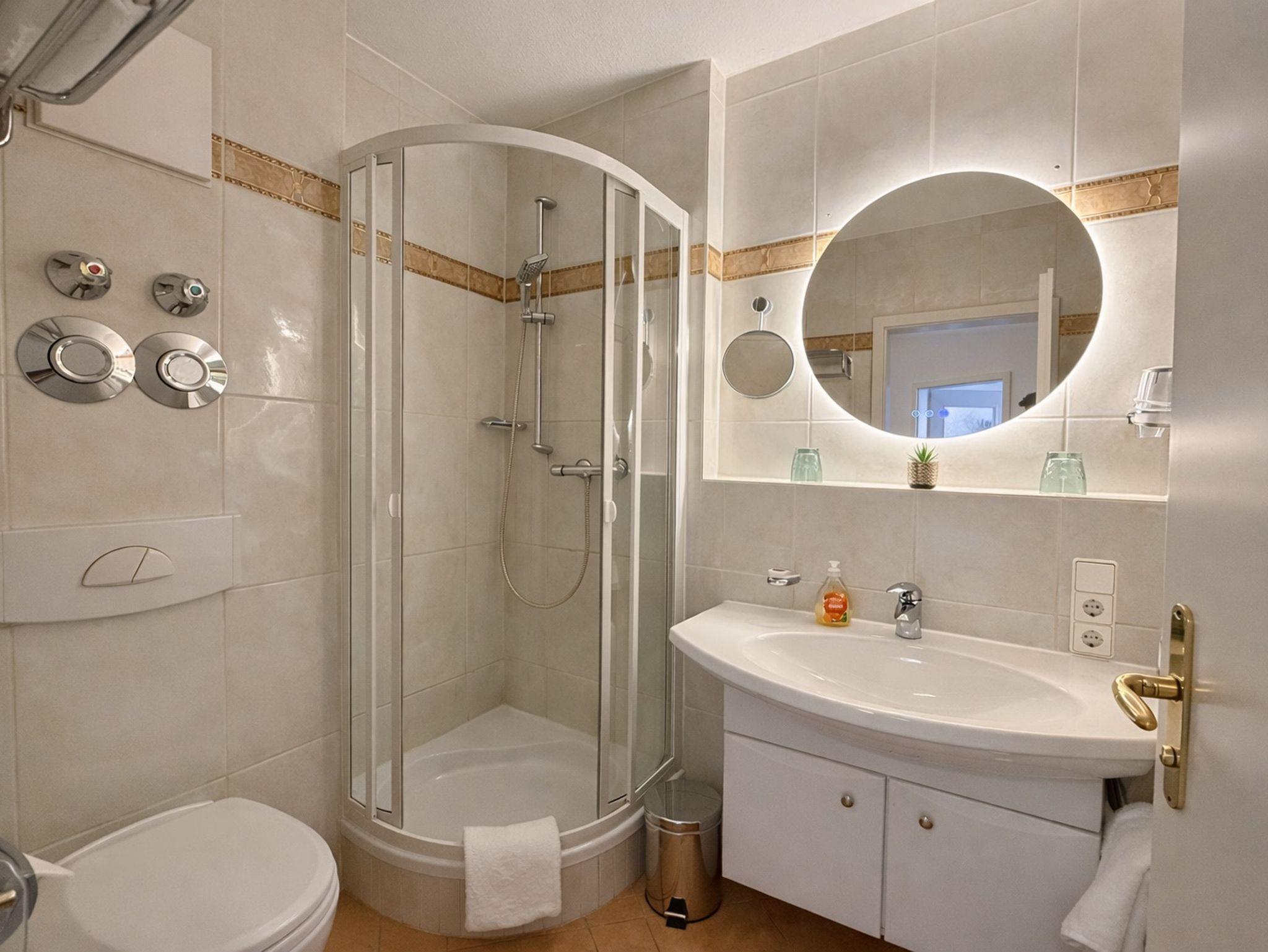 Unser schönes, gemütliches Appartement ist im klassisch- eleganten Stil eingerichtet. Die Wohnung befindet sich im 1. OG und verfügt über ein separates Schlafzimmer mit einem Doppelbett (Boxspringmatratzen - 1,80 x 2,00), ein Wohnzimmer mit Essecke, eine gut ausgestattete Küche mit Geschirrspüler, sowie ein Bad mit Dusche/WC. Auf dem Balkon können Sie das herrliche Bergpanorama der Alpenstadt genießen!