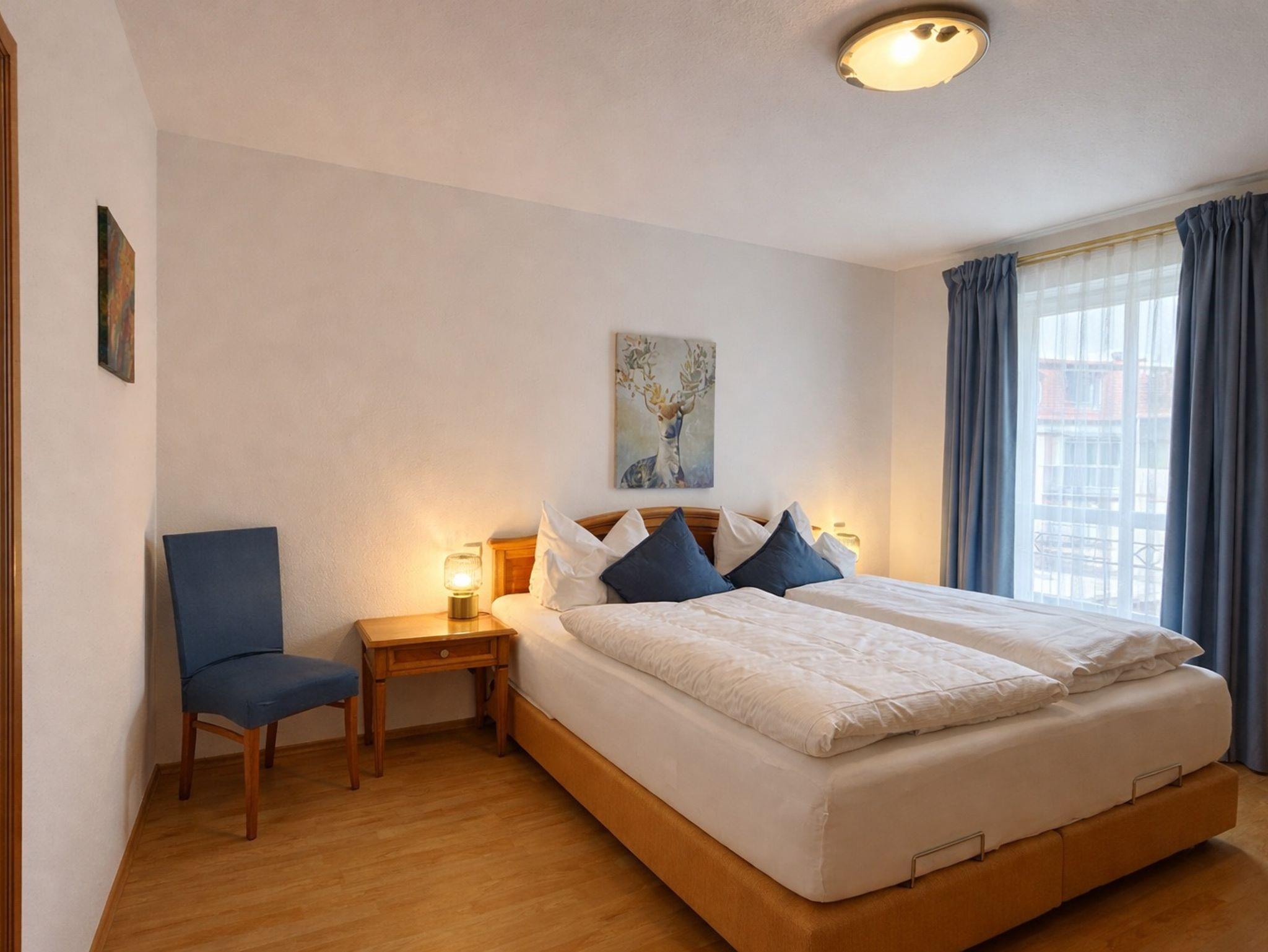 In absoluter Ruhe, aber dennoch nur wenige Schritte von der Fußgängerzone entfernt, genießen Sie in einem architektonisch anspruchsvollen Haus von Ihrem Balkon oder der Sonnenterrasse den Blick auf ein faszinierendes Bergpanorama. Die Apartments sind im klassisch-eleganten Stil eingerichtet und haben eine Größe zwischen 45 und 98 qm. Sie bieten bis zu vier Personen Platz und verfügen alle über getrennte Wohn- und Schlafräume, Bad und Balkon. Unser Haus ist mit Panoramaaufzug, Innenlift, Waschküche, Fahrradraum, sowie einer Tiefgarage ausgestattet. Außerdem verfügen wir über eine Lounge mit Getränkekühlschrank (Selbstbedienung). Hunde sind willkommen.
