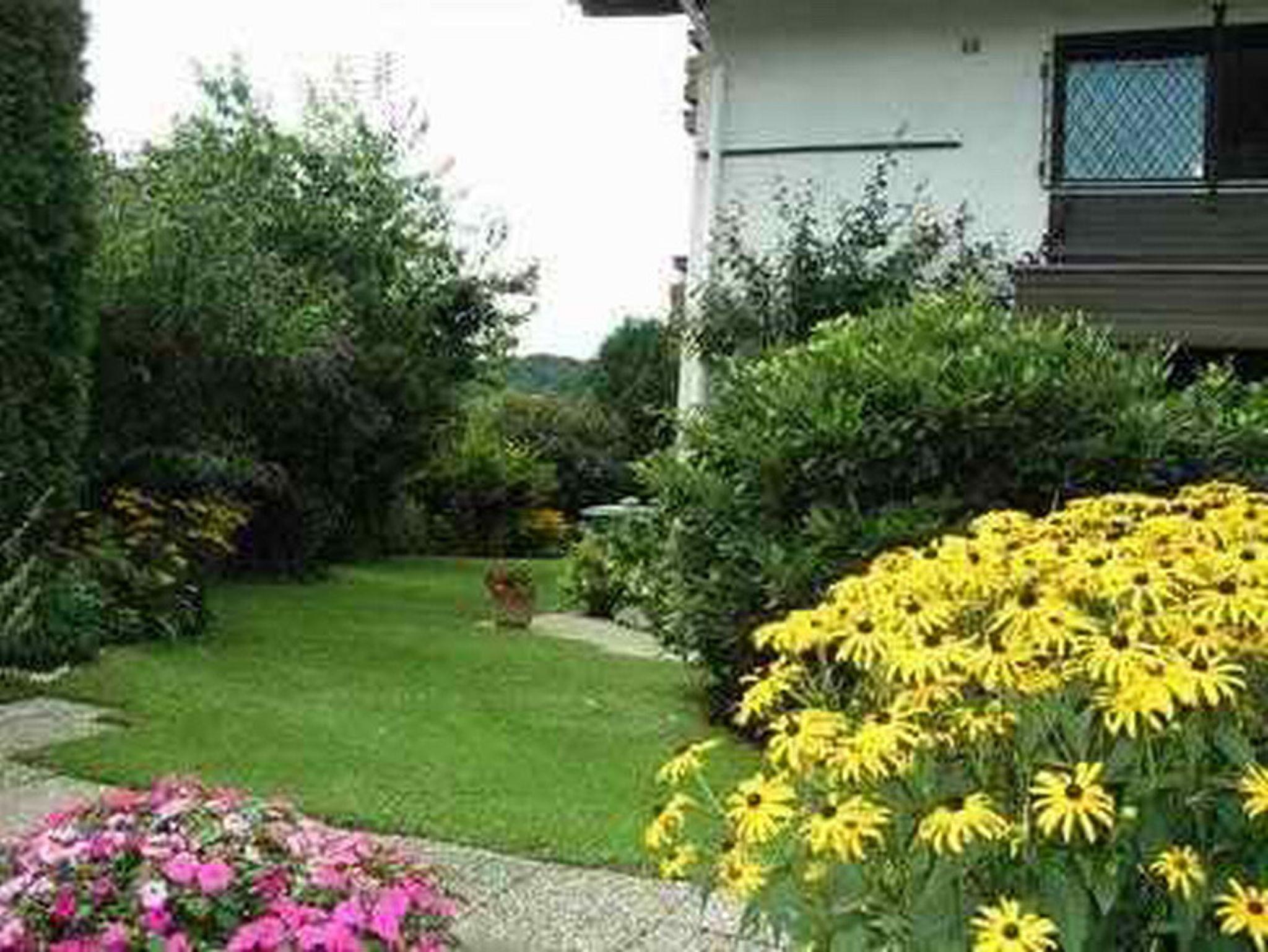 Ruhig, sonnig, herrlicher Bergblick, Garten, beste Ausstattung mit Parkett und überdachten Südbalkon. Großes Wohnzimmer (zusätzl. ausziehb. Doppelcouch), Schlafzimmer (extralange Betten, Sofa, Sekretär), voll eingerichtete Küche (Spülmaschine), Bad (Wanne, Du/WC), WC extra, kleine Diele.