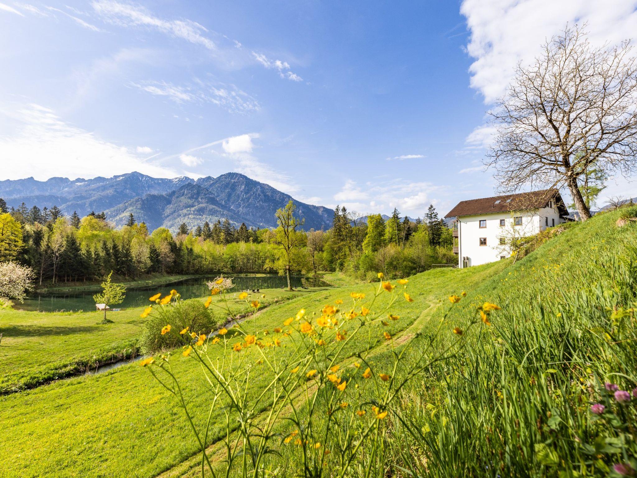 Der Gablerhof liegt außerhalb von Bad Reichenhall im sonnigen Ortsteil Nonn. Nah dran und doch ganz weit weg im Grünen mit eigenem Badesee. Unsere großzügigen, exklusiven Wohnungen mit lichtdurchflutetem, offenem Wohnraum und großen Panoramafenstern bieten einen unvergleichlichen Blick auf den Predigtstuhl. Das Thema Nachhaltigkeit, sowie generell das Thema Umwelt liegt uns sehr am Herzen. Eine große Photovoltaikanlage auf dem Dach liefert den Strom und unsere Hackschnitzelheizung aus dem eigenen Wald die Wärme. Mit unserer klimafreundlichen Grundwasserkühlung kann jedes Zimmer individuell gekühlt werden. Wir freuen uns, Sie im Gablerhof begrüßen zu dürfen!