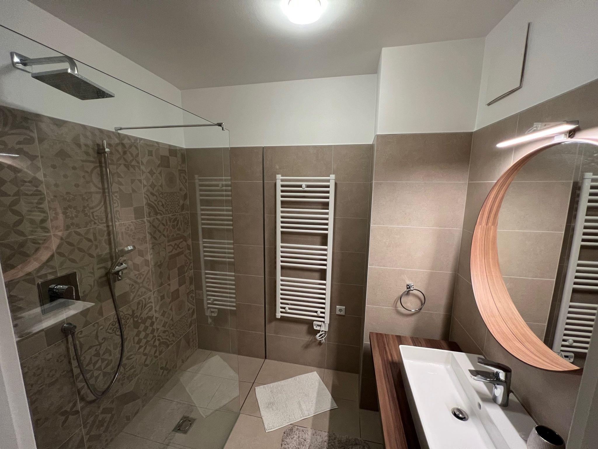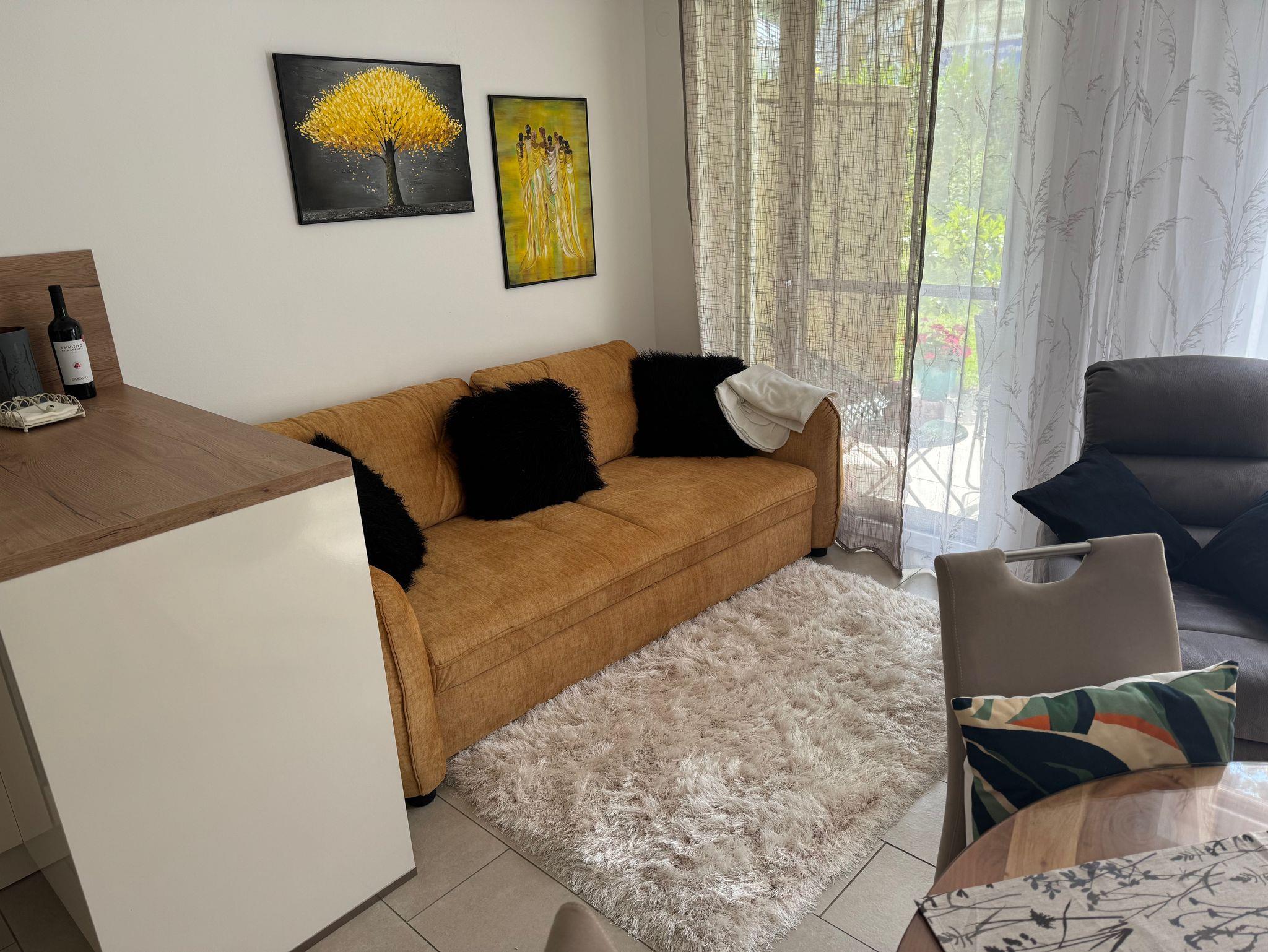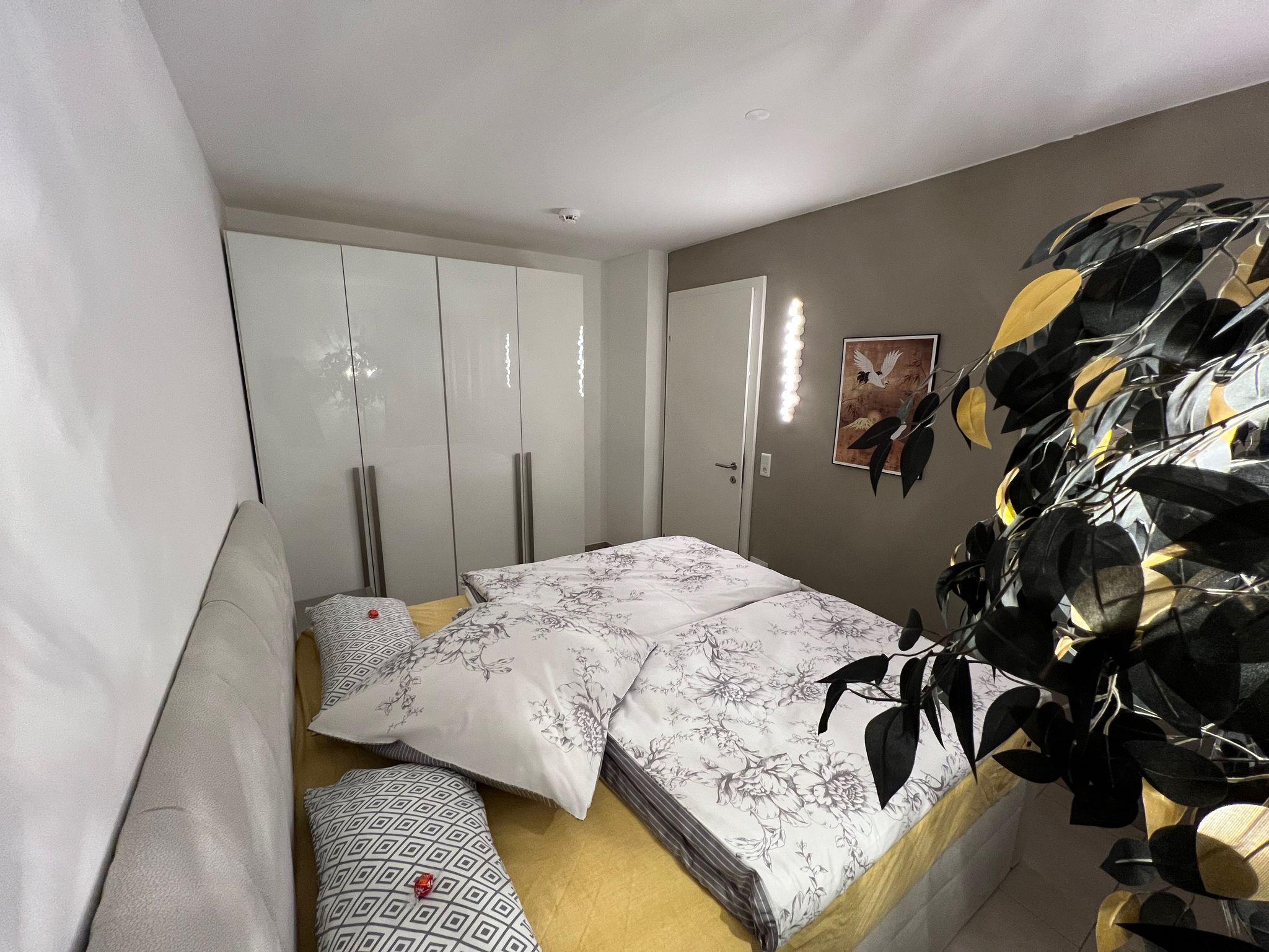 Unsere Ferienwohnung befindet sich in perfekter Lage in der Innenstadt und bietet Ihnen 55 qm Wohnfläche. Der offene Wohnbereich umfasst ein gemütliches Wohnzimmer sowie eine gut ausgestattete Küche mit einem Backofen, einer Geschirrspülmaschine, einen Kühlschrank, einer Kaffeemaschine, Wasserkocher und einer Mikrowelle. Das Badezimmer verfügt über eine ebenerdige Dusche mit Sitzmöglichkeit und es steht Ihnen außerdem ein Gäste-WC zur Verfügung. Für Ihren Komfort steht Ihnen ein Tiefgaragenstellplatz zur Verfügung, den Sie bequem mit dem Aufzug erreichen können. Für Ihre Fahrräder haben wir einen Fahrradschutz und ein Stahlseil damit sie an den Fahrradständer Ihre Fahrräder sicher verschließen können. Sollten Sie einmal keine Lust haben, das Frühstück selbst zuzubereiten, haben Sie die Möglichkeit, dieses gegen eine Gebühr im Hotel nebenan zu genießen. Wir würden uns freuen, Sie bei uns begrüßen zu dürfen.