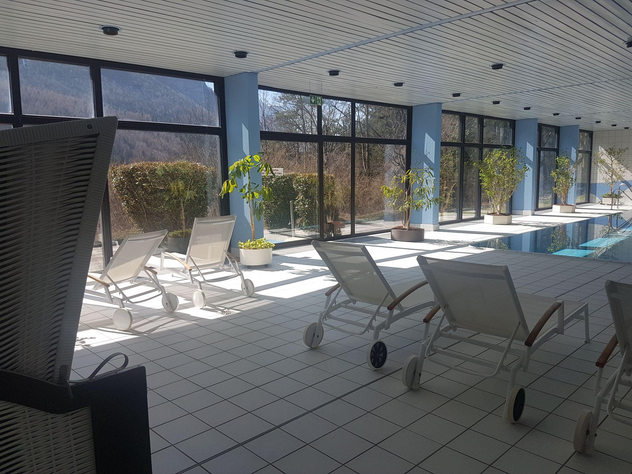 In wunderschöner Panoramalage direkt an der Predigtstuhlbahn in Bad Reichenhall ist das Jutta Deluxe Apartement in nur 5 Gehminuten vom Bahnhof (Kirchberg) erreichbar. Für Wanderbegeisterte Urlauber ist das Appartmenthaus am Schroffen, in dem sich das Jutta Deluxe Appartment befindet, perfekt gelegen. Das kostenlose Freibad am Thumsee ist nur 5 Autominuten entfernt. Ebenso ist der Panorama-Pool im Appartmenthaus mit knapp 30 Grad Wassertemperatur eine tolle Möglichkeit zum Entspannen. Eine Tischtennisplatte und Fitnessgeräte laden dazu ein, für sein Wohlbefinden noch mehr zu tun. Ein kleiner Spielplatz findet sich im Innenhof des Appartmenthauses. Parkplätze finden Sie ebenso kostenlos direkt am Appartmenthaus. Auf Anfrage ist auch ein Parkplatz in der Tiefgarage reservierbar.