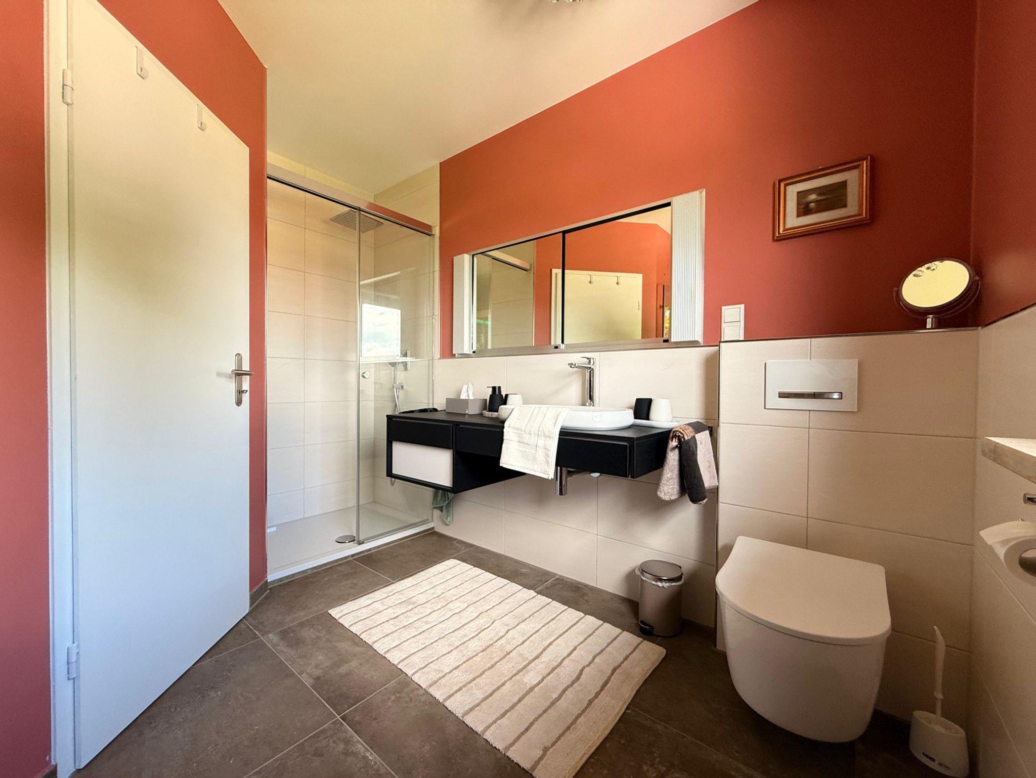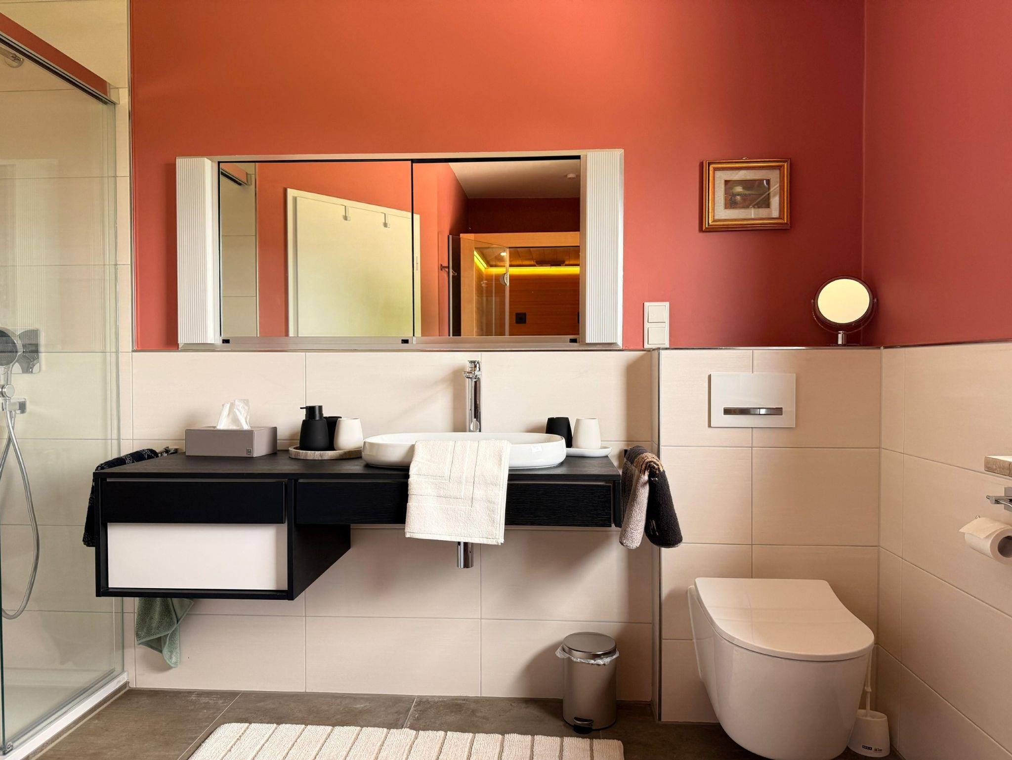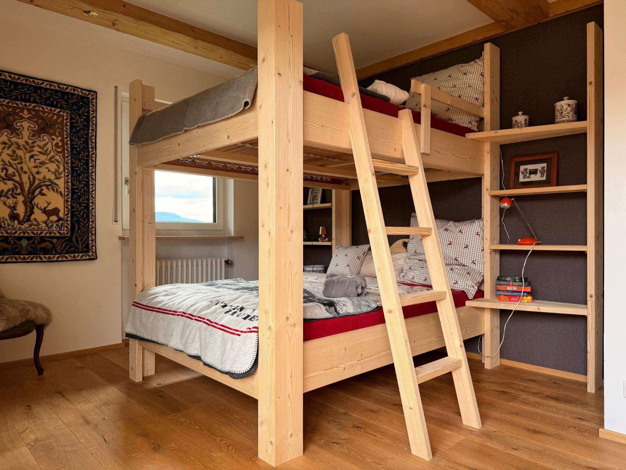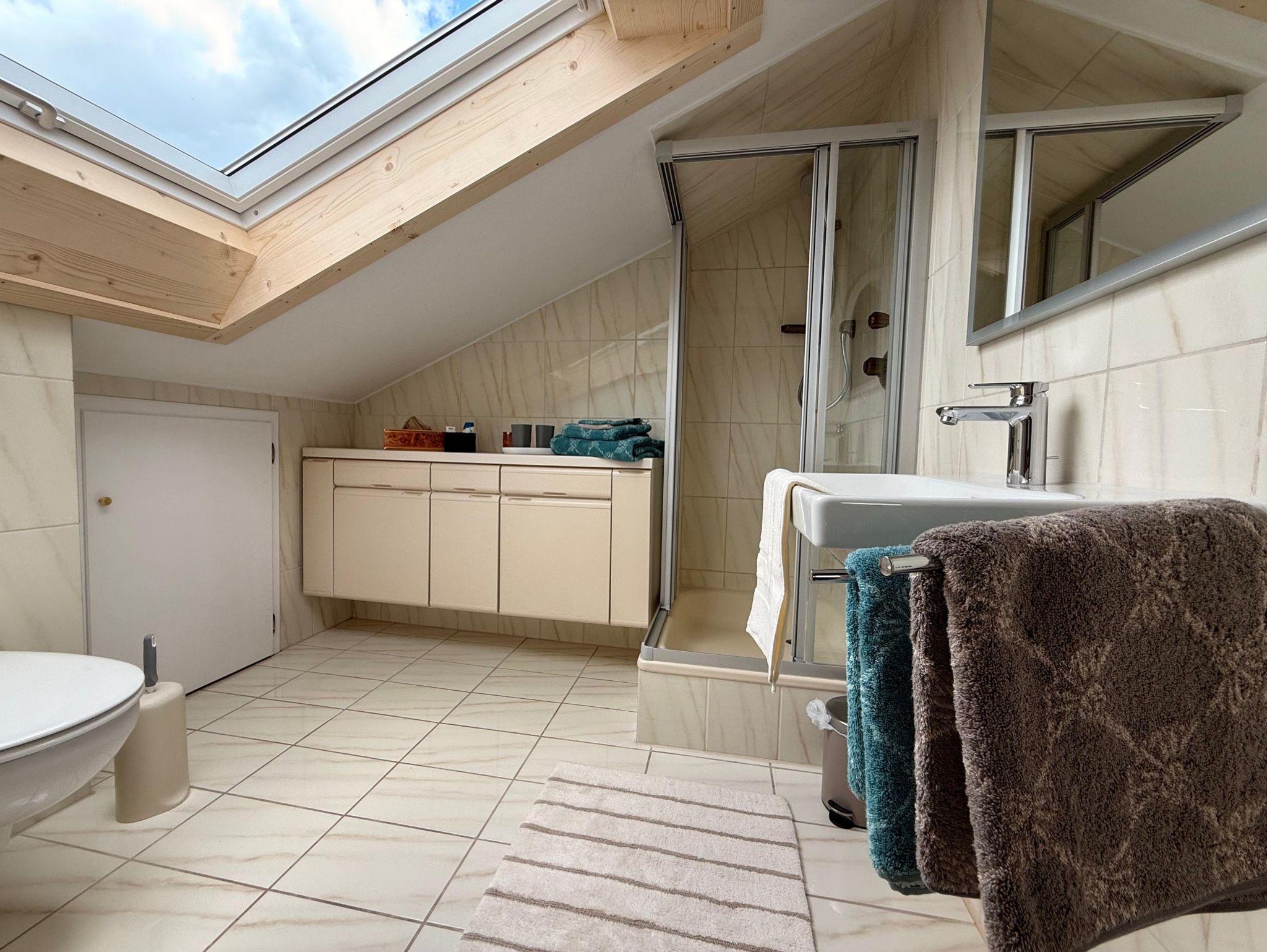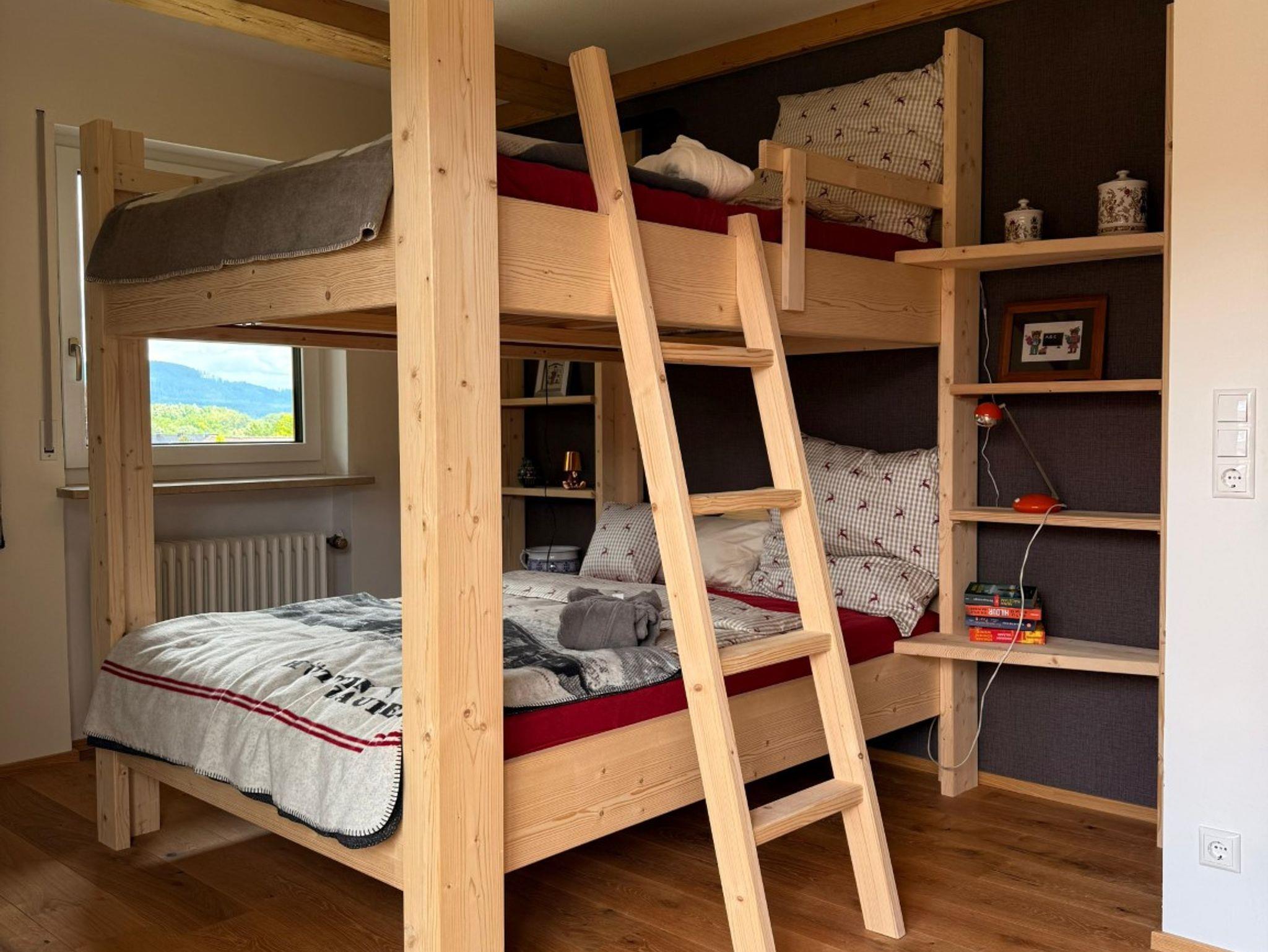 Willkommen in unserem charmanten und komplett renovierten Ferienhaus! Der Eingangsbereich heißt Sie mit einer praktischen Garderobe willkommen, die Ihnen ausreichend Platz für Ihre Jacken und Schuhe bietet. Die moderne Küche ist mit allem ausgestattet, was Sie sich wünschen können, und verfügt über hochwertige Miele Küchengeräte, die das Kochen zum Vergnügen machen. Direkt neben der Küche befindet sich der einladende Essbereich, ideal für gesellige Mahlzeiten mit Familie und Freunden. Das Wohnzimmer ist ein gemütlicher Rückzugsort, ausgestattet mit einer bequemen Couch und einem Kamin, der für eine warme Atmosphäre sorgt. Von hier aus haben Sie Zugang zur Terrasse, wo Sie die frische Luft und die Natur genießen können. In der ersten Etage erwarten Sie drei individuell eingerichtete Schlafzimmer. Das erste Schlafzimmer ist mit einem komfortablen Doppelbett und einem Schrank ausgestattet. Das zweite Schlafzimmer, liebevoll als Affenschlafzimmer bezeichnet, bietet ebenfalls ein Doppelbett und eine grüne Erdmatratze, die für einen erholsamen Schlaf sorgt. Das dritte Schlafzimmer verfügt über ein massives Etagenbett (1,40 x 2,00 Meter). Alle Schlafzimmer sind mit einem Balkon ausgestattet, auf dem Sie die Aussicht genießen können. Das Badezimmer in der ersten Etage ist mit einer Dusche und einer Infrarotkabine ausgestattet, die für Entspannung und Wohlbefinden sorgt. Im Dachgeschoss finden Sie ein zusätzliches Schlafzimmer mit einem Bett (0,90 x 2,00 Meter) zum Relaxen sowie ein weiteres Badezimmer mit einer Dusche. Benötigen Sie einen ersten Einkauf bevor Sie anreisen oder Brötchenservice, sagen Sie uns einfach Bescheid. Wir freuen uns darauf, Sie in unserem Ferienhaus willkommen zu heißen und Ihnen einen unvergesslichen Aufenthalt zu bieten!