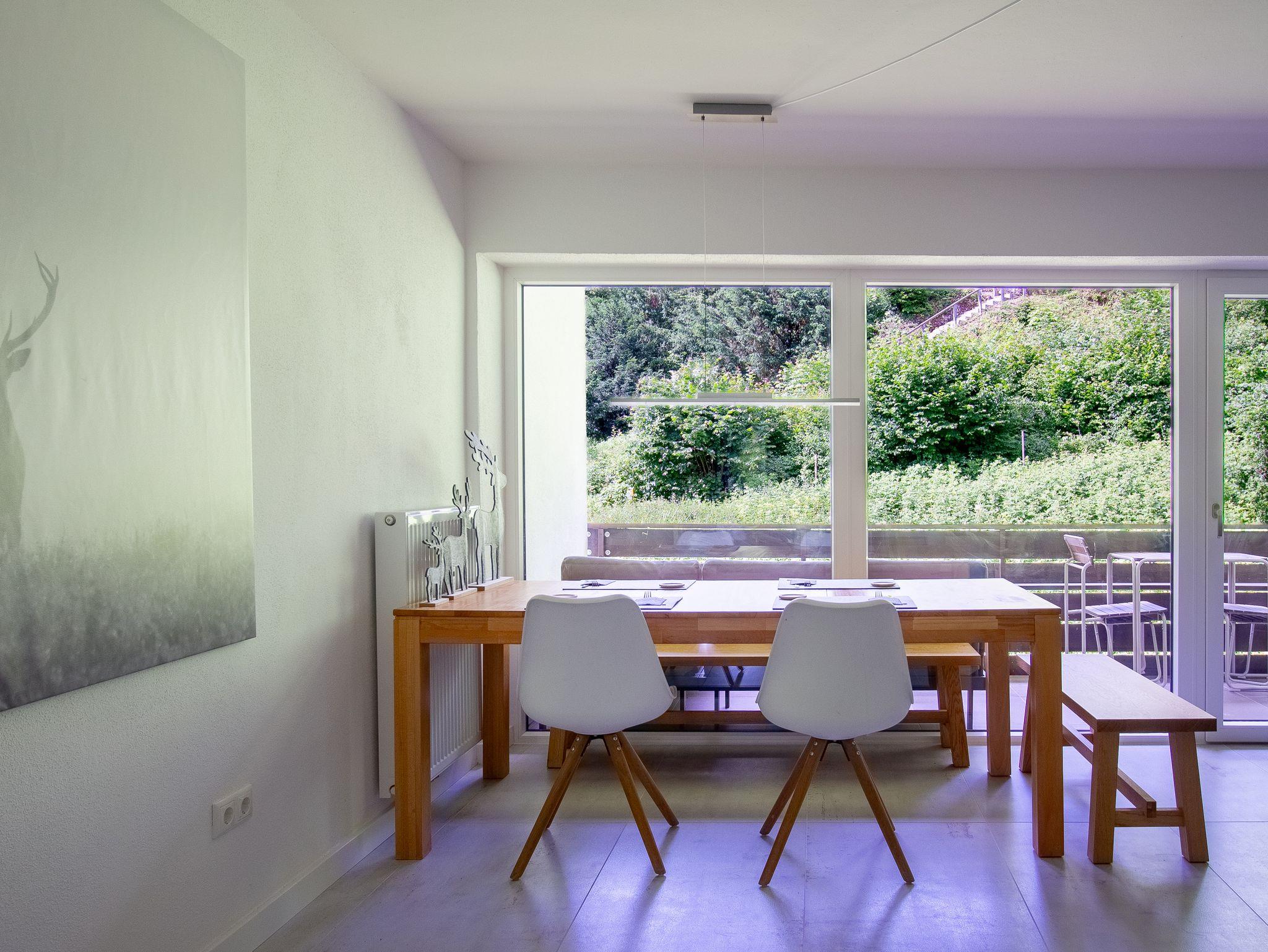 Willkommen in dieser geräumigen 70m² Ferienwohnung, die Platz für eine vierköpfige Familie bietet oder auch ideal ist, um alleine zu arbeiten und zu wohnen. Das Schlafzimmer verfügt über ein Doppelbett und ein Etagen-Wandbett, beide mit hochwertigen Matratzen, Kissen und Decken ausgestattet. Die Wohnung wurde im Jahr 2024 komplett renoviert und neu eingerichtet, mit modernen Annehmlichkeiten wie Induktionsherd, Geschirrspüler, Waschmaschine, Trockner, Kühlschrank, Gefrierschrank, Boxspring-Bett und Sofa. Hier können Sie Arbeit und Urlaub kombinieren und eine längere Auszeit genießen. Der Arbeitsplatz in der Ferienwohnung ist optimal ausgestattet mit einem elektrisch höhenverstellbaren Tisch, Stehhocker, großem ultra-wide Monitor, Webcam, Tastatur und Maus - schließen Sie einfach Ihren Laptop an und arbeiten Sie komfortabel und produktiv, um sich dann einen frühen Feierabend in den Alpen zu gönnen. Willkommen in Ihrem perfekten Rückzugsort für Arbeit und Entspannung!