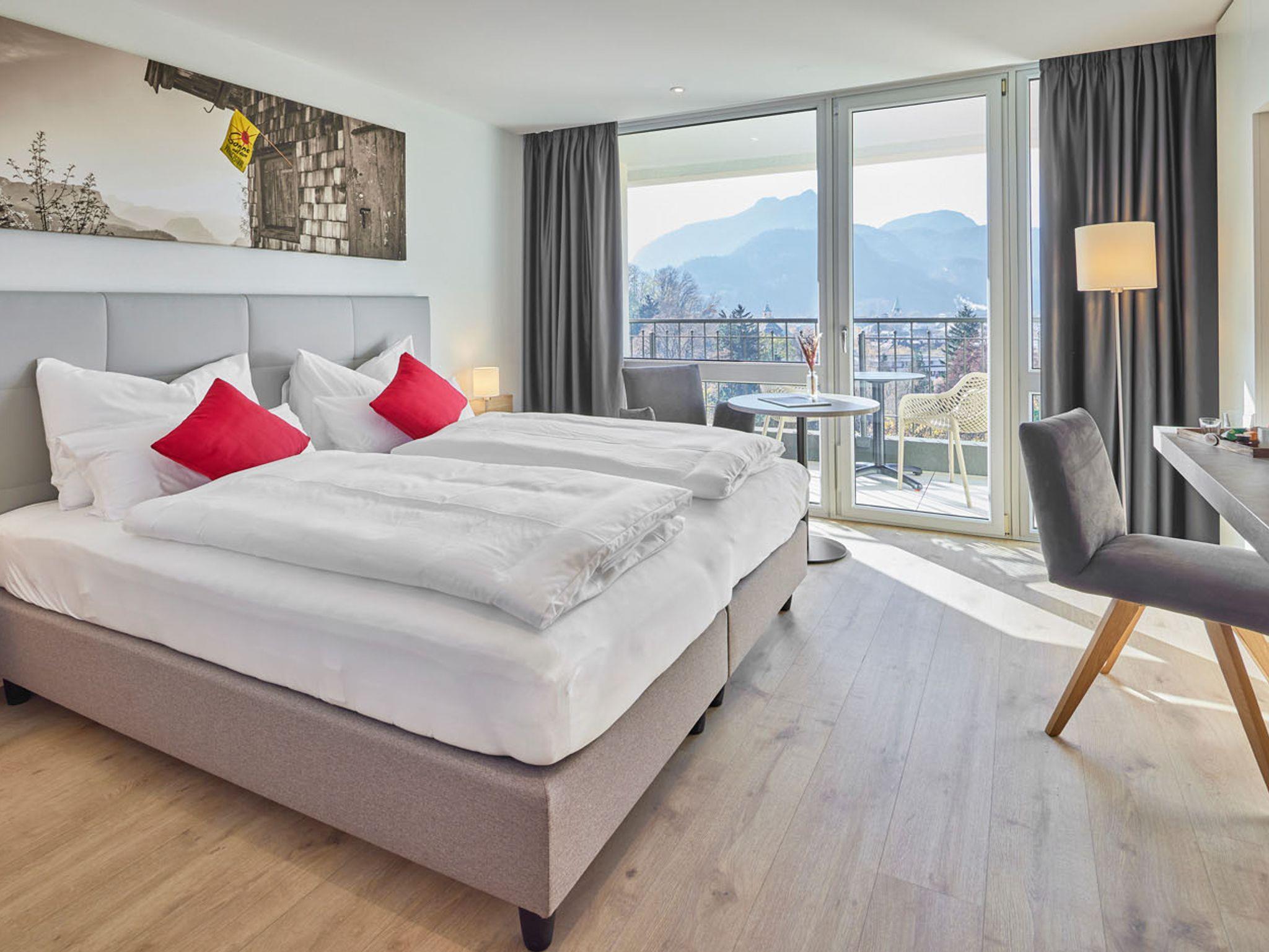 Kategorie Medium, Größe: ca. 22 m², Wohn- und Schlafbereich mit Doppelbett, Kochnische. Badezimmer mit Dusche, Balkon mit Alpen-, Garten- oder Stadtblick. Unsere Apartments sind alle mit Heiz-und Kühlanlage, WIFI, Smart TV, 17 Zoll Zimmersafe, leistungsstarker Haartrockner und Segafredo Kaffeemaschine ausgestattet.Toaster, Wasserkocher, Wäscheständer, Bügelbrett und Bügeleisen werden nur auf Nachfrage ausgehändigt. Waschmaschine und Trockner stehen Ihnen in der 1 und 2 Etage gegen Gebühr zur Verfügung.