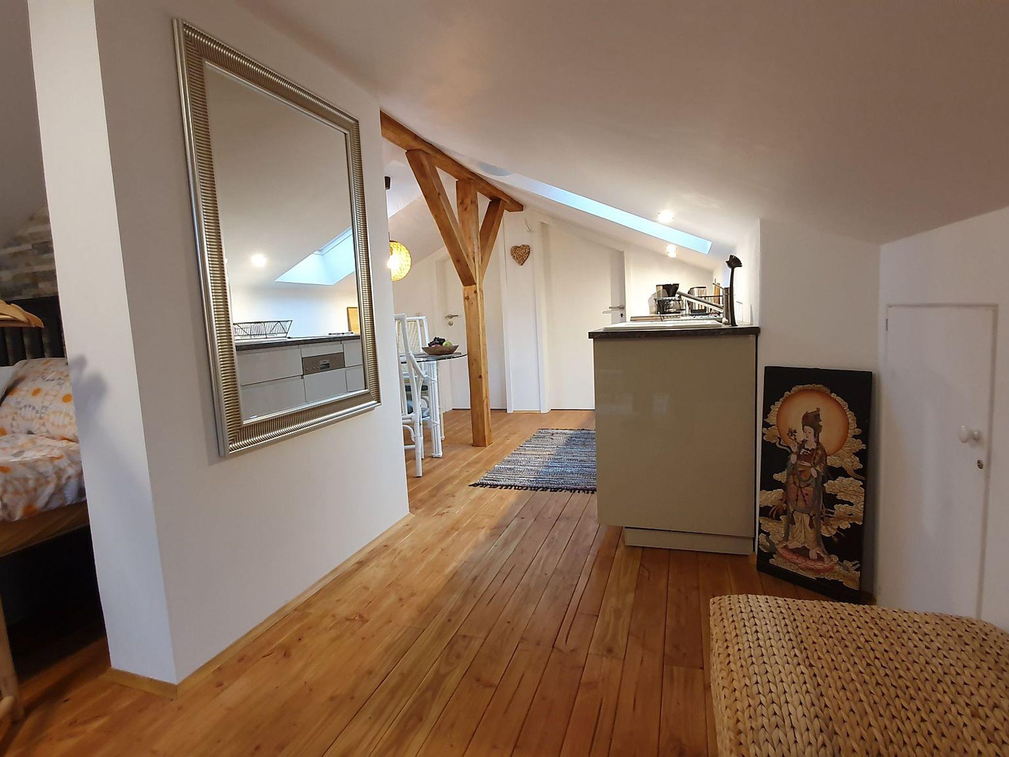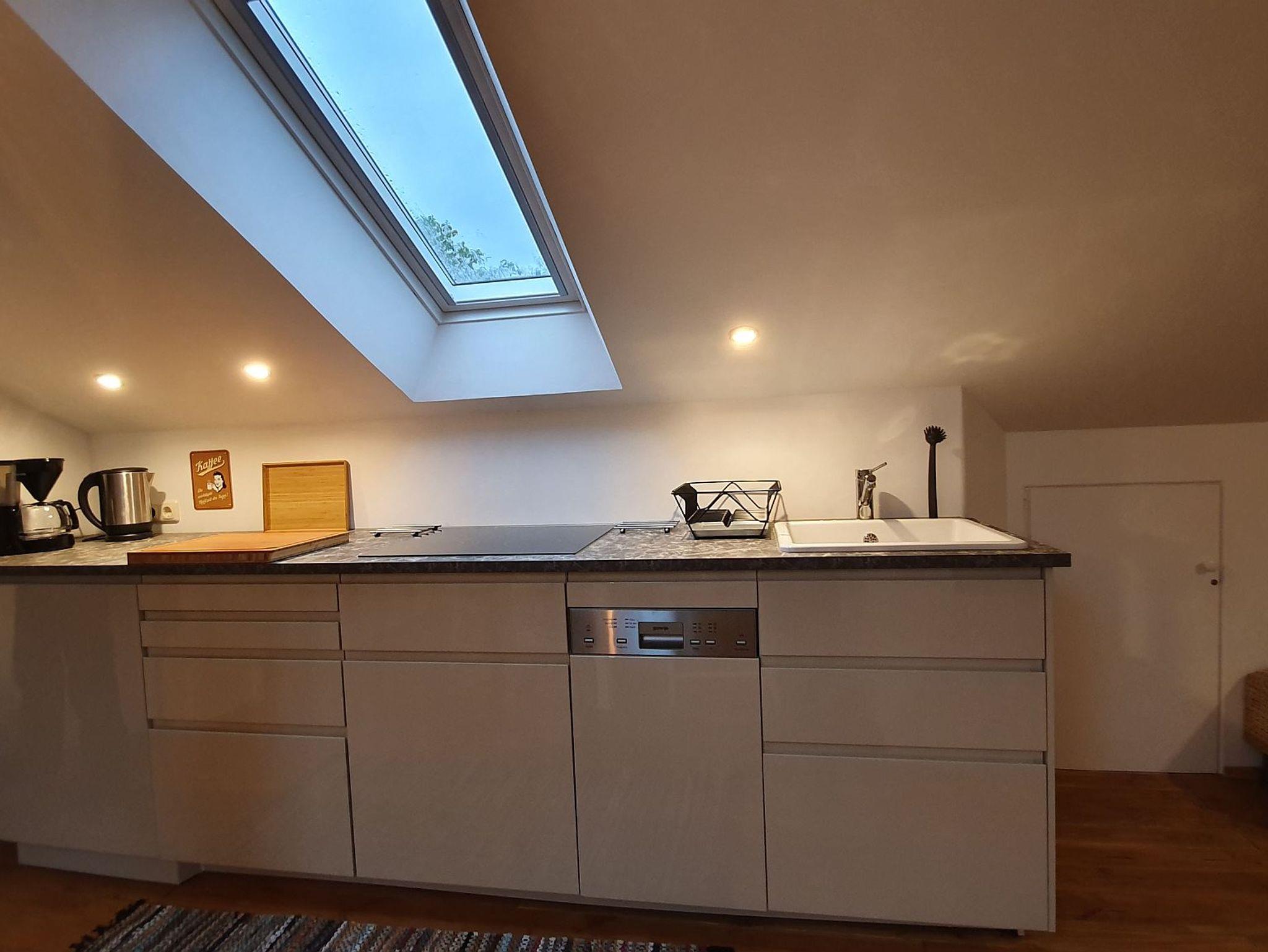Die neue, helle und geschmackvoll eingerichtete Mansardenferienwohnung liegt sehr ruhig im 2. Stock im Dachgeschoss.