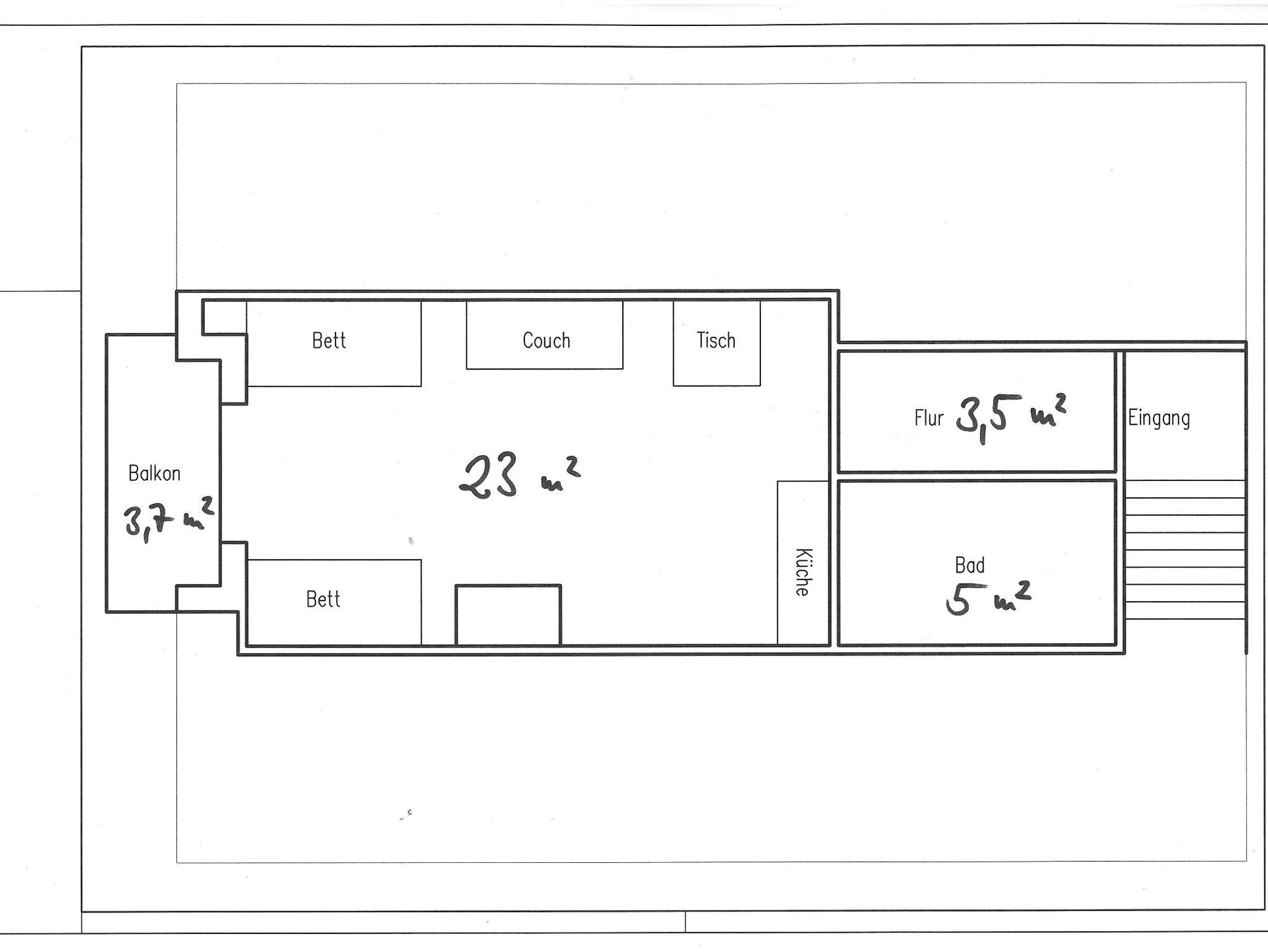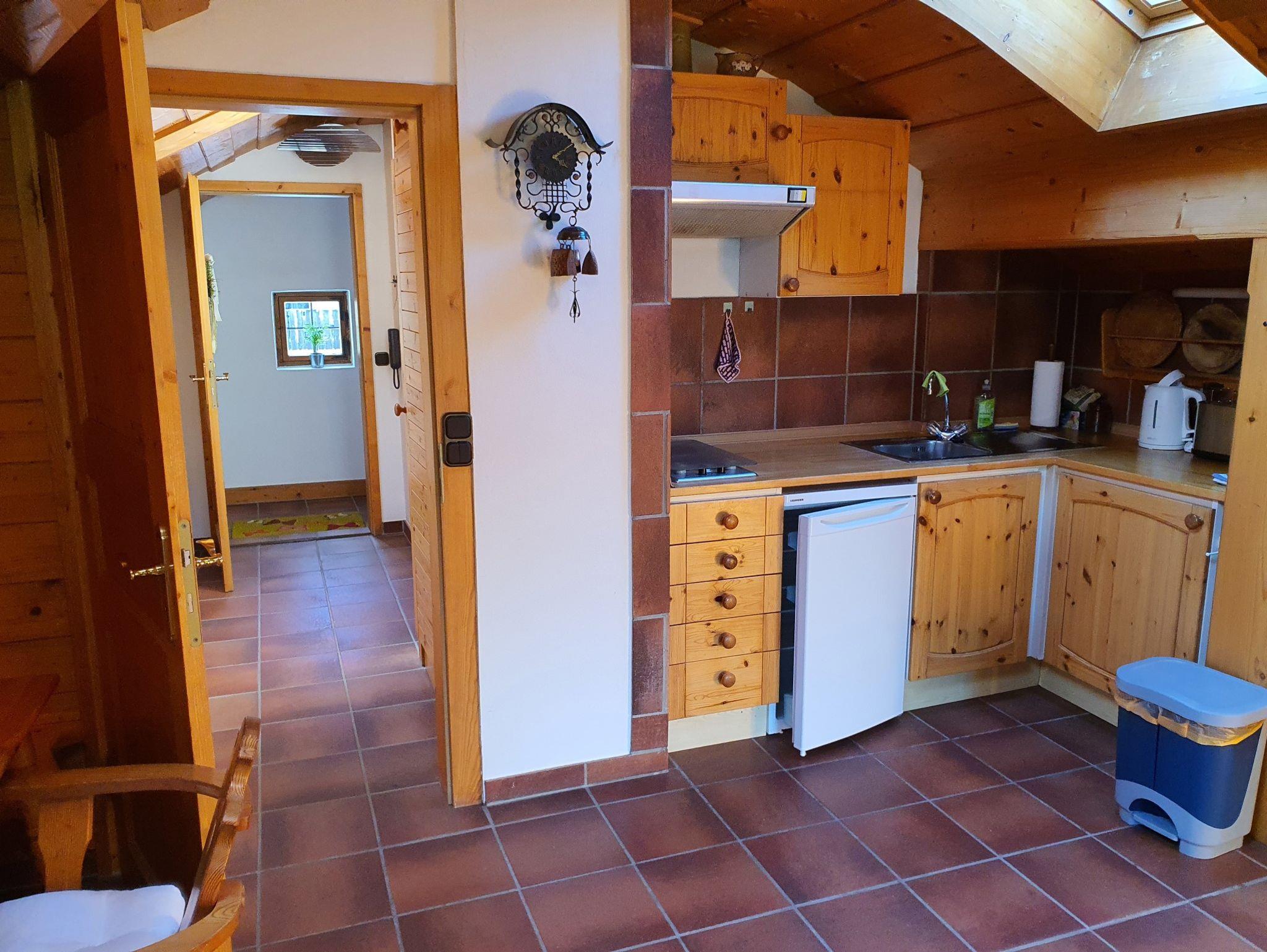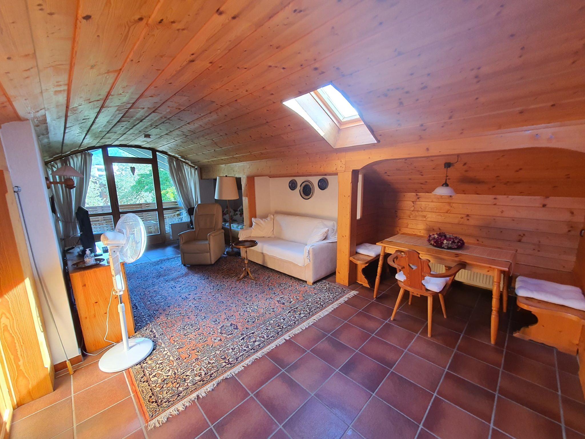 Unglaublich zentral und doch ruhig in der Kurzone 1 liegt unsere Ferienwohnung im ausgebauten Dachgeschoss eines Zweifamilienhauses. Der Wohn- und Schlafraum ist komplett mit Holz vertäfelt, das mit biologischer Holzfarbe gestrichen wurde. Auf dem Terracottafußboden liegt ein weicher geknüpfter Teppich. Links neben der Türe befindet sich die komplett ausgestattete Küche, auf die das Licht durch ein Dachfenster fällt. Der Kühlschrank, ein Herd mit zwei Platten, ein Toaster und eine Kaffeemaschine sind sofort einsatzbereit. Gegenüber findet sich ein gemütlicher Esstisch mit Sessel, der dazu einlädt, das zubereitete Essen in schöner Atmosphäre zu genießen. Im Zentrum des Wohn-Schlafraumes finden sich eine Couch und ein Couchsessel, auf denen sich der Tag gemütlich ausklingen lässt. Ein Fernseher mit Kabelanschluss steht für Sie dort bereit!