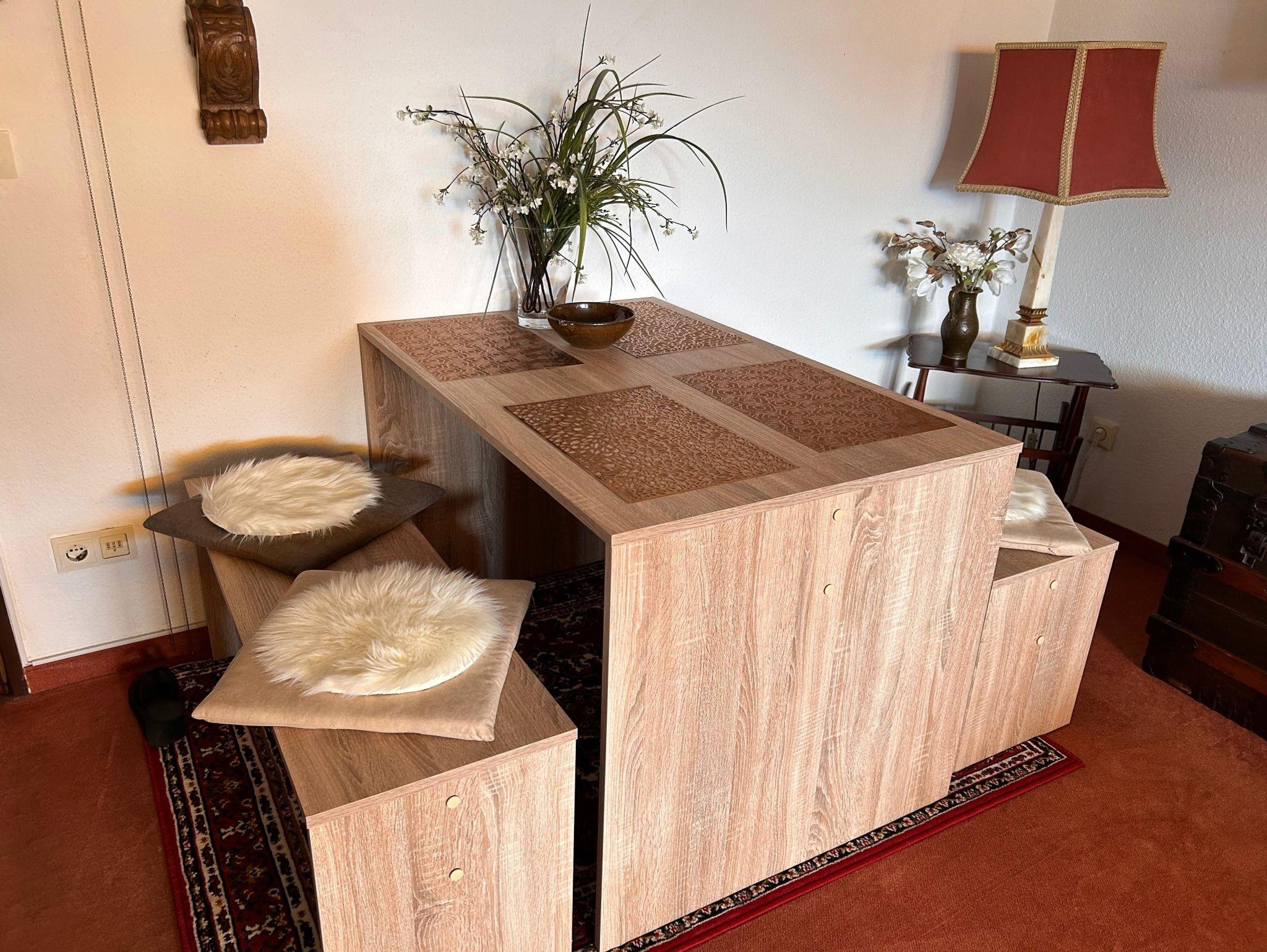 Diese einladende Unterkunft bietet alles, was Sie für einen entspannten Aufenthalt benötigen. Im Wohnzimmer finden Sie ein komfortables Schlafsofa, einen Essbereich für gesellige Mahlzeiten, einen Fernseher für entspannte Abende und eine Leseecke, die zum Verweilen einlädt. Das Schlafzimmer ist mit einem großen Doppelbett ausgestattet, das für erholsame Nächte sorgt. Zwei geräumige Schränke bieten ausreichend Stauraum für Ihr Gepäck, und auch hier steht ein Fernseher für Ihre Unterhaltung bereit. In der Küche können Sie Ihre Kochkünste entfalten. Sie ist mit einer Spülmaschine, einem Wasserkocher, einem Toaster, einem Backofen und sämtlichen Küchenutensilien ausgestattet, die Sie benötigen, um köstliche Mahlzeiten zuzubereiten. Das Bad verfügt über eine Dusche und eine Badewanne, ideal für entspannende Momente. Ein Föhn und eine Halterung für die Toilette sind ebenfalls vorhanden. Genießen Sie den Balkon mit Markise und atemberaubendem Bergblick, der perfekt ist, um den Abend ausklingen zu lassen und die frische Luft zu genießen. Zusätzlich steht Ihnen eine Tiefgarage im Haus zur Verfügung, die eine Einfahrthöhe von 2 Metern hat. Wir bitten Sie, den Rechnungsbetrag bis zu einer Woche vor Ihrer Anreise zu überweisen, gerne auch per Paypal. Wir freuen uns darauf, Sie in unserer Ferienwohnung willkommen zu heißen!