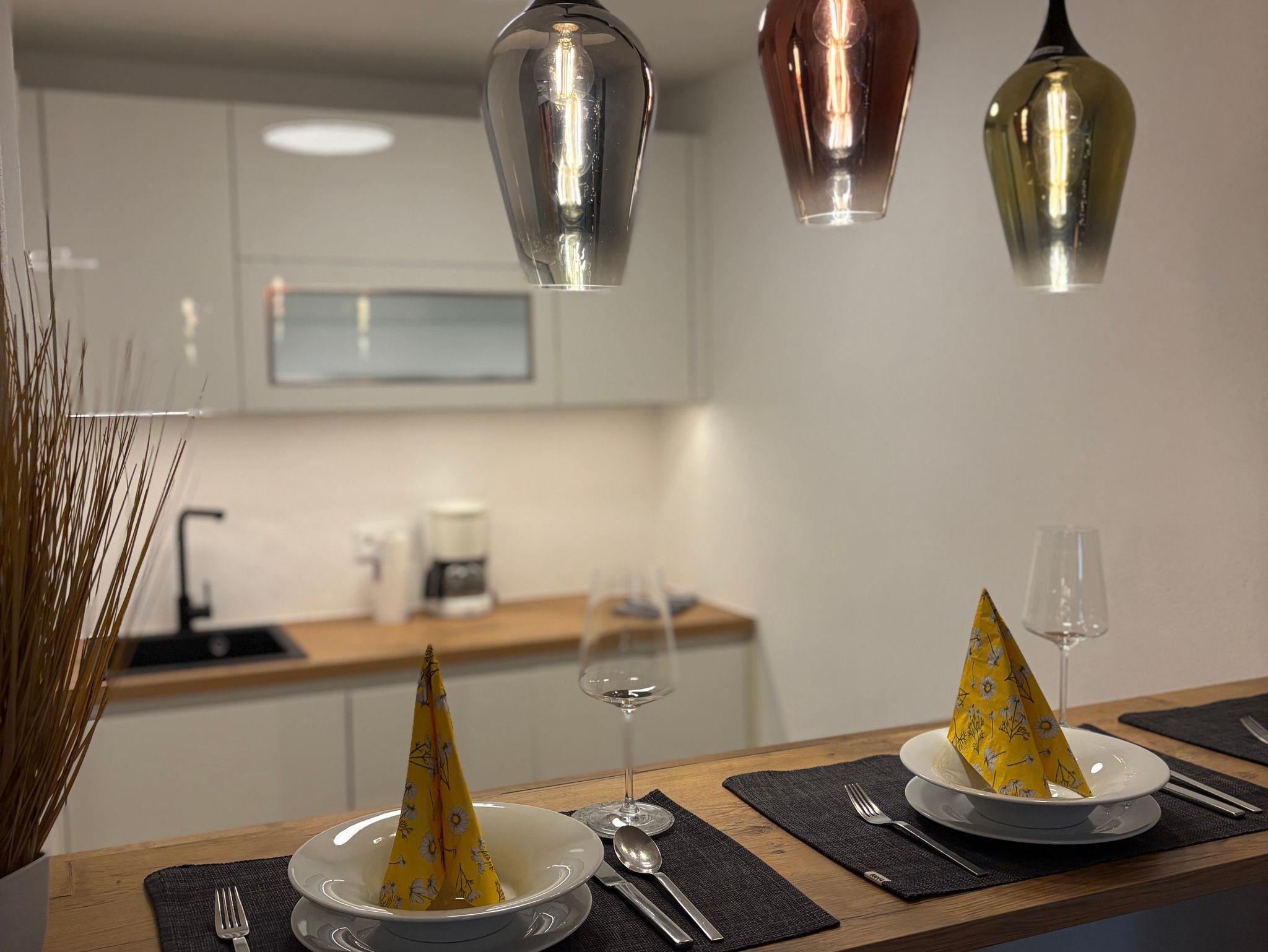 Die offene Küche ist vollständig ausgestattet und ideal, um sich auch im Urlaub bequem selbst zu versorgen.
