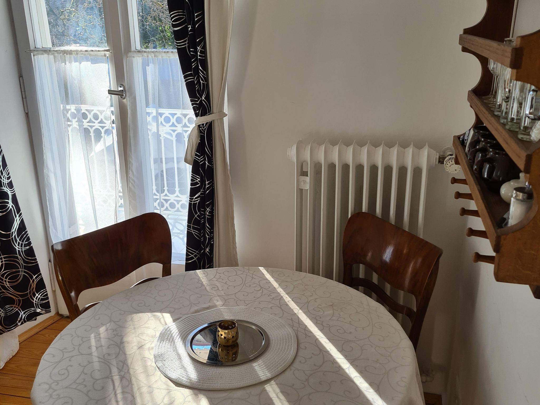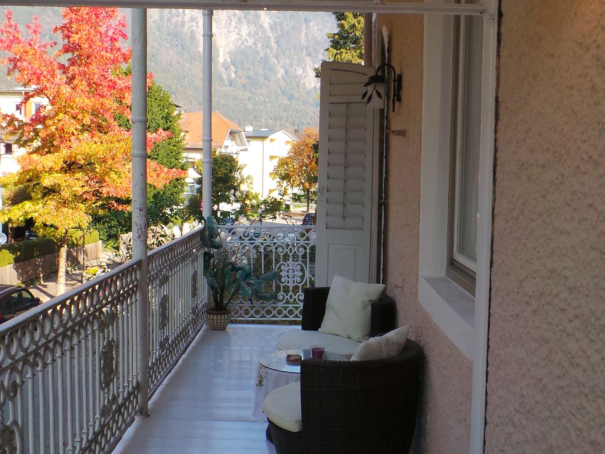 Die charmante Wohnung im 1.OG ist über eine schöne Holztreppe mit Fenster im Treppen-Zwischenpodest in der Villa Bariole bestens erreichbar. Sie ist für max. 3 Personen (evtl. in Ausnahmefällen zusätzlich 1 Kind oder Jugendlicher) geeignet. Die Ferienwohnung - TOP 3 (47 qm) mit Westbalkon (Nachmittagssonne), ist als Nichtraucherwohnung hell, freundlich und liebevoll gestaltet, verfügt über ein Wohn/Schlafzimmer mit Einzelbett, Esstisch und kl. Glastisch für Kaffee u. Teezubereitung sowie Geschirr- und Kleiderkasten. Dem Bett zugehörig ist eine Ausziehlade mit Matratze (Reservebett), das einer weiteren Person (Kind oder Jugendlicher) eine zusätzliche Schlafmöglichkeit bieten kann. Dies ist nur in Absprache mit dem Gastgeber möglich! Weiters verfügt die Wohnung über ein nord-westlich ausgerichtetes Schlafzimmer mit Doppelbett, sowie über eine innerhalb der Wohnung befindlichen kleinen Diele mit Miniküche. Beide Zimmer bieten Balkonzugang, Dusche/WC, Flachbild-TV mit Sat-Empfang, Internet/WLAN Anschluss, Radio, Wandgarderobe, sowie ein vielfältiges Beleuchtungskonzept zum Wohlfühlen. Die Wohnung samt Balkon (mit Lounge-Sitzgruppe) liegt straßenseitig mit schönem Baumbestand, lädt zum Verweilen ein und gewährt einen wundervollen Ausblick auf die Berge. Auf Grund des Nachtfahrverbotes für alle motorisierten Fahrzeuge, ist eine dementsprechende Nachtruhe gegeben.