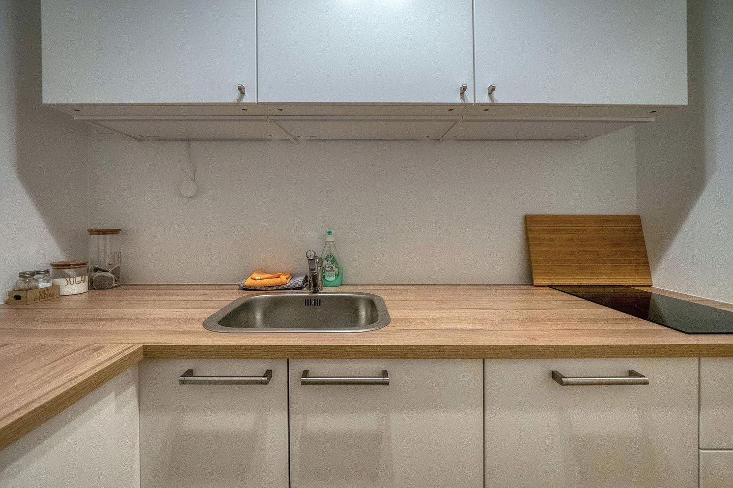 Die separate, voll ausgestattete Küche ermöglicht eine unkomplizierte Selbstversorgung – perfekt für kurze Aufenthalte, spontane Reisen oder Workation. Das Badezimmer mit Badewanne, Duschmöglichkeit und Föhn bietet zusätzlichen Komfort und Entspannung.