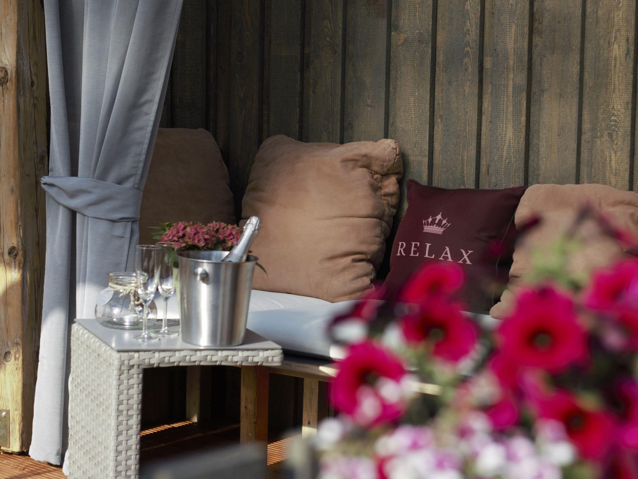 Starten Sie Ihren Tag mit einem gemütlichen Frühstück bei Sonnenaufgang, während Sie die frische Luft und die ersten Sonnenstrahlen genießen. Abends lädt die Terrasse zu einem entspannten Abendbrot ein und bei Sonnenuntergang kann man den Tag in einer entspannten Atmosphäre ausklingen zu lassen.