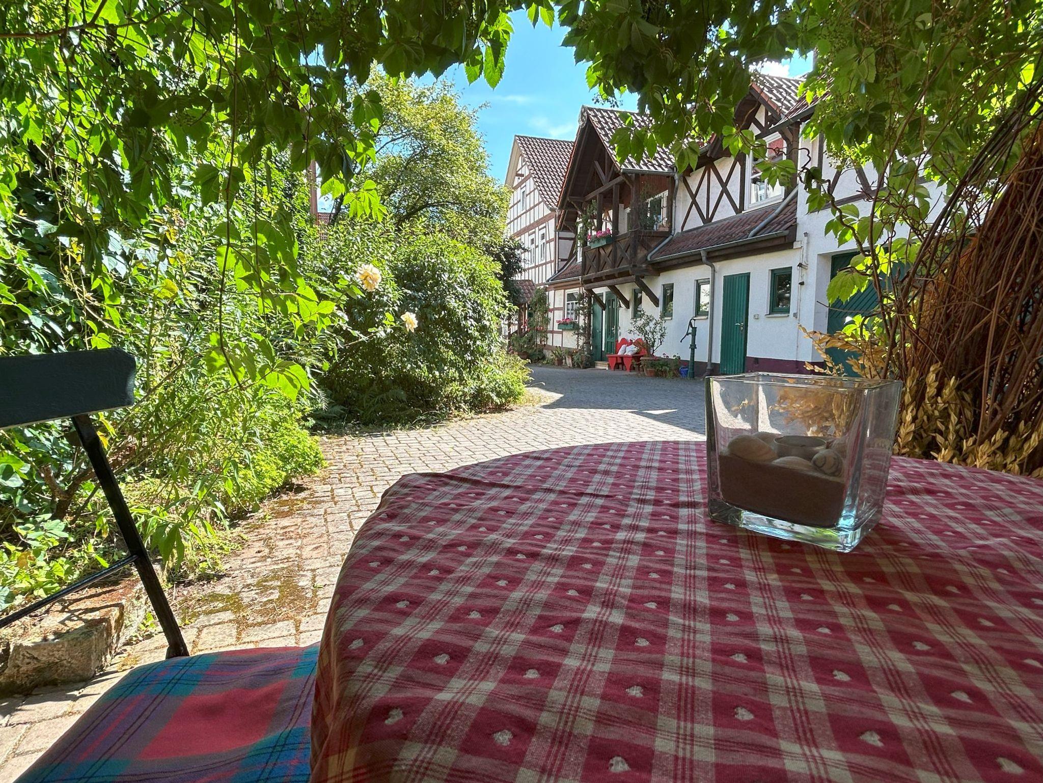 Ferienwohnung Wohnen und Kunst, Erdgeschoßwohnung im Fachwerkhaus mit Freisitz für 4 Personen