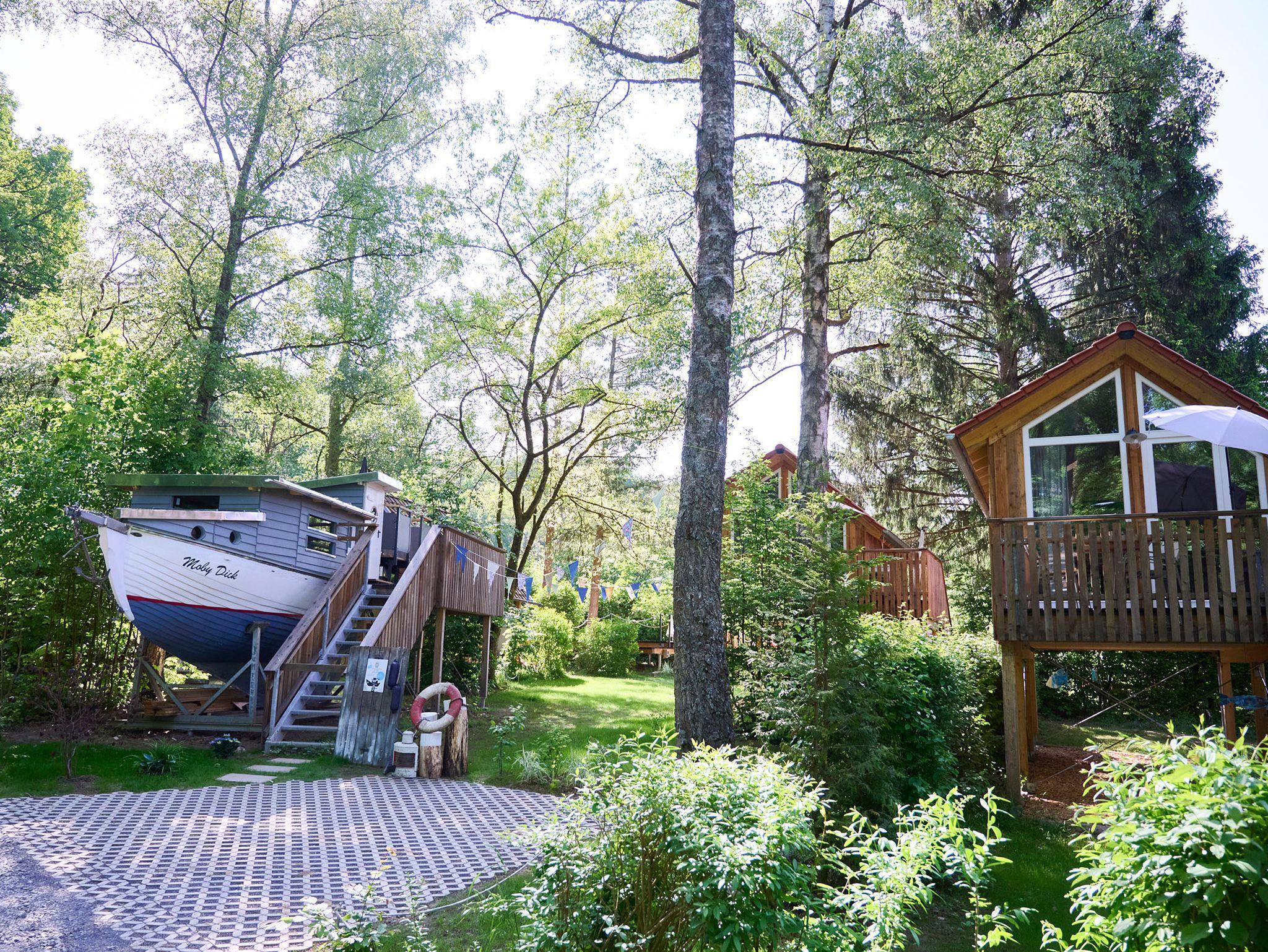 Idyllisch gelegen direkt am Waldbad in Bad Rodach (Eintritt inklusive) ist das Baumschiffhotel eine einzigartige Kombination aus Naturerlebnis und schönem Wohnen. Übernachten Sie außergewöhnlich in unserem Baumschiff Nautilus, in Stelzenhäusern oder einem Safari-Zelt. Jede Einheit hat ein eigenes kleines Bad. Frühstückskorb möglich.