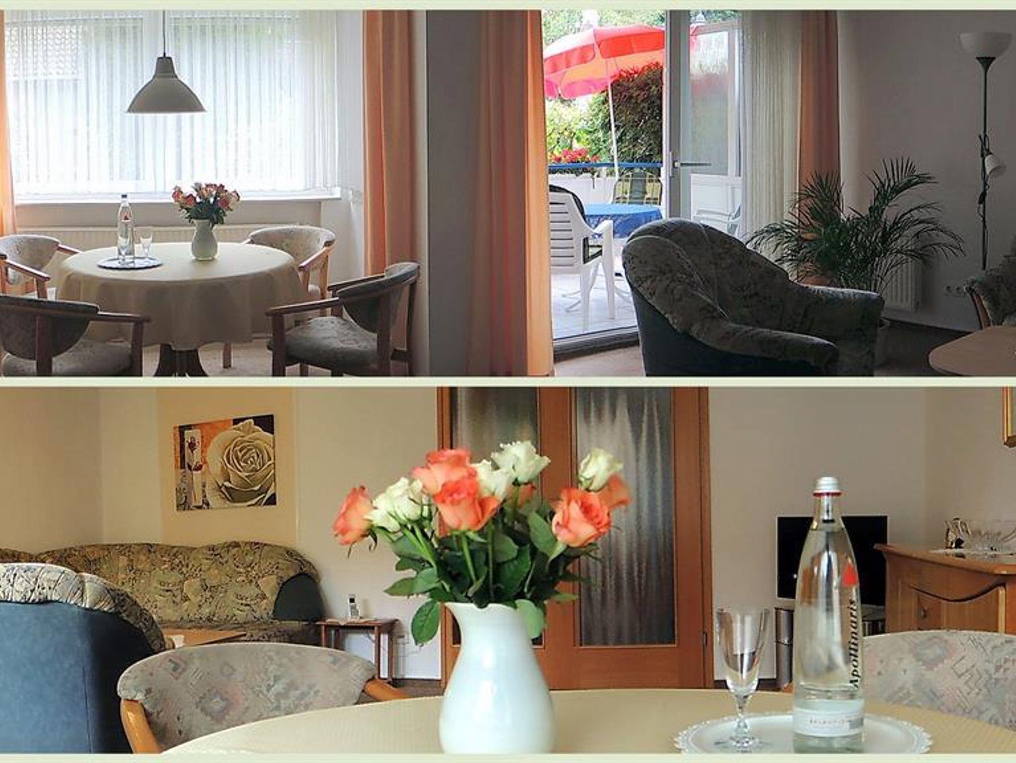 2-Zimmer-Wohnung ( 56 qm) für im Erdgeschoss, ohne Stufen erreichbar: Behindertenfreundlich, Rollstuhlbreite Türen, Wohnzimmer mit gemütlicher Sitzecke (Doppelschlafcouch, hier können auf Anfrage bis zu zwei weitere Personen schlafen), Kabel-TV, Essecke, Balkon; Küche separat mit 4-Plattenherd, Backofen, Kühl- Gefrierschrank; Badezimmer mit ebenerdiger Dusche / Wanne / WC und Fußbodenheizung; Schlafzimmer mit Doppelbett.
