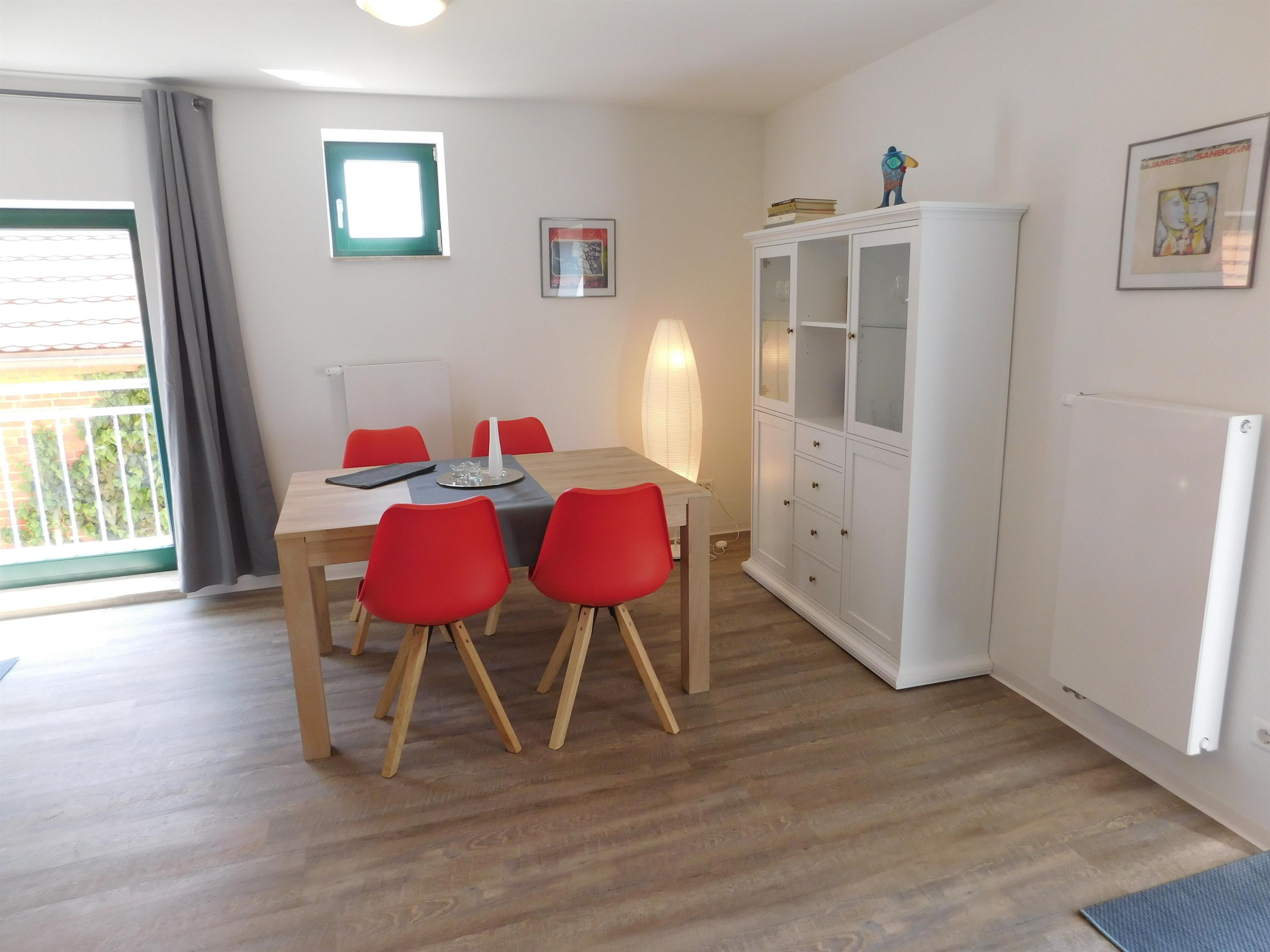 Aufbettungen für Kinder sind möglich. Beide Ferienhäuser sind nahezu identisch eingerichtet und Nichtraucher-Wohnbereiche. Im Erdgeschoss befindet sich eine Wohnküche mit gemütlicher Sitzecke, einem Ess- oder Arbeitstisch und dem Küchenbereich. Von hier aus haben Sie Zugang zu einer ca. 12 qm großen Terrasse, die durch die Lage der Gebäude einen interessanten Blick auf das Kleinstadtflair erlaubt.