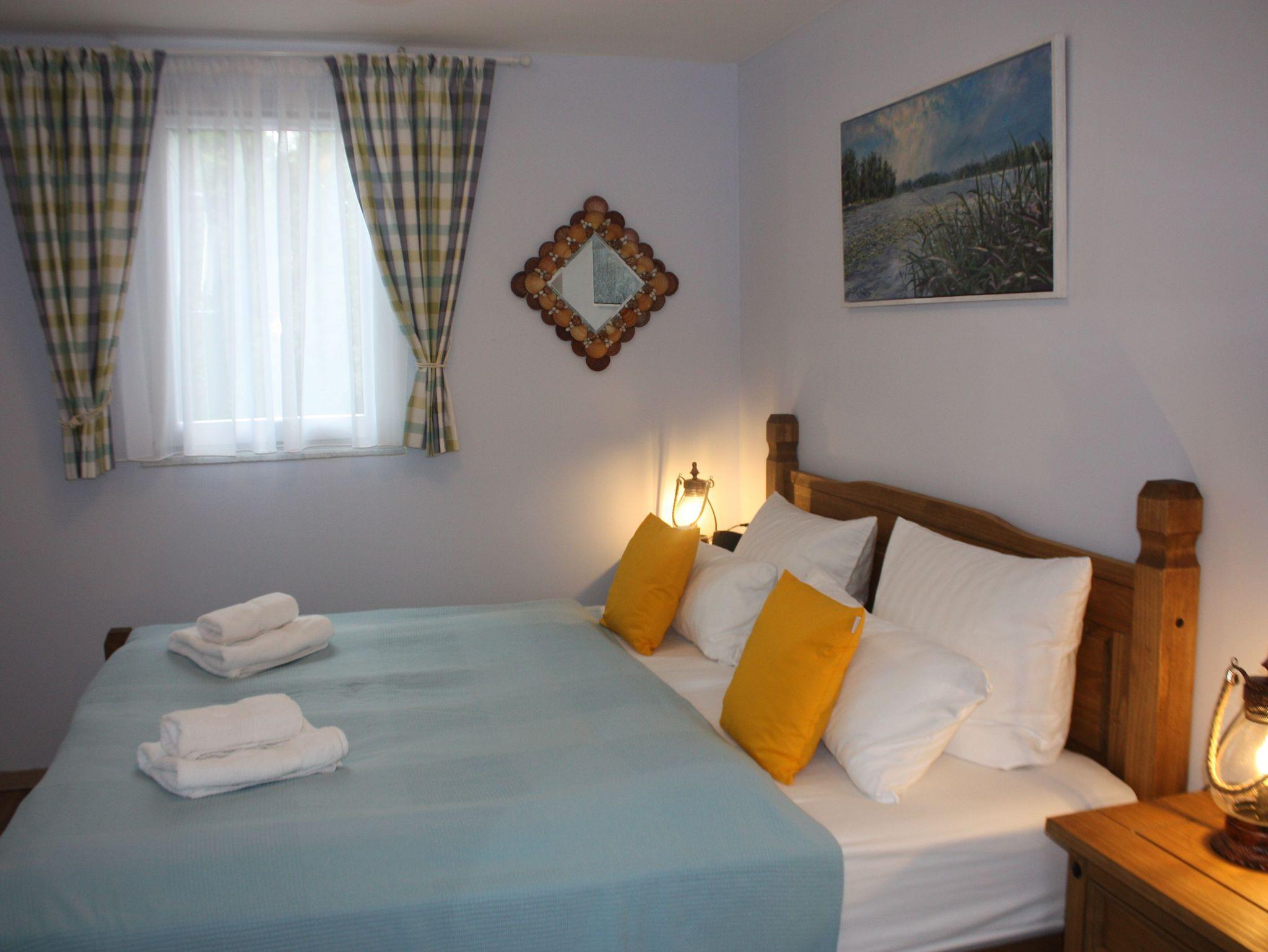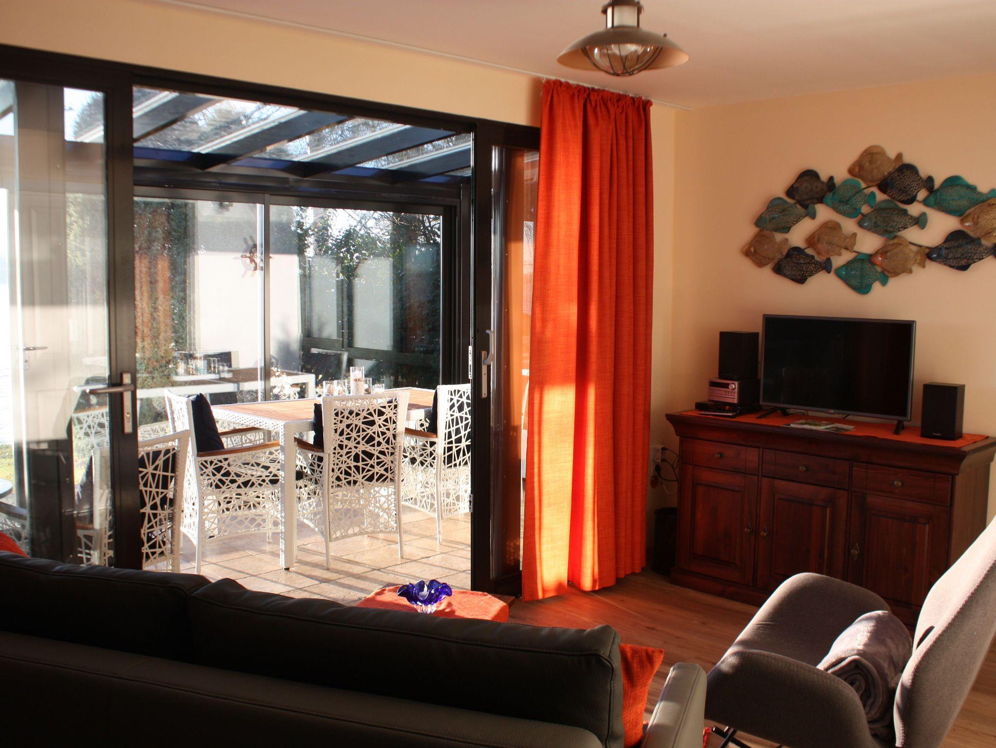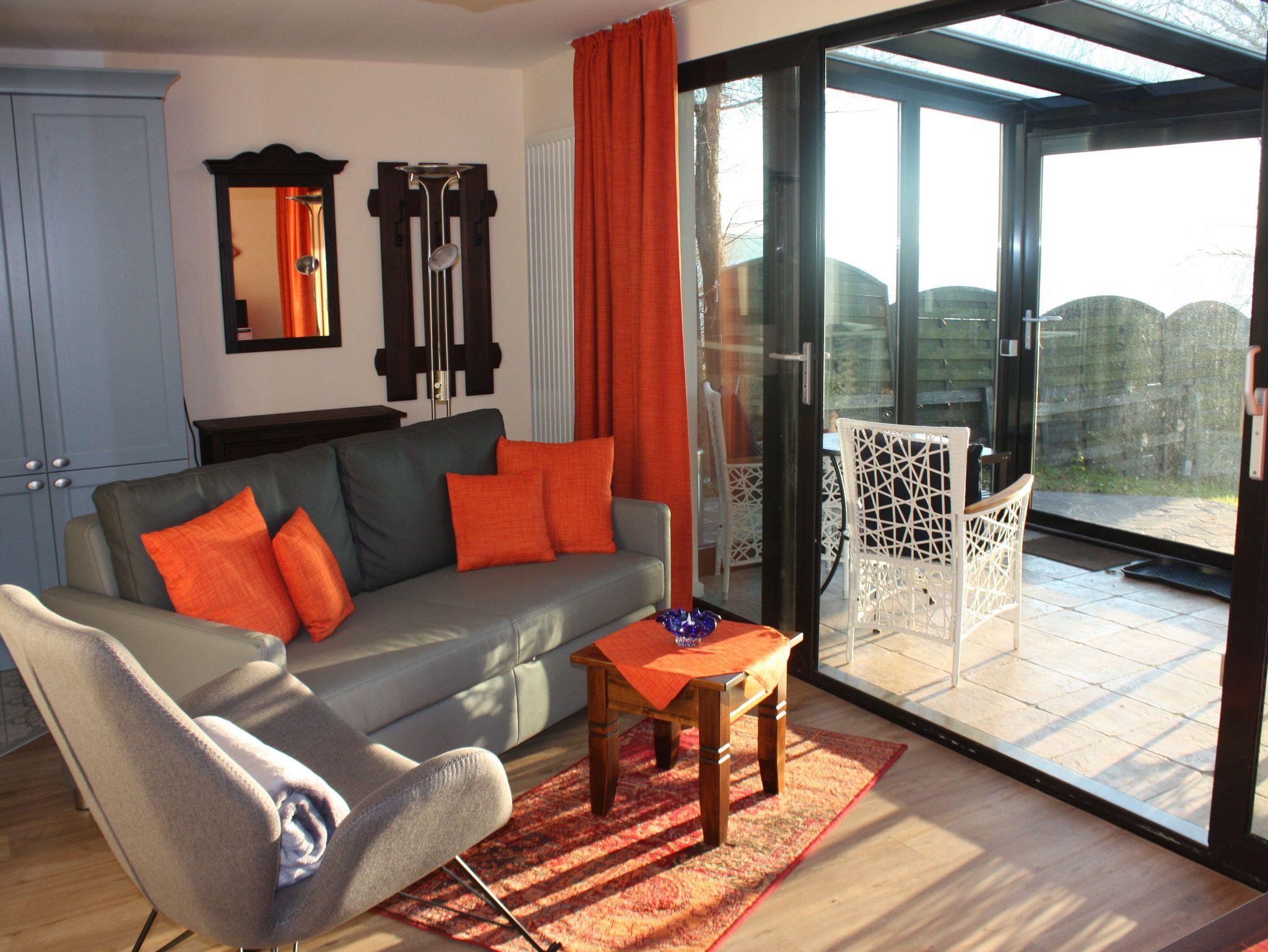 Das Häuschen verfügt über zwei Schlafräume, ein Schlafzimmer mit Doppelbett und Schreibtisch/Schminktisch und ein Kinderzimmer mit Etagenbett. Das gemütliche Wohnzimmer mit einer Couch und Schaukelstuhl ist von der modern ausgestatteten Küche optisch getrennt. Den Wintergarten kann man im Sommer als Terrasse nutzen und im Winter beheizen. Der Blick auf das nahe Wasser wirkt nicht nur entspannend, sondern lässt zugleich den Alltag vergessen.