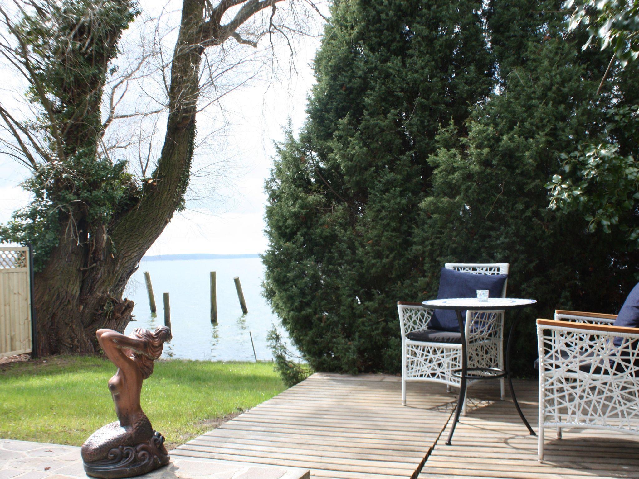 Dieser Bungalow im maritimen Stil befindet sich nur 7m vom See entfernt und verfügt über eine eigene Liegewiese.