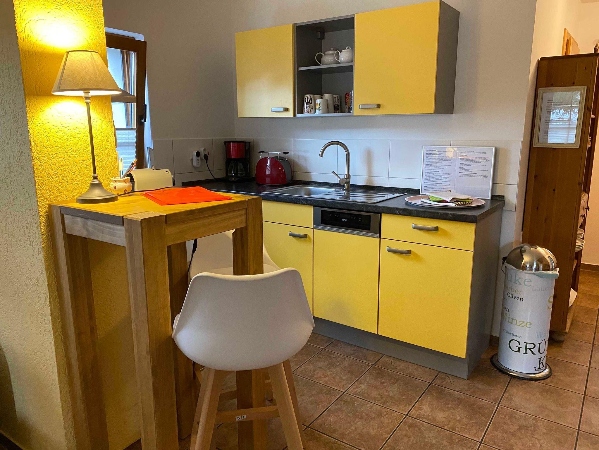 Die voll ausgestattete Küche bietet alles, was du brauchst perfekt für gemeinsame Mahlzeiten am großen Esstisch.